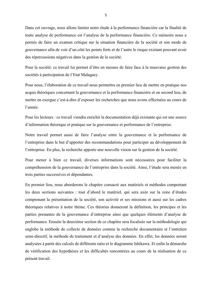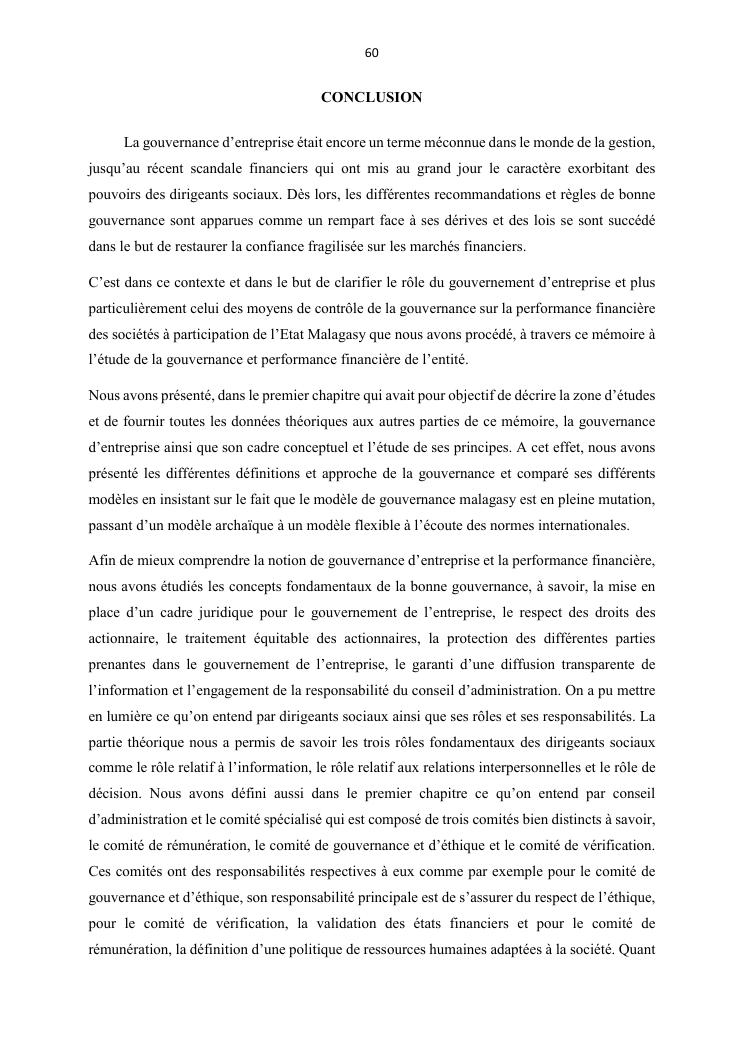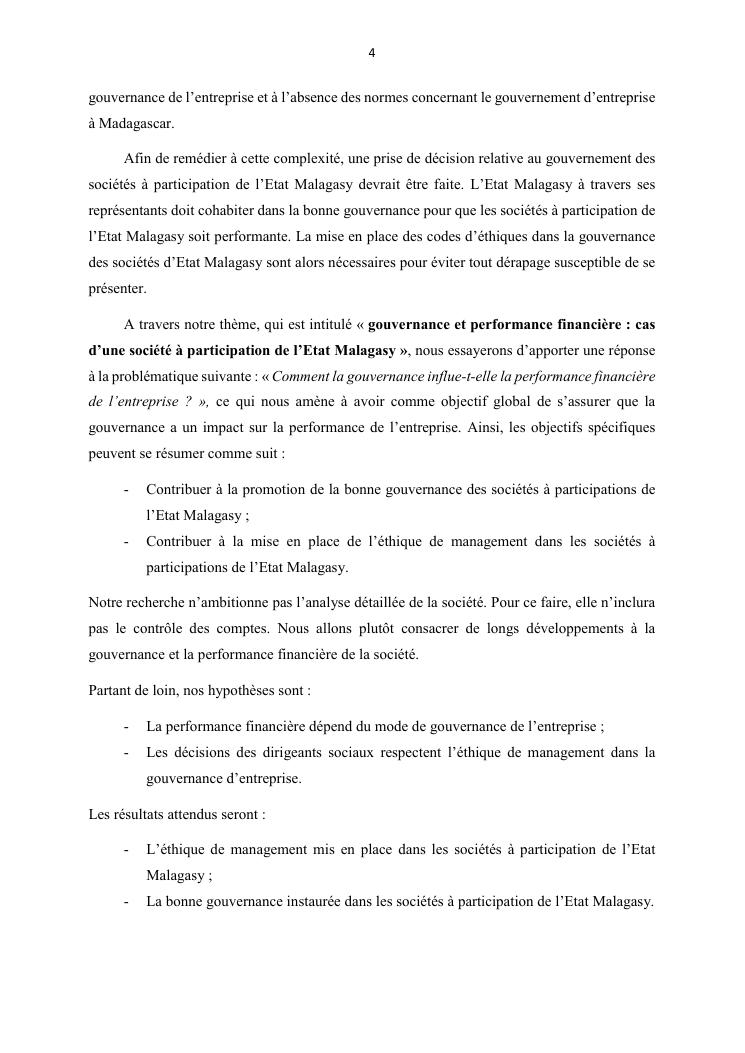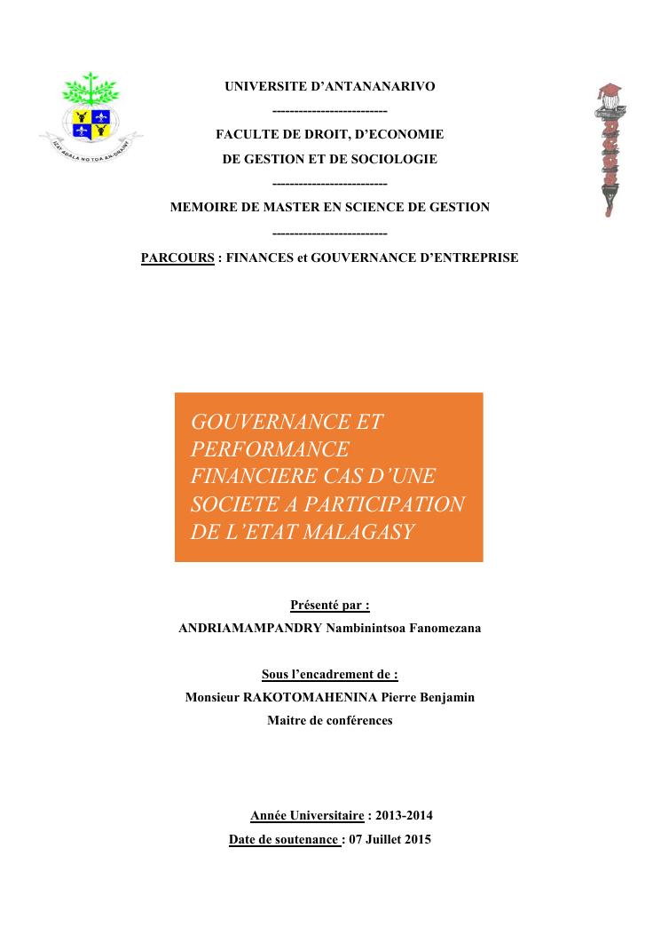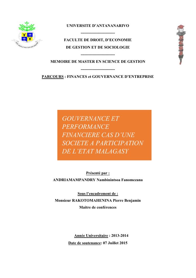 gouvernance et performance financiere cas d'une societe a participation de l'etat malagasy