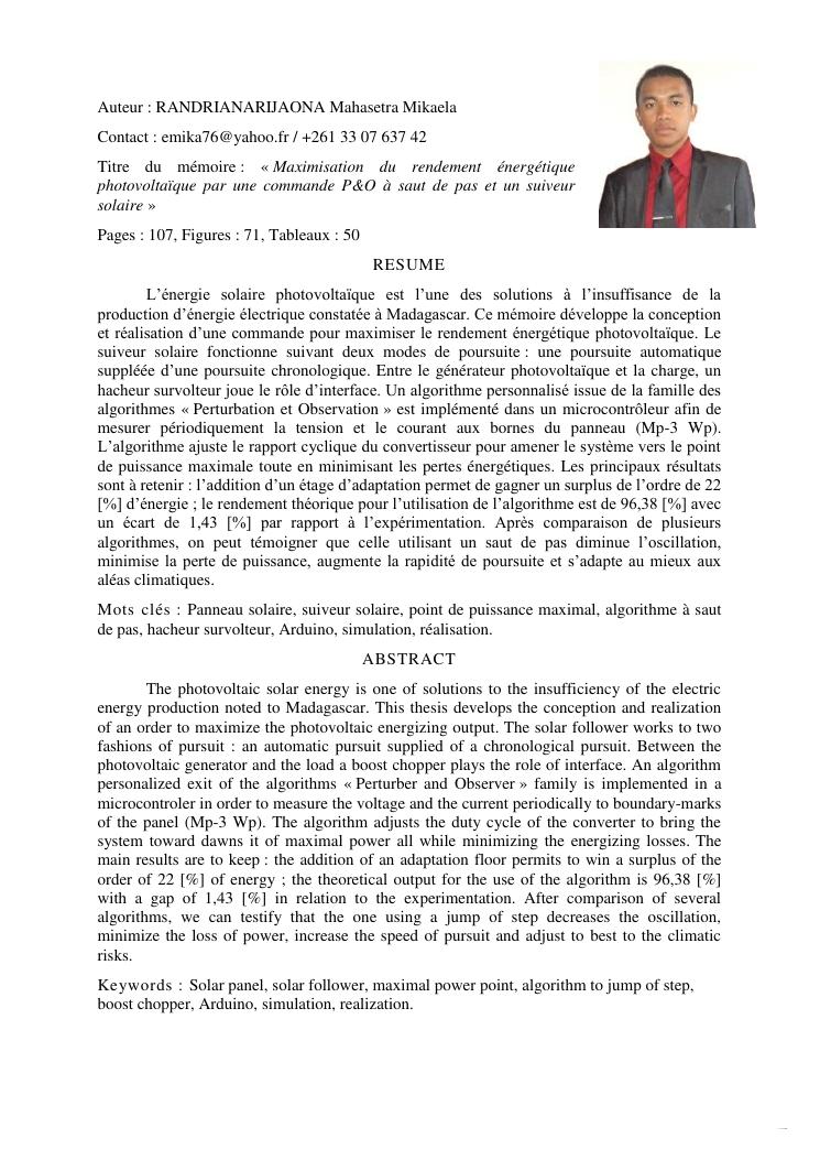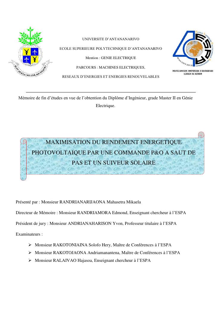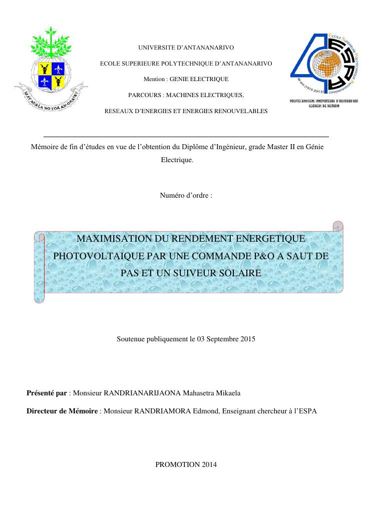 maximisation du rendement energetique photovoltaique par une commande p&o a saut de pas et un suiveur solaire