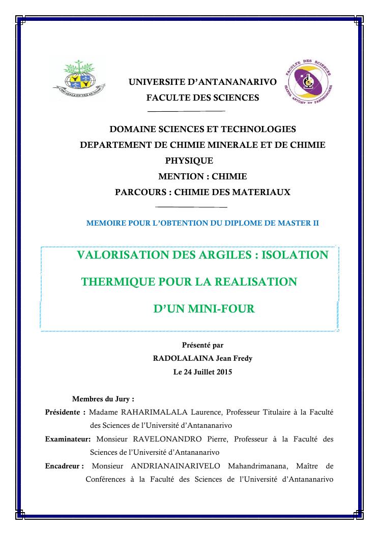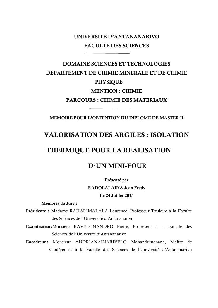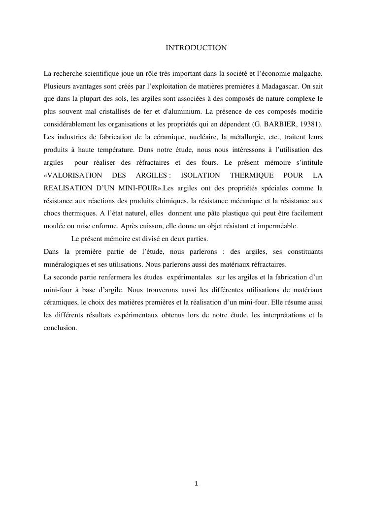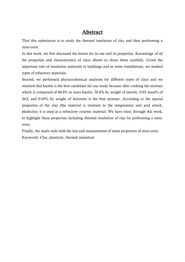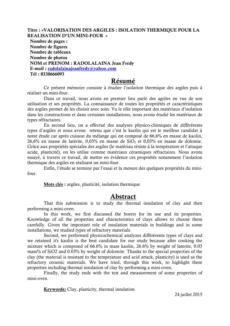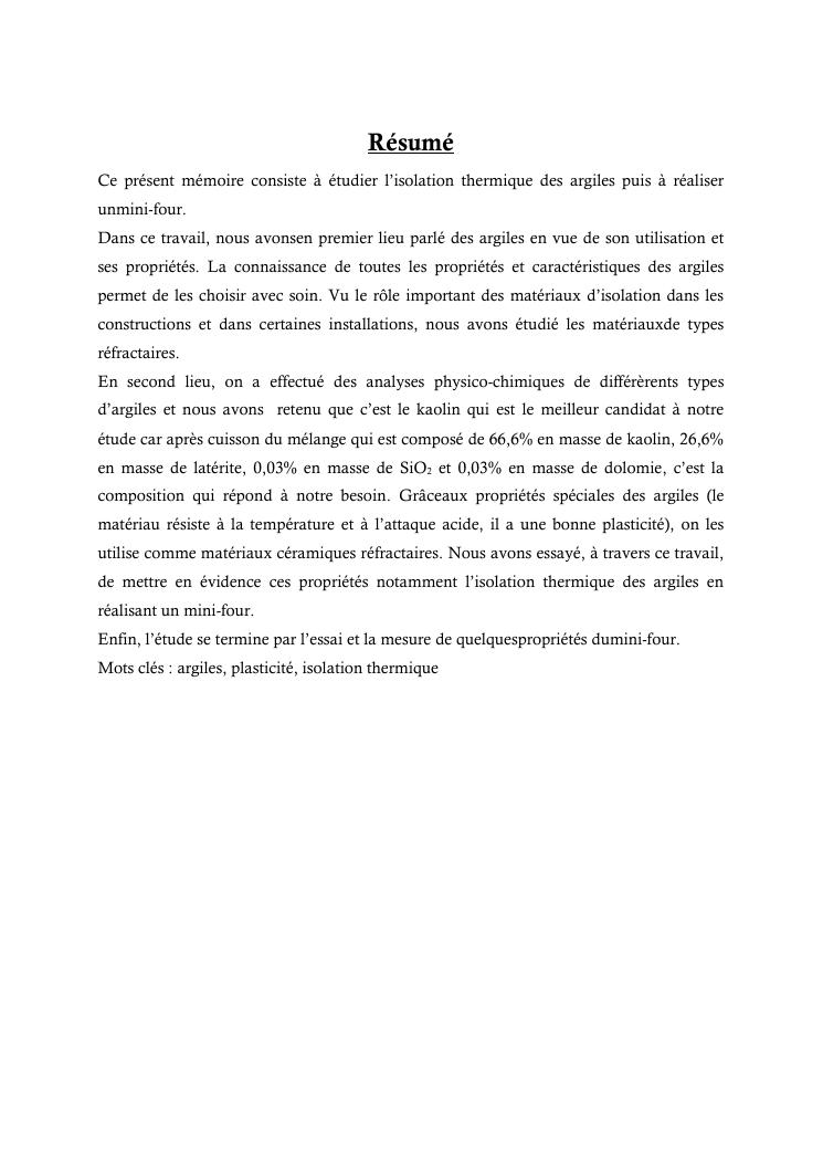 valorisation des argiles : isolation thermique pour la realisation d'un mini-four