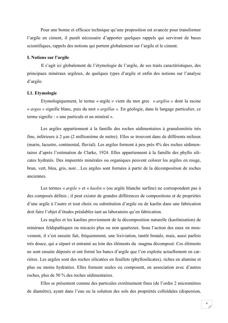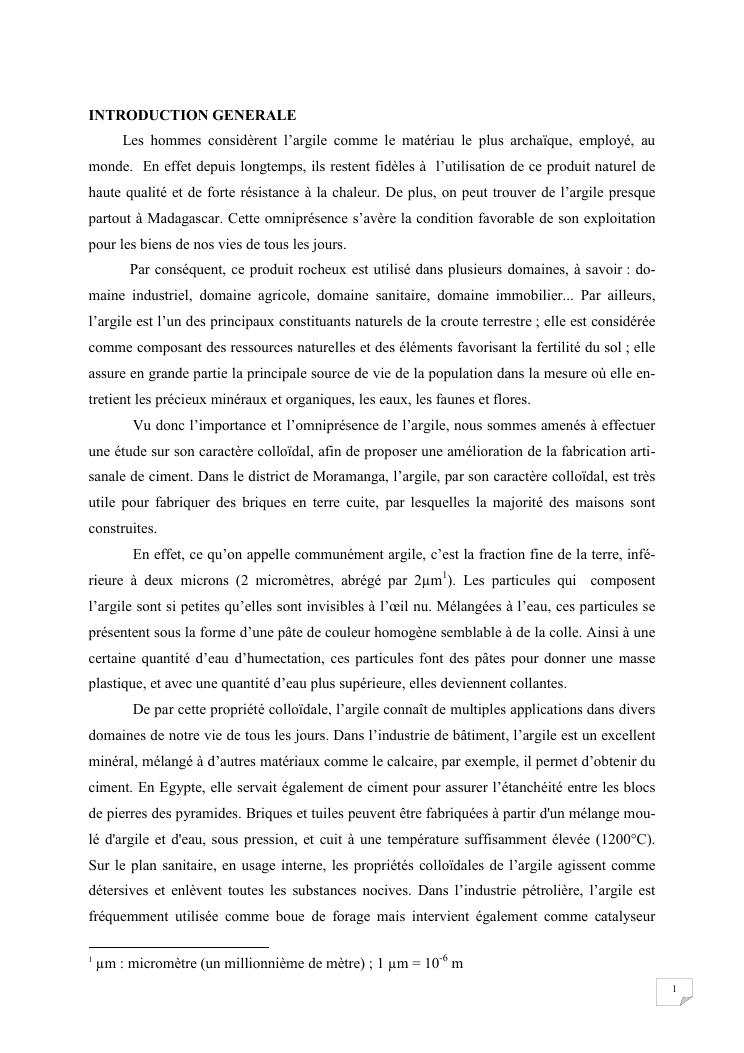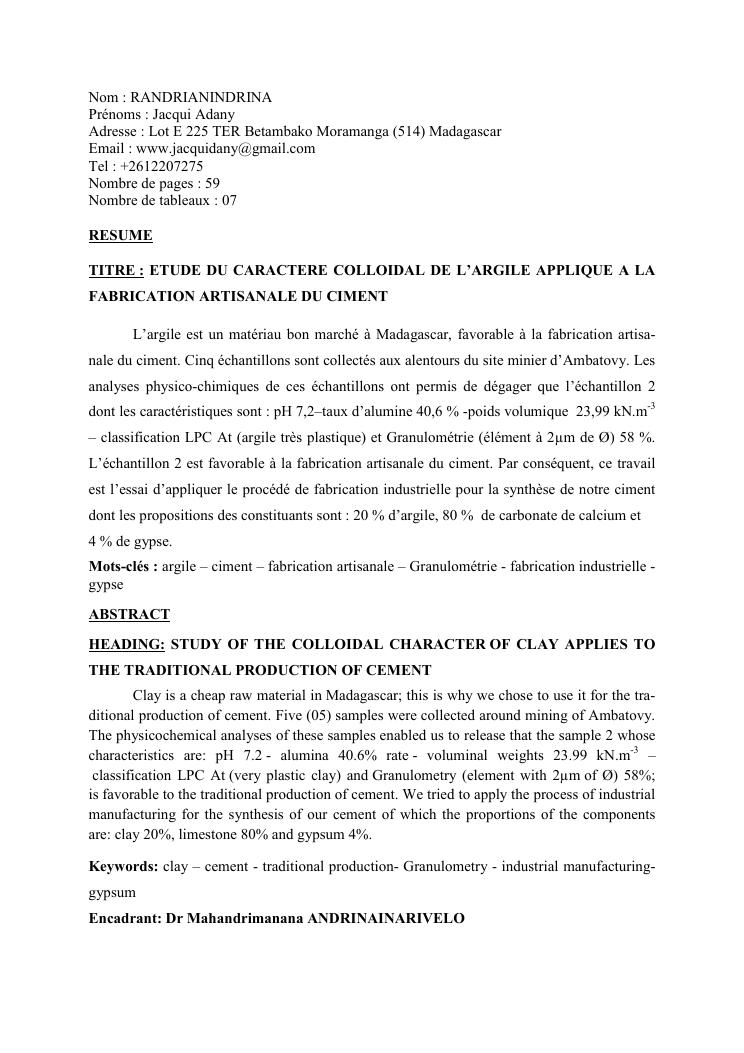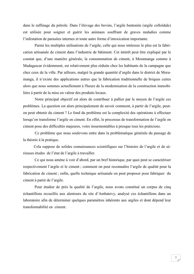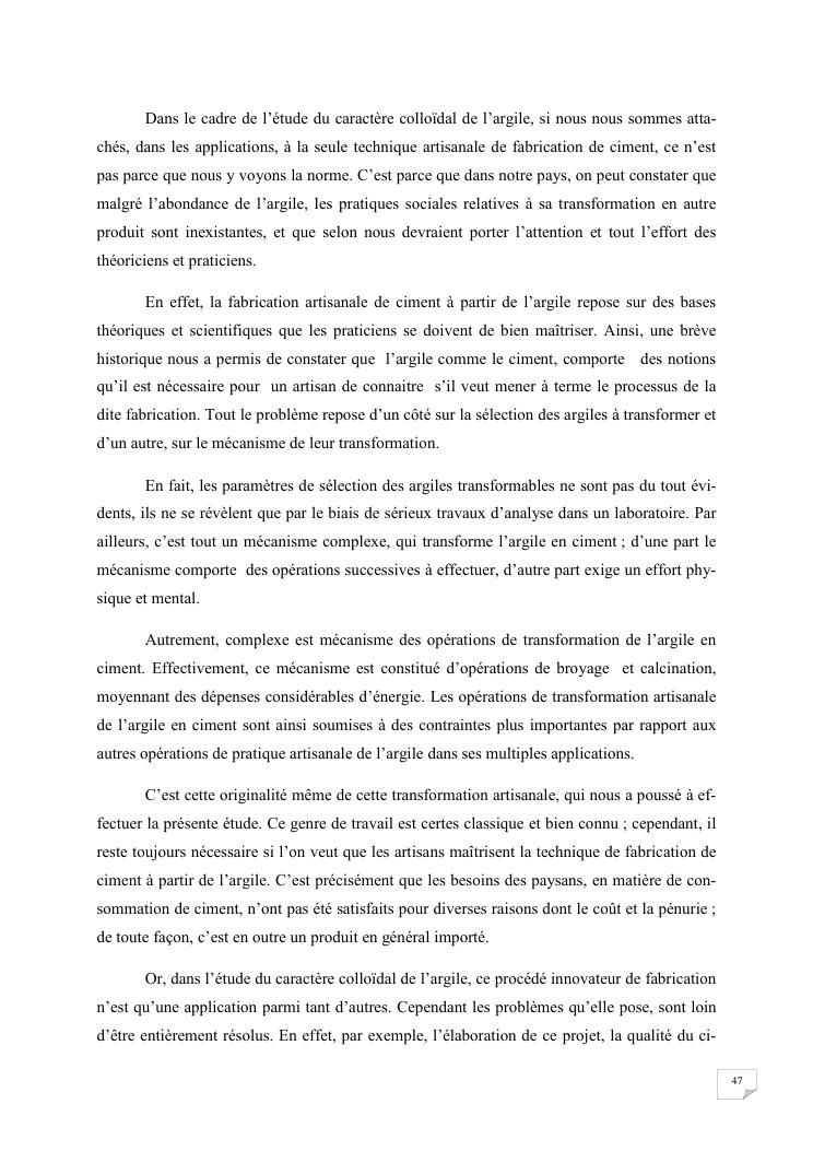 etude du caractere colloidal de l'argile applique a la fabrication artisanale du ciment