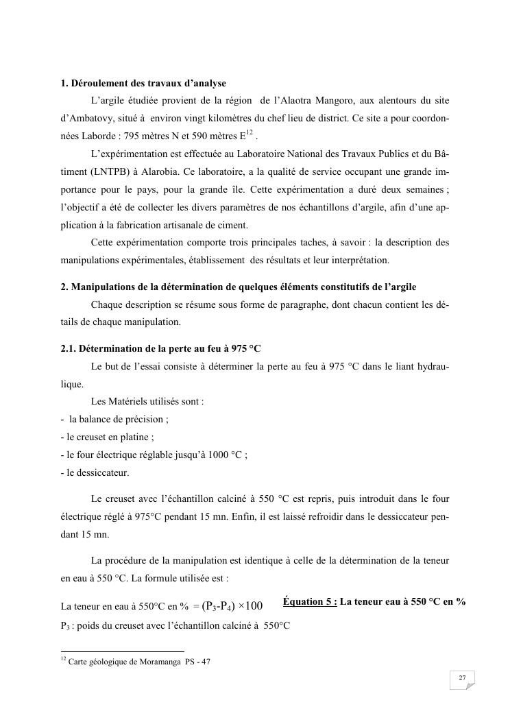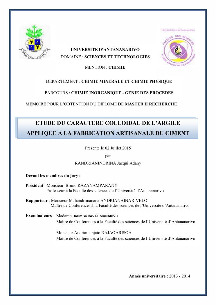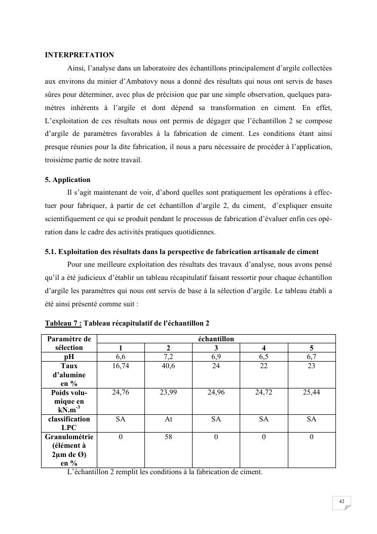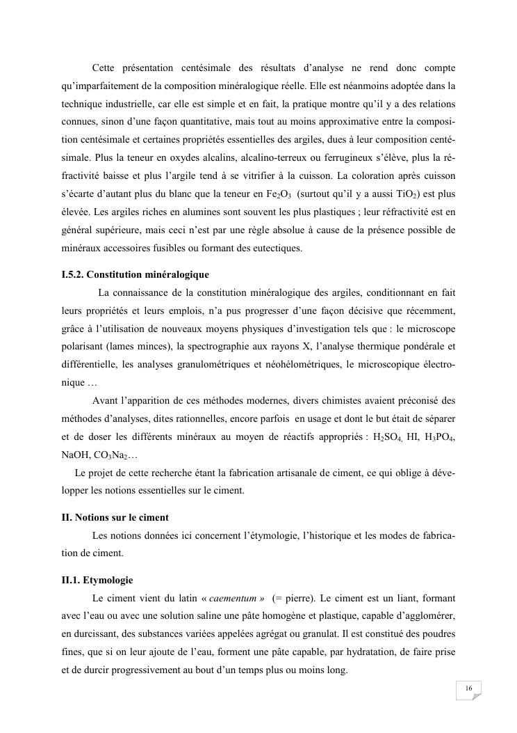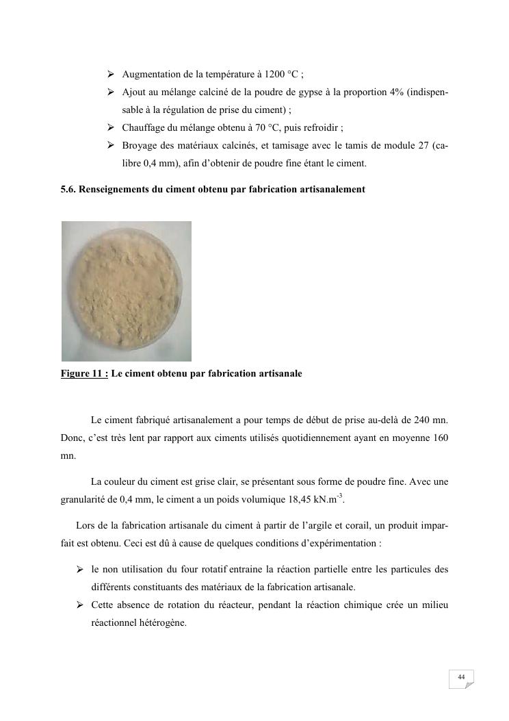 etude du caractere colloidal de l'argile applique a la fabrication artisanale du ciment