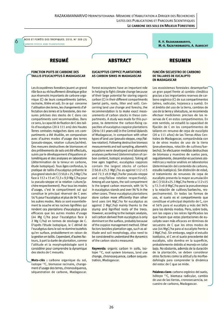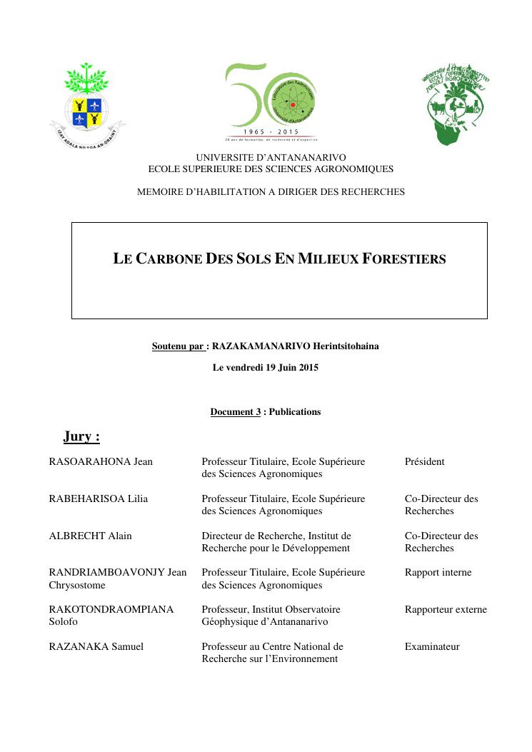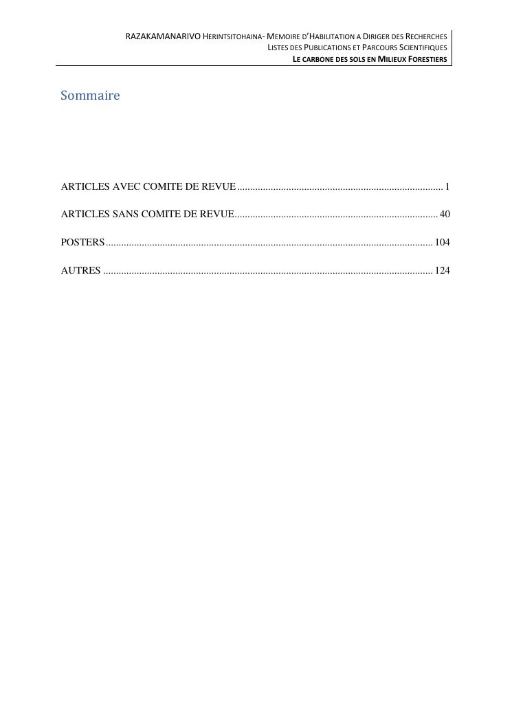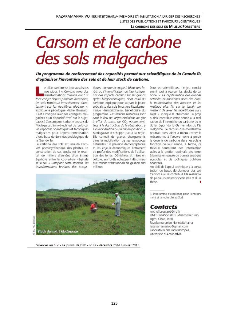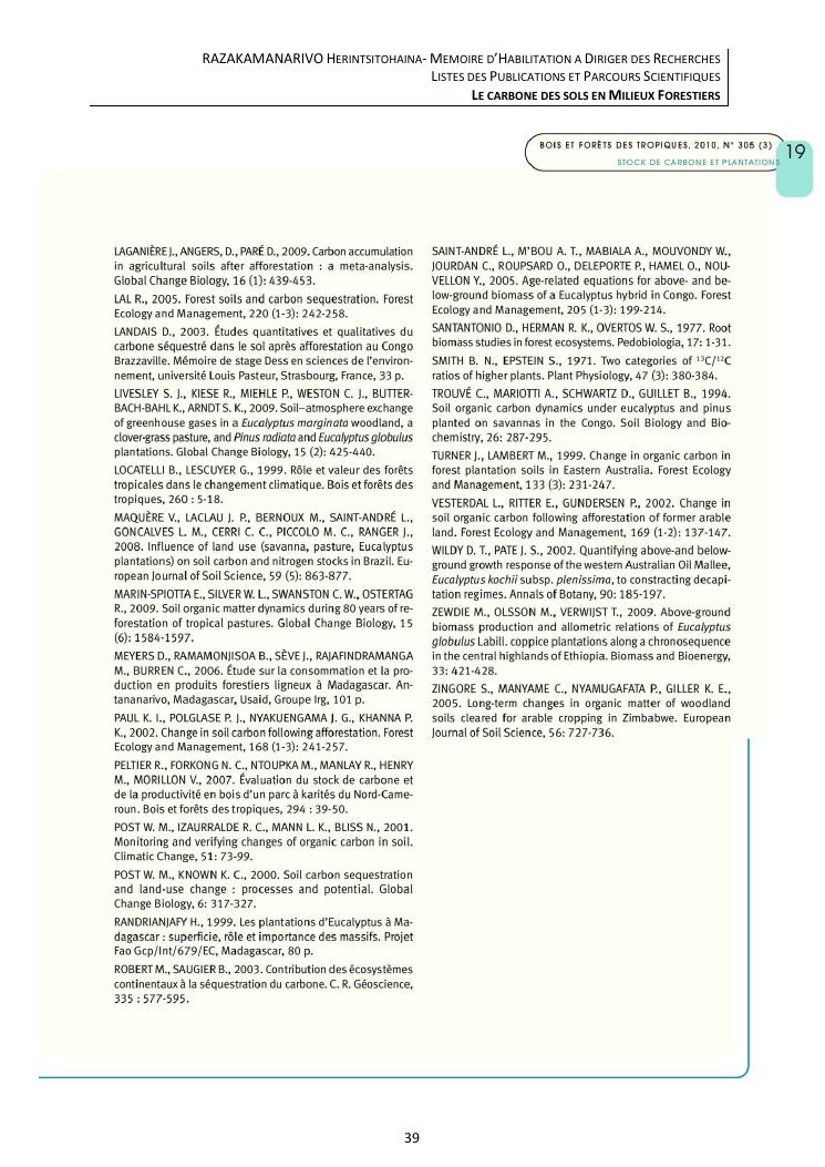 le carbone des sols en milieux forestiers. document 3 : publications