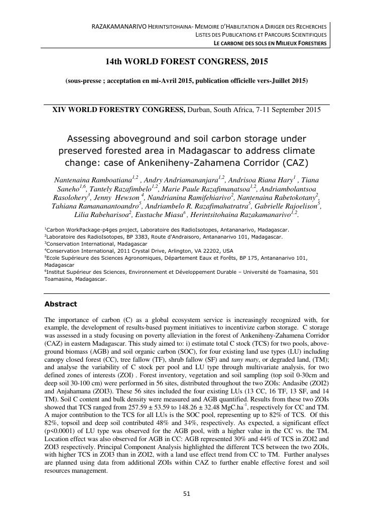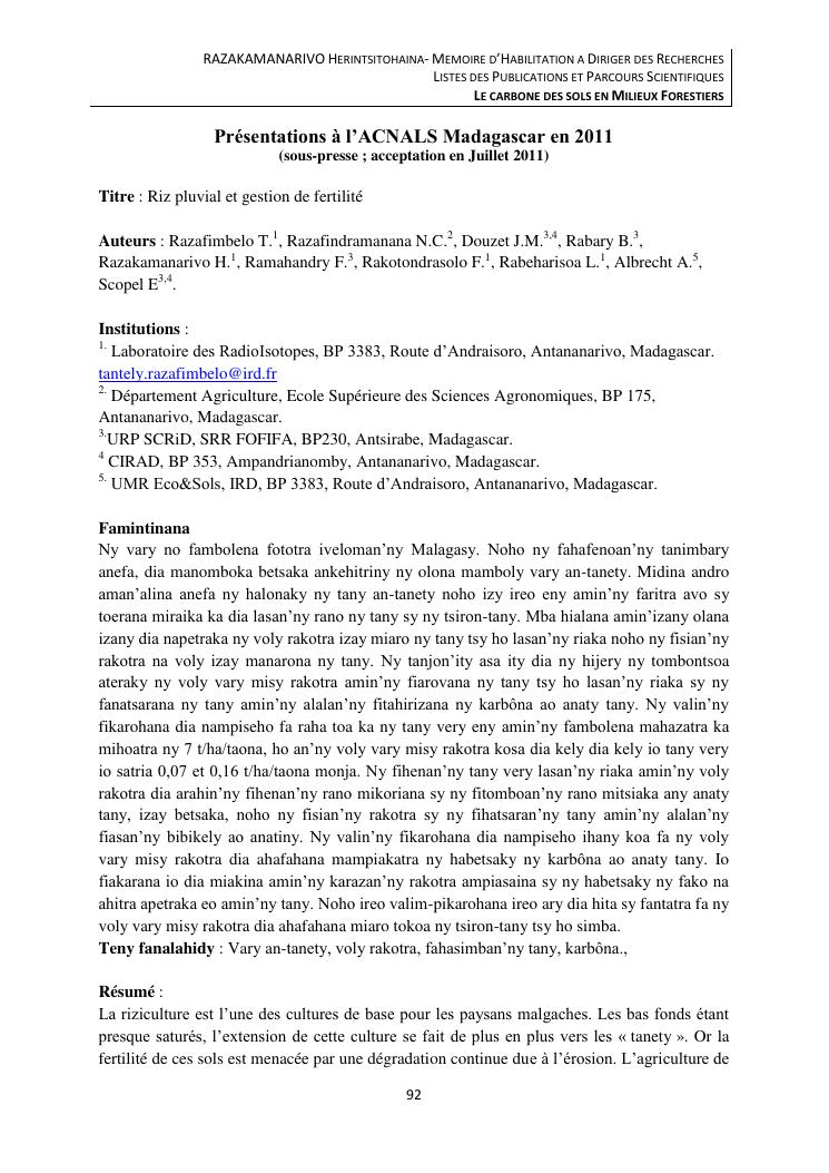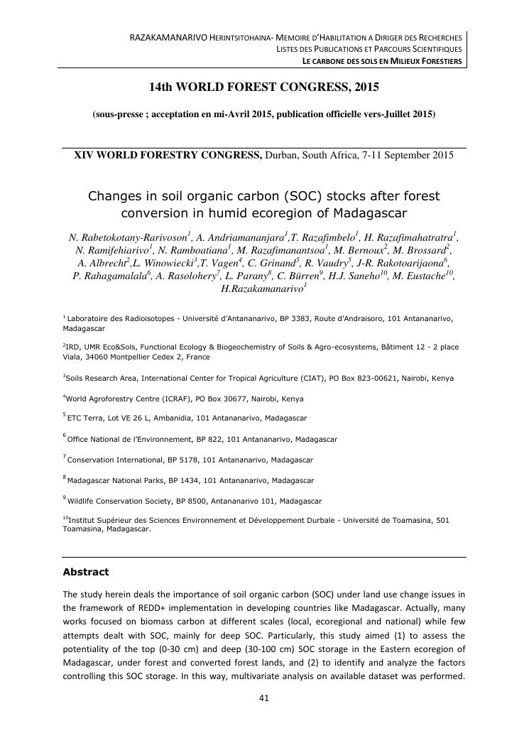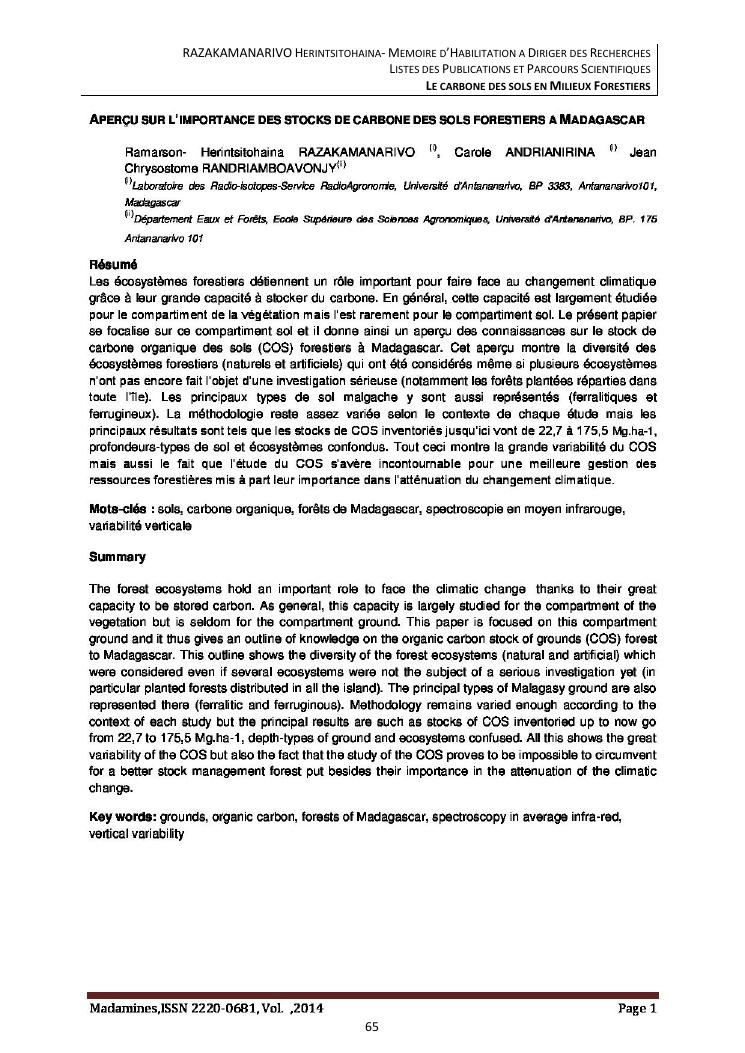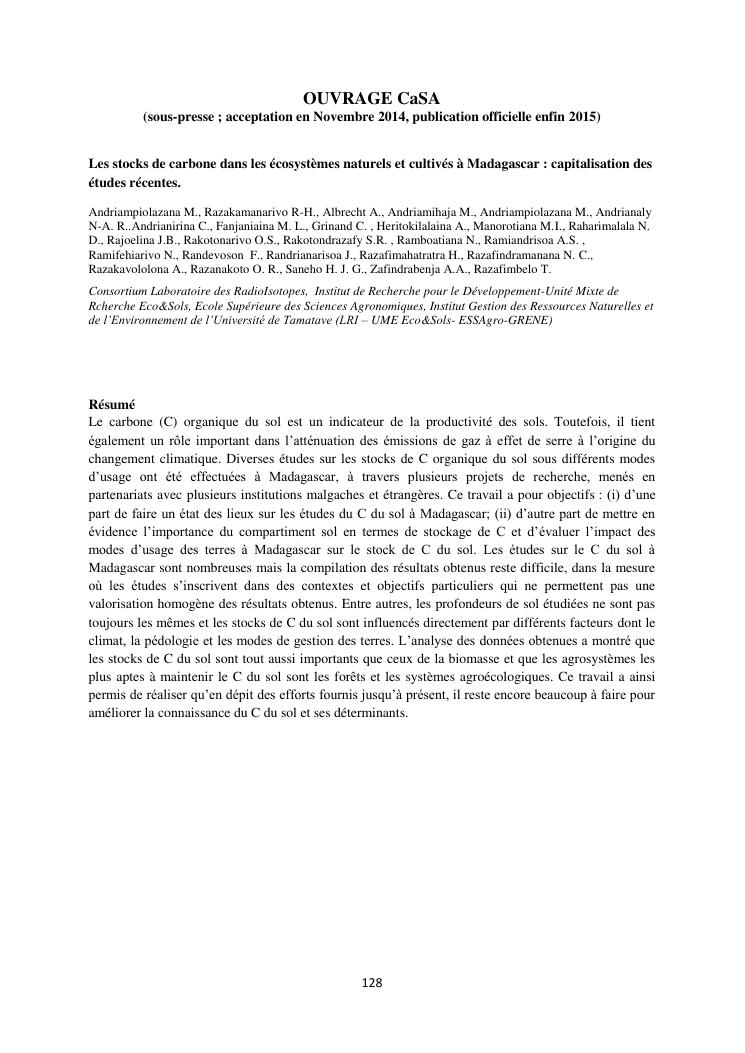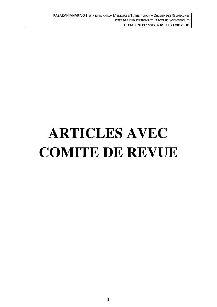 le carbone des sols en milieux forestiers. document 3 : publications