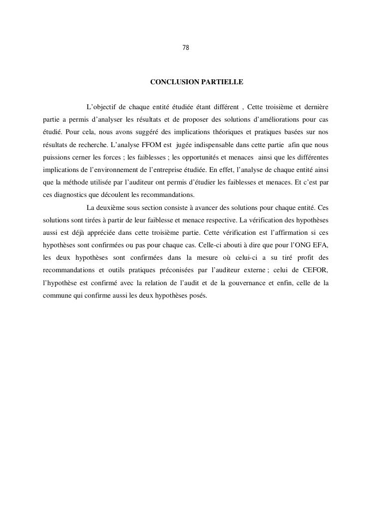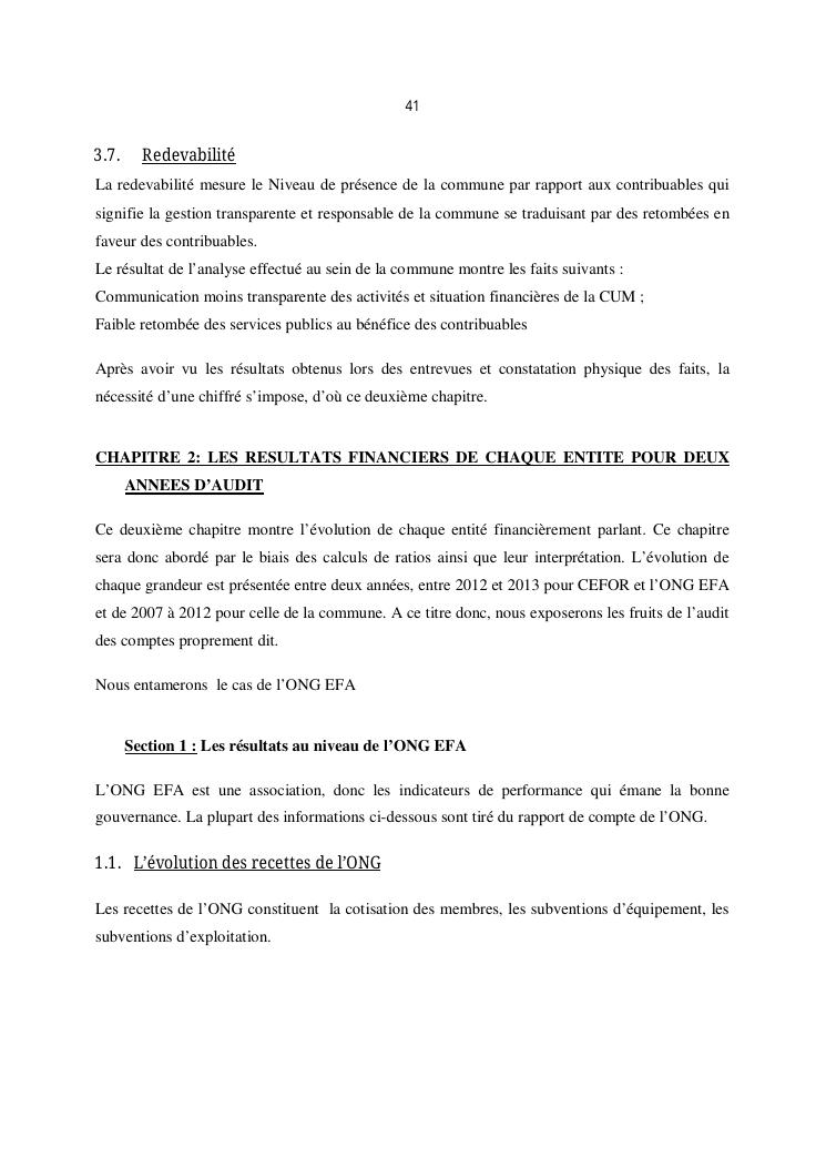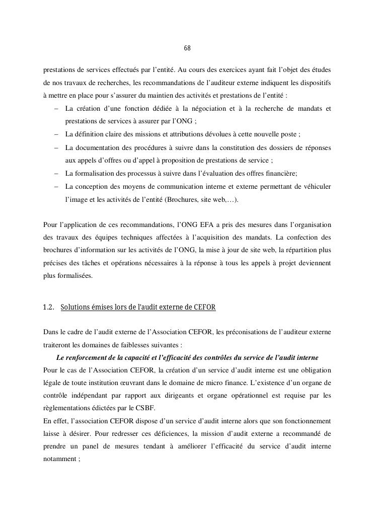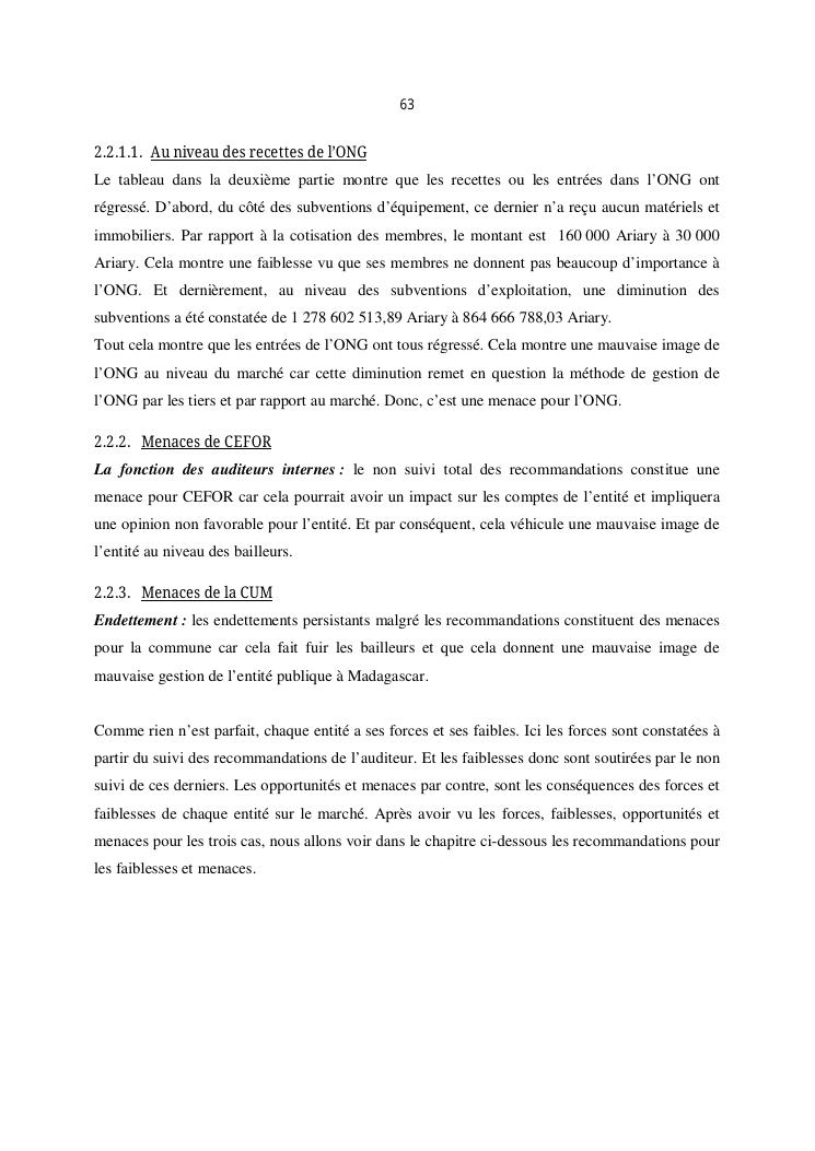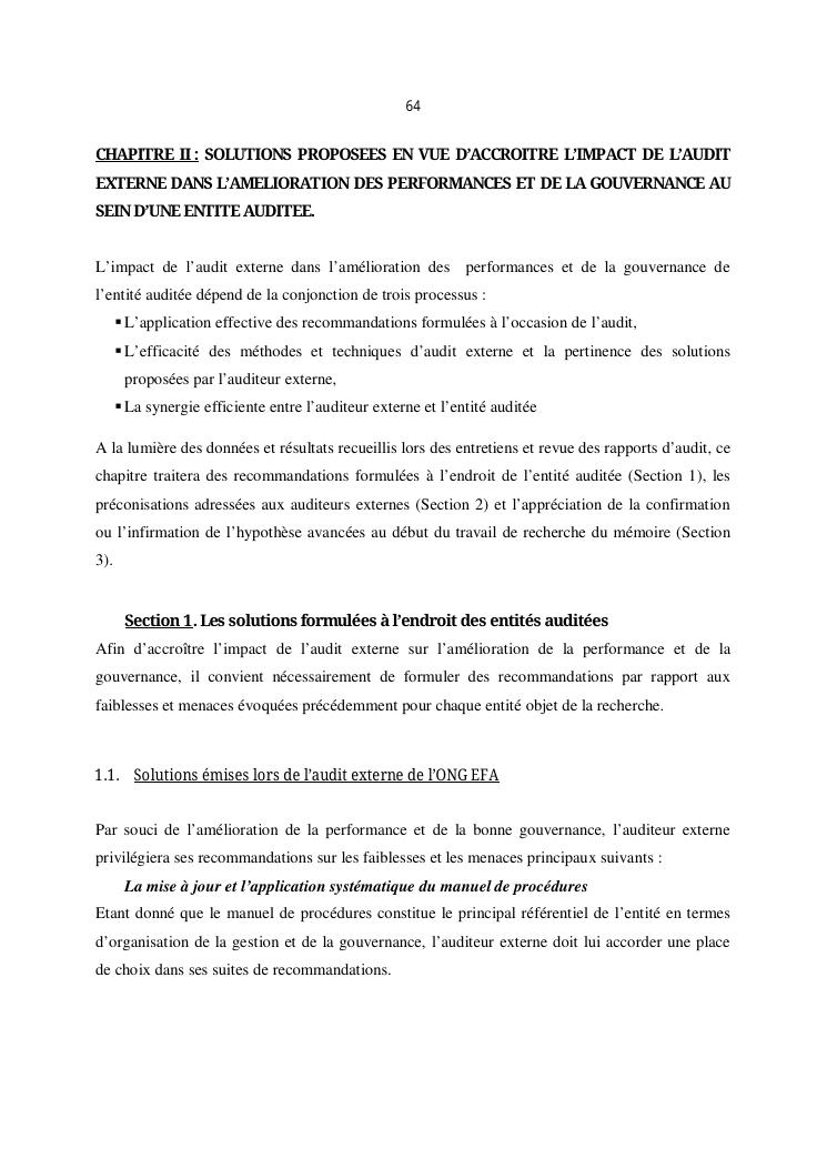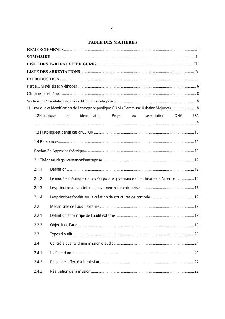 qualite de l'audit externe et impact sur la gouvernance des entites : cas de l'ong efa, cefor et de la commune urbaine de majunga (cum)