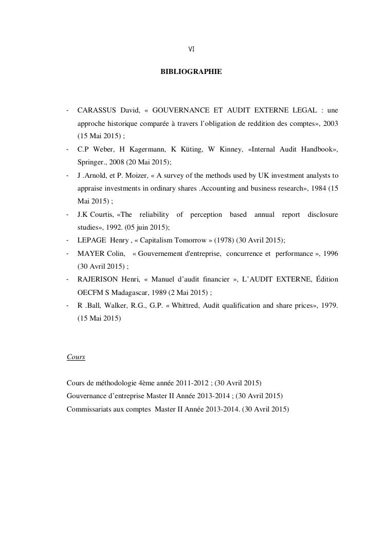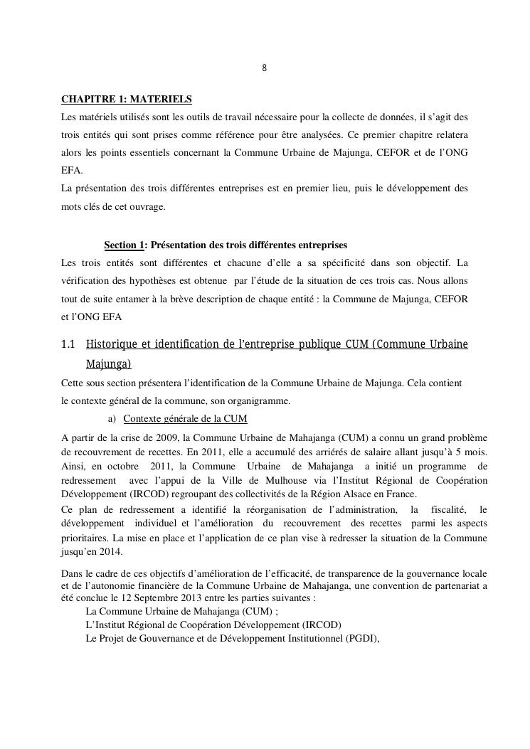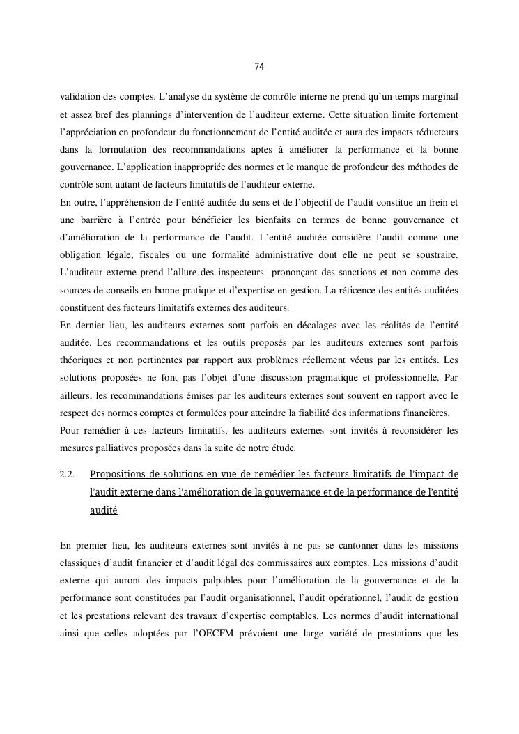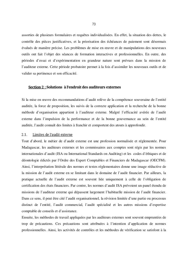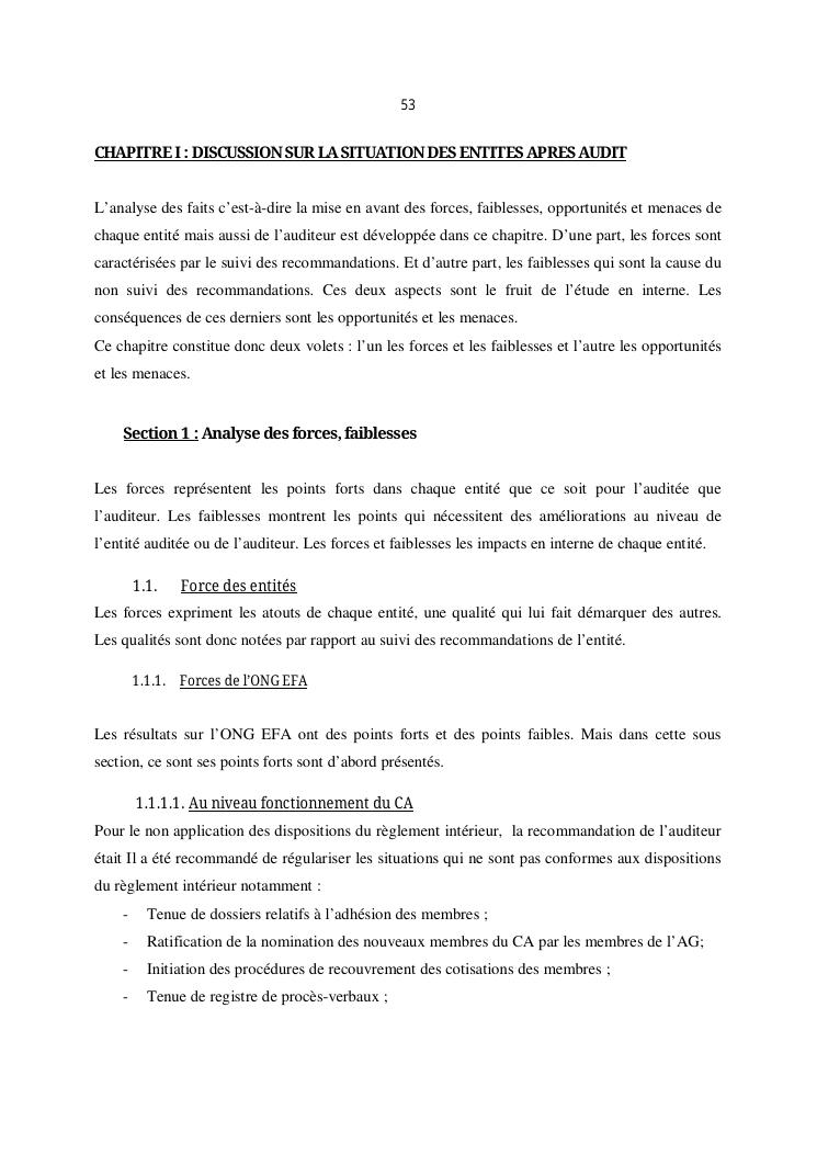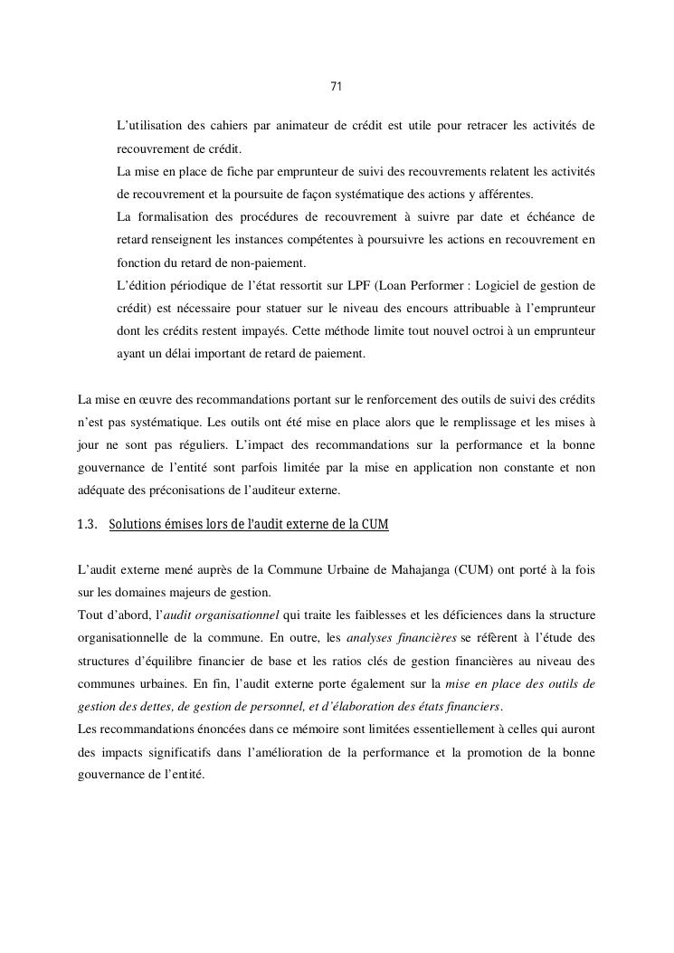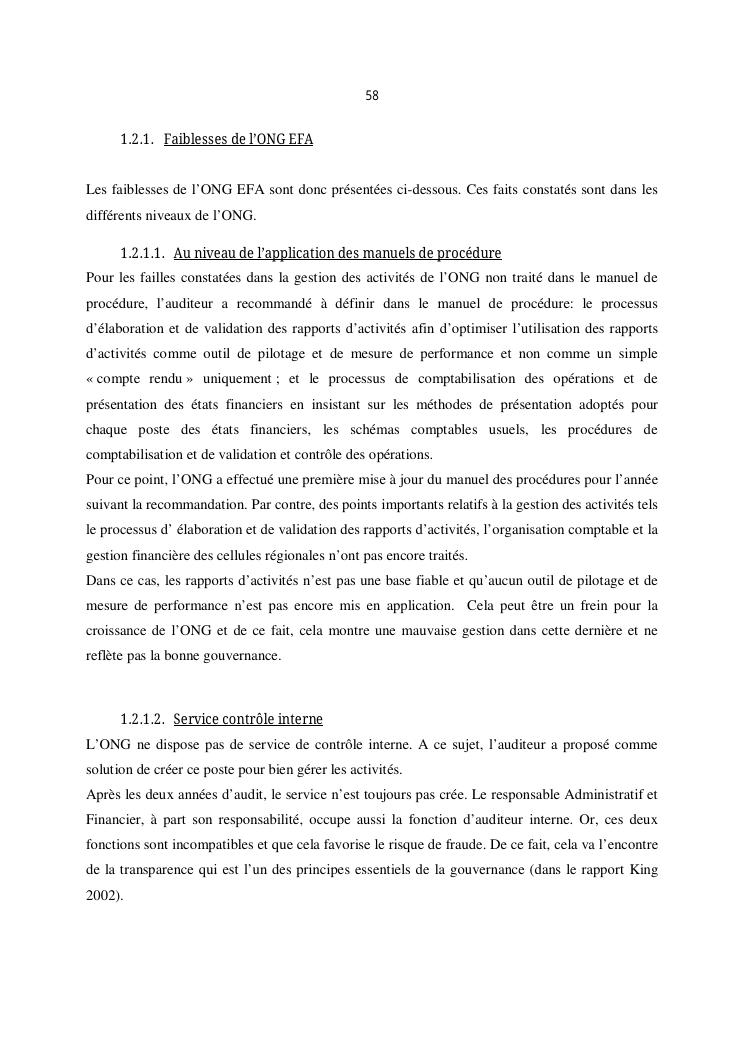 qualite de l'audit externe et impact sur la gouvernance des entites : cas de l'ong efa, cefor et de la commune urbaine de majunga (cum)