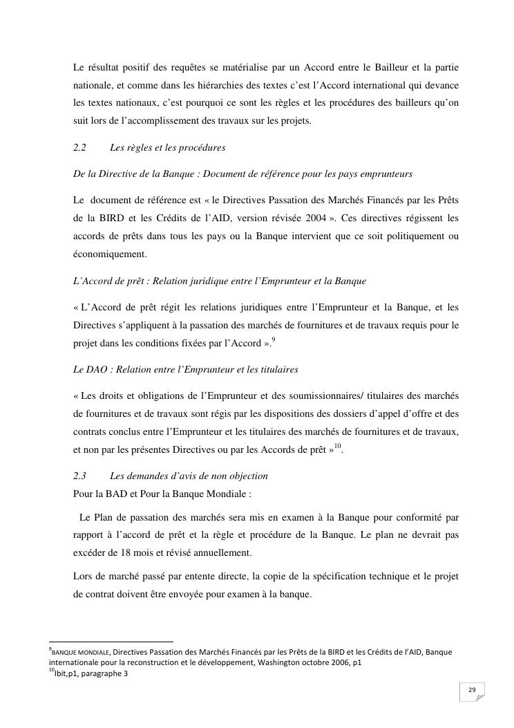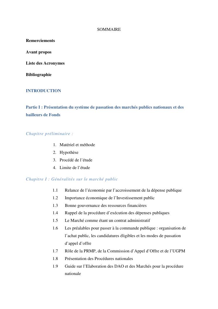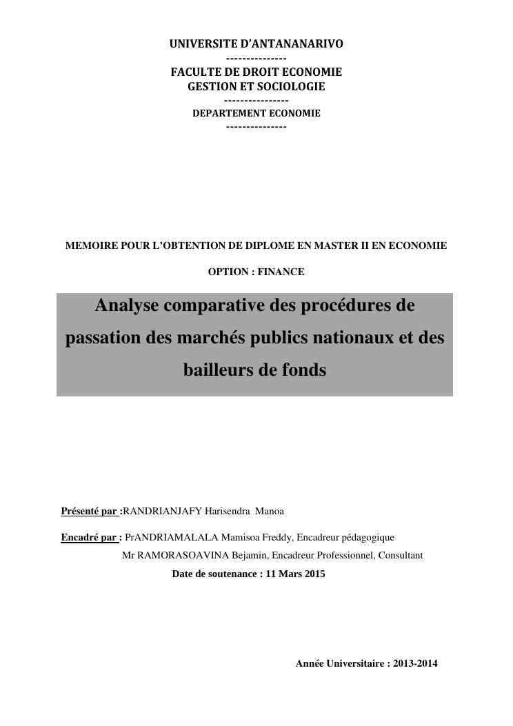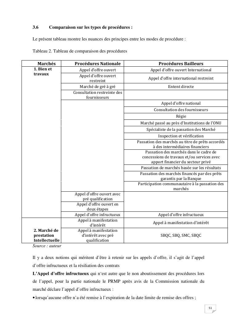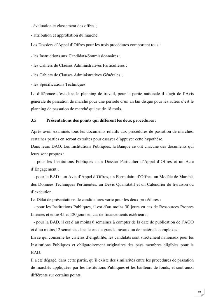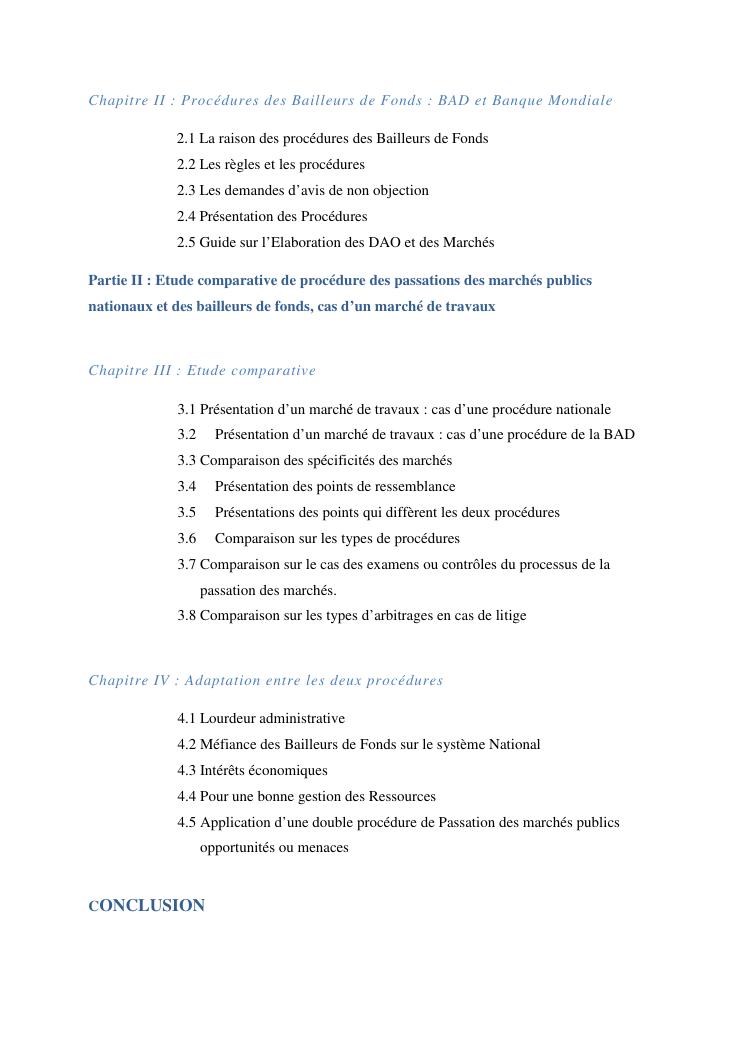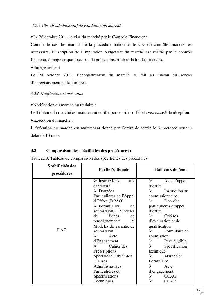 analyse comparative des procedures de passation des marches publics nationaux et des bailleurs de fonds