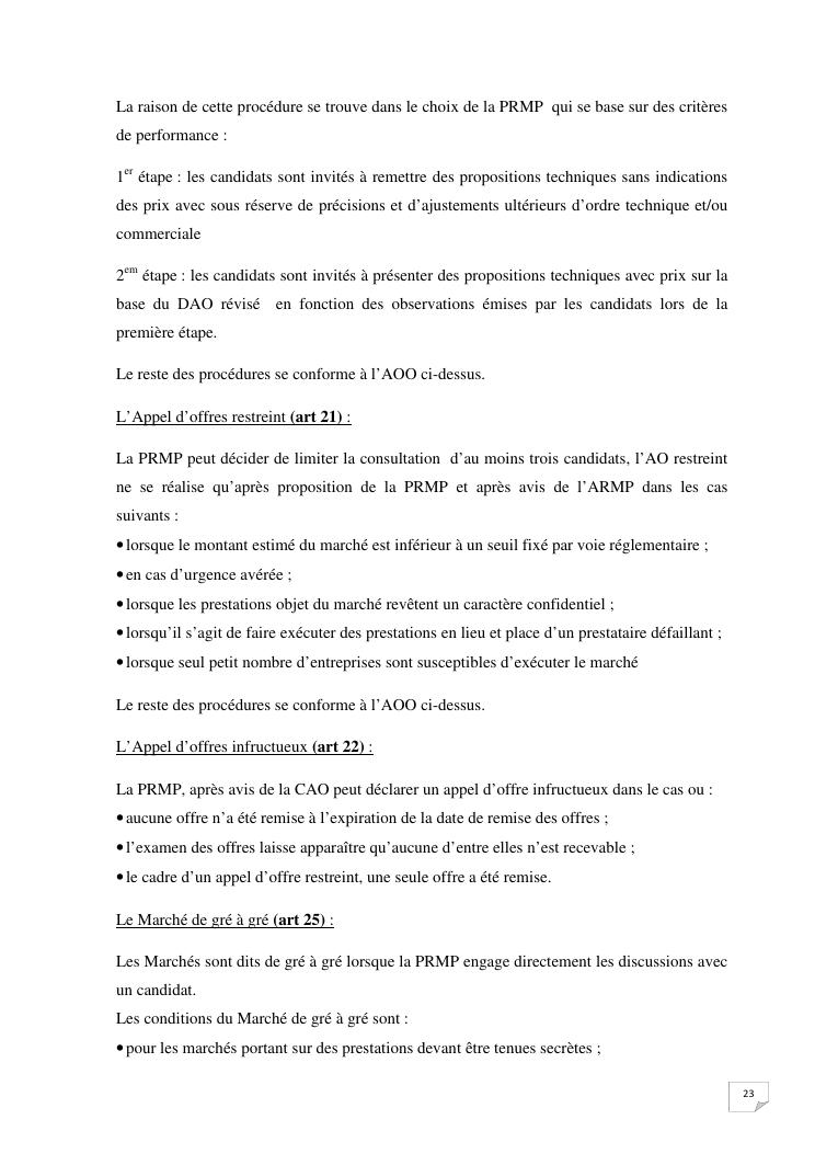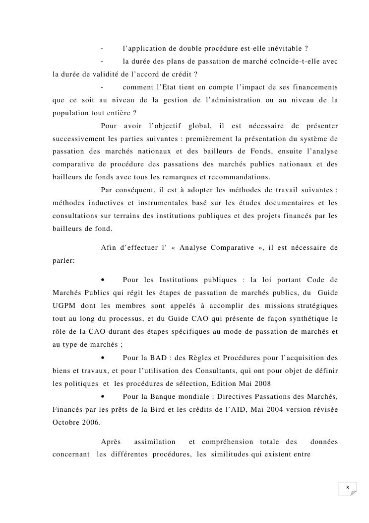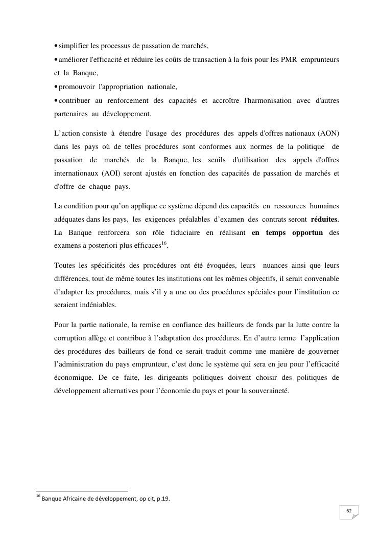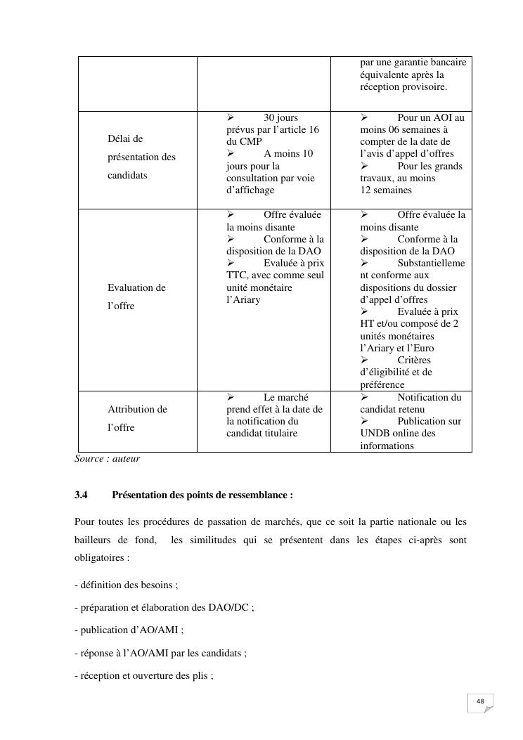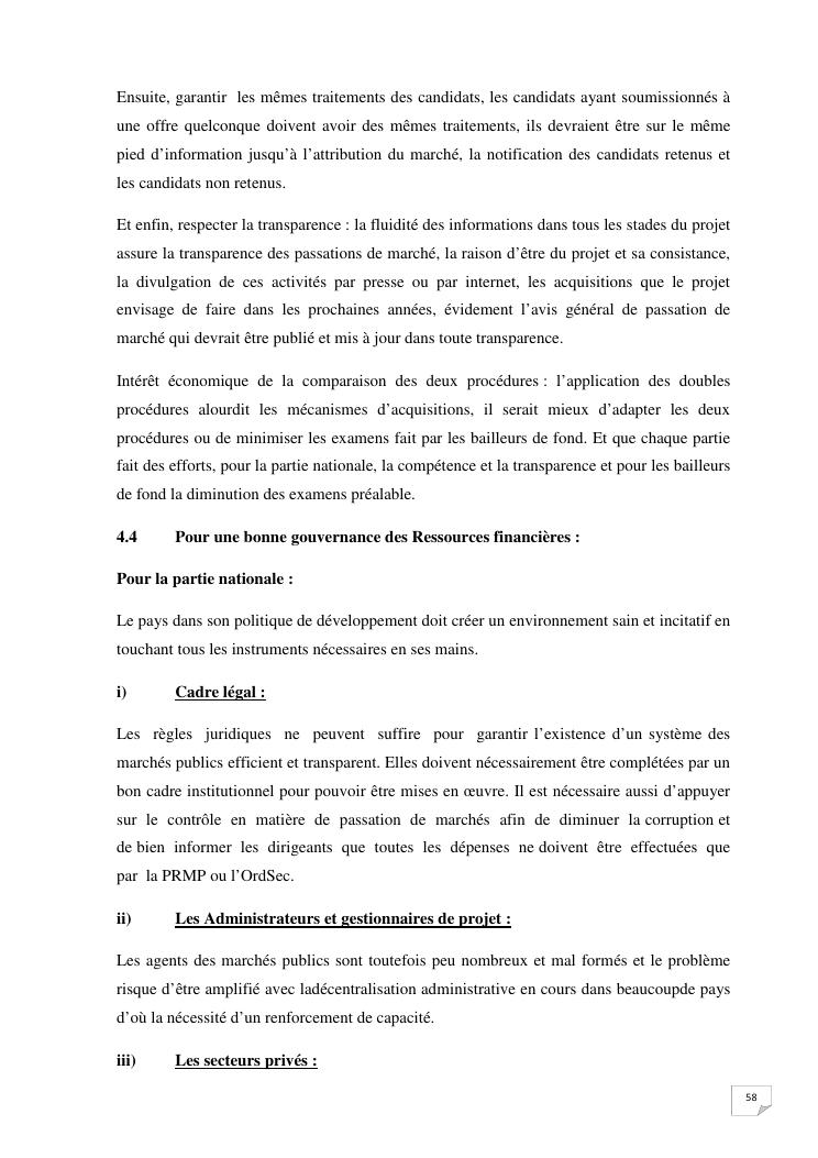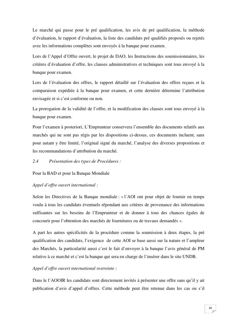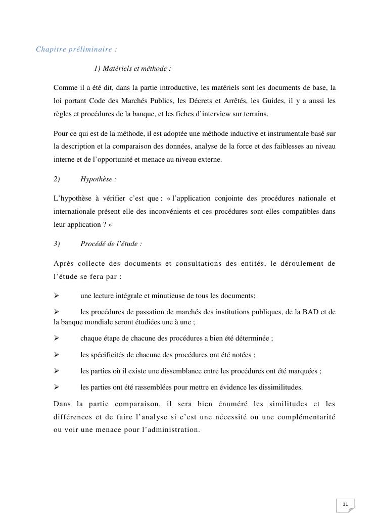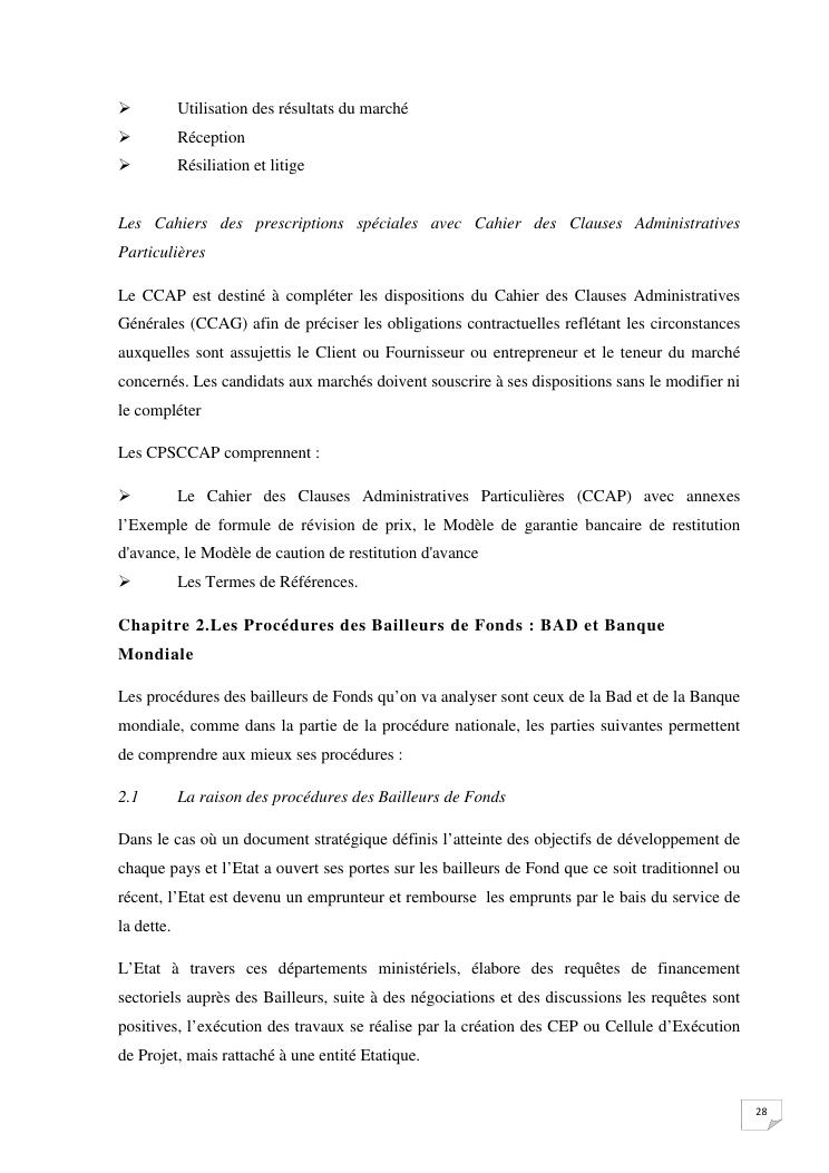 analyse comparative des procedures de passation des marches publics nationaux et des bailleurs de fonds