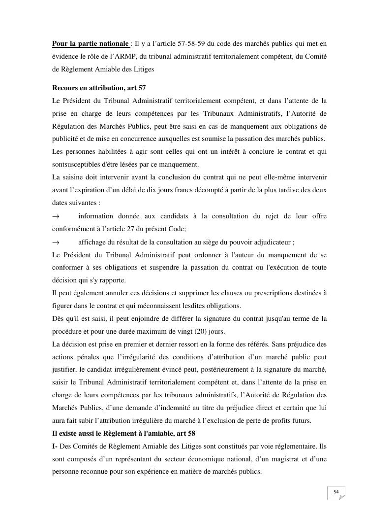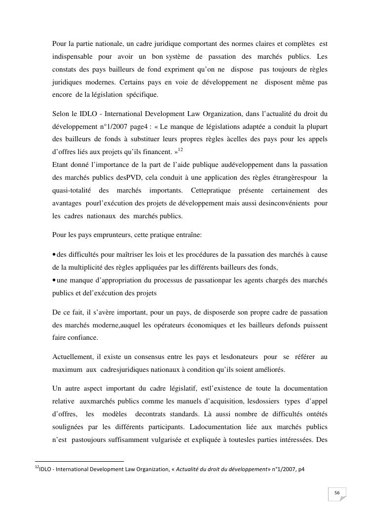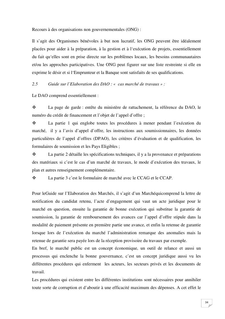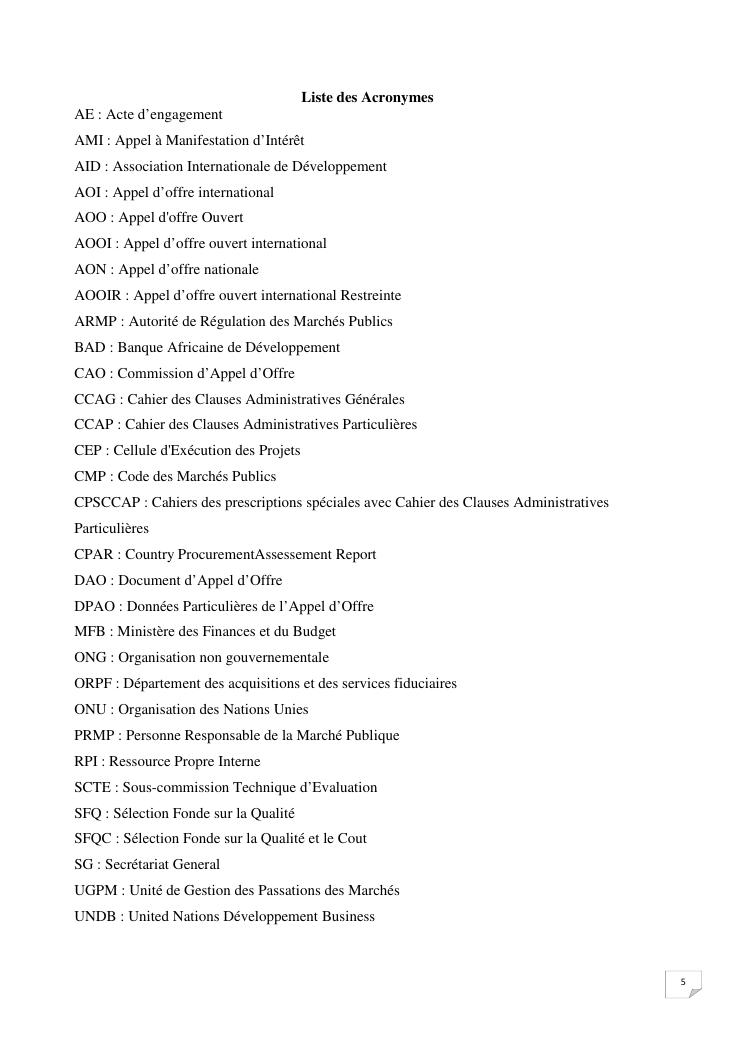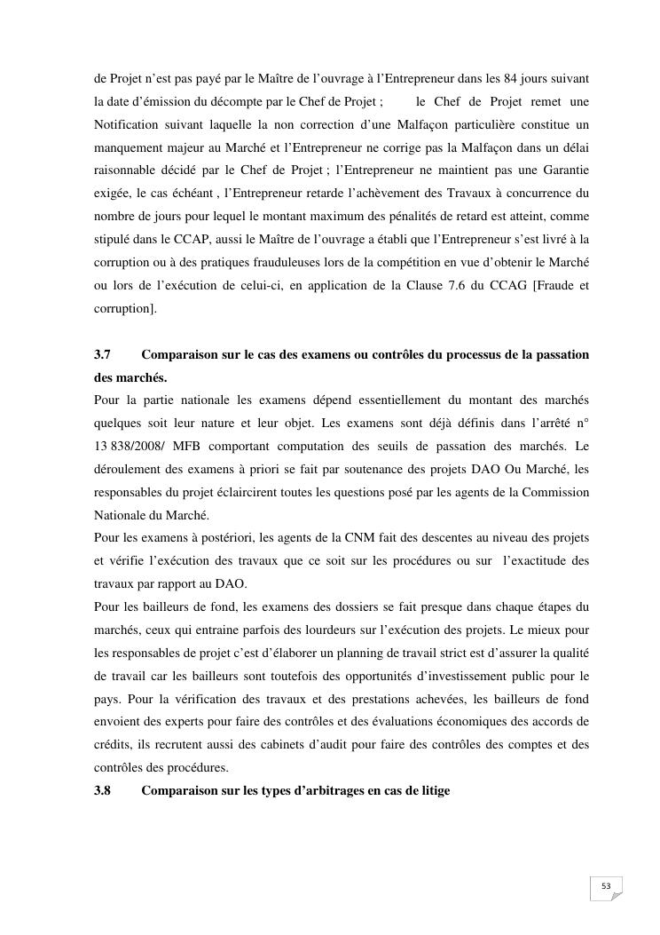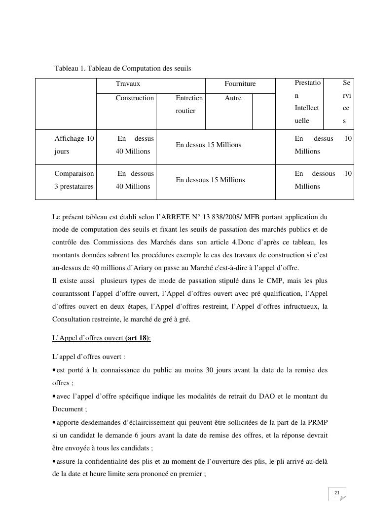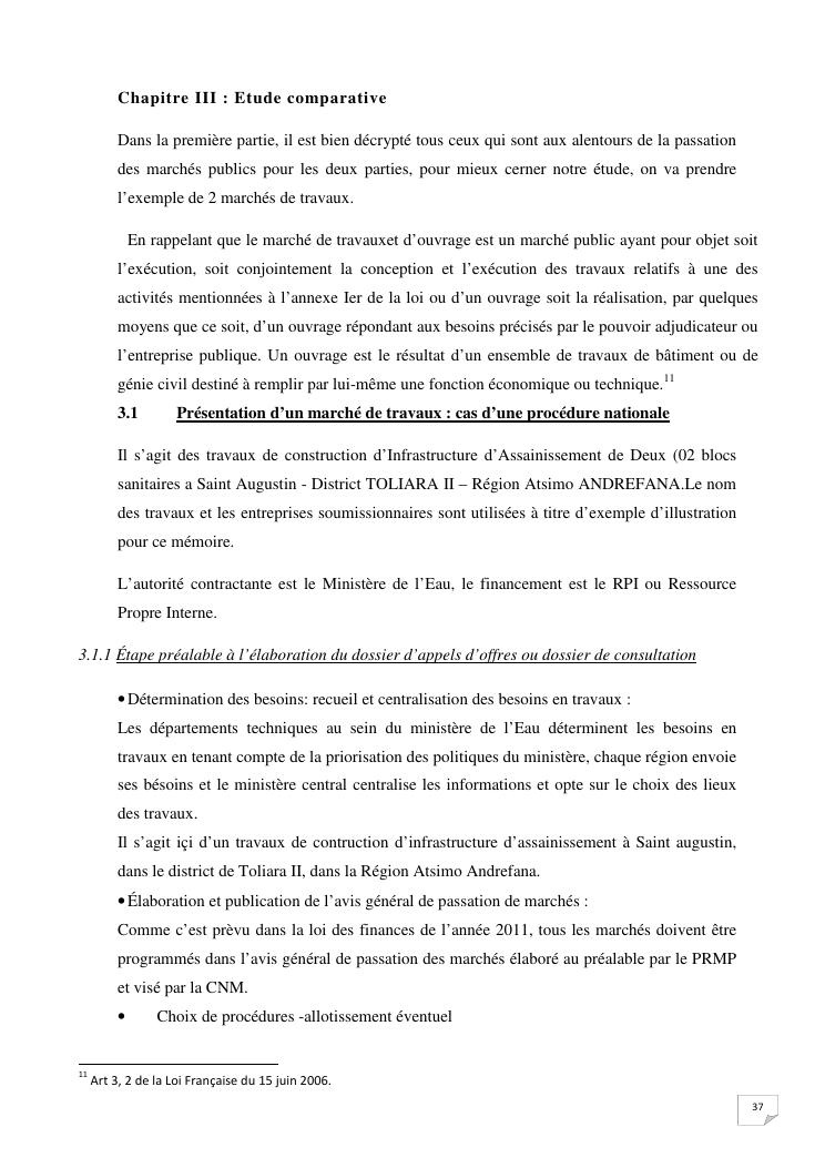 analyse comparative des procedures de passation des marches publics nationaux et des bailleurs de fonds