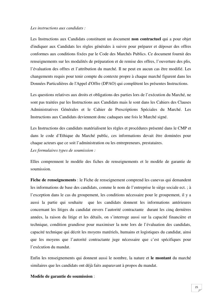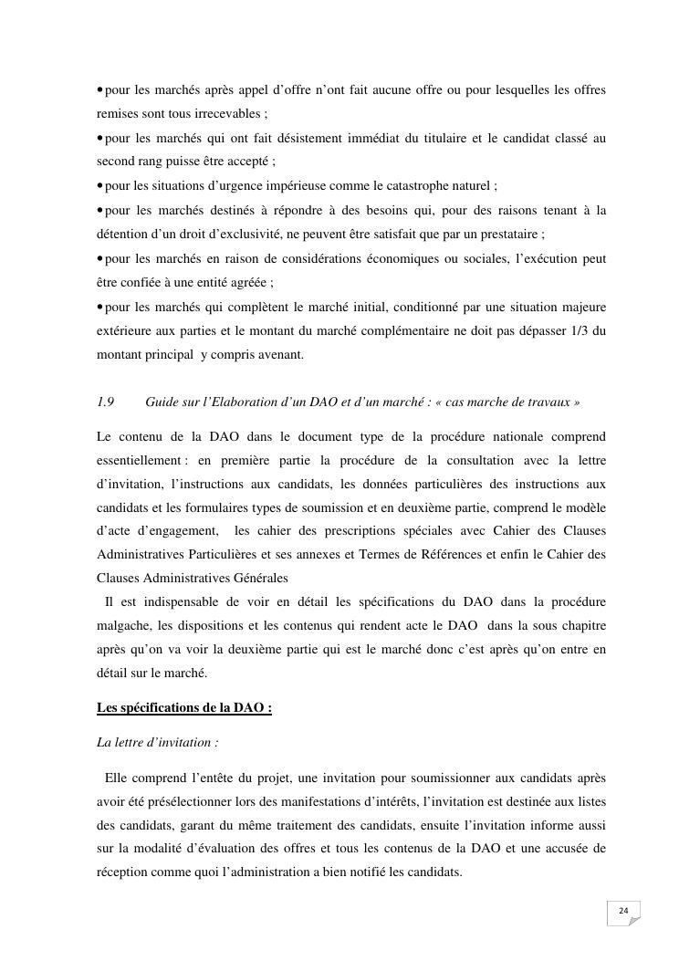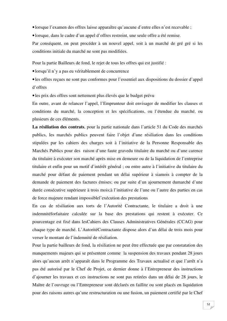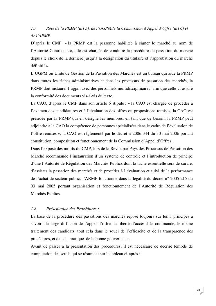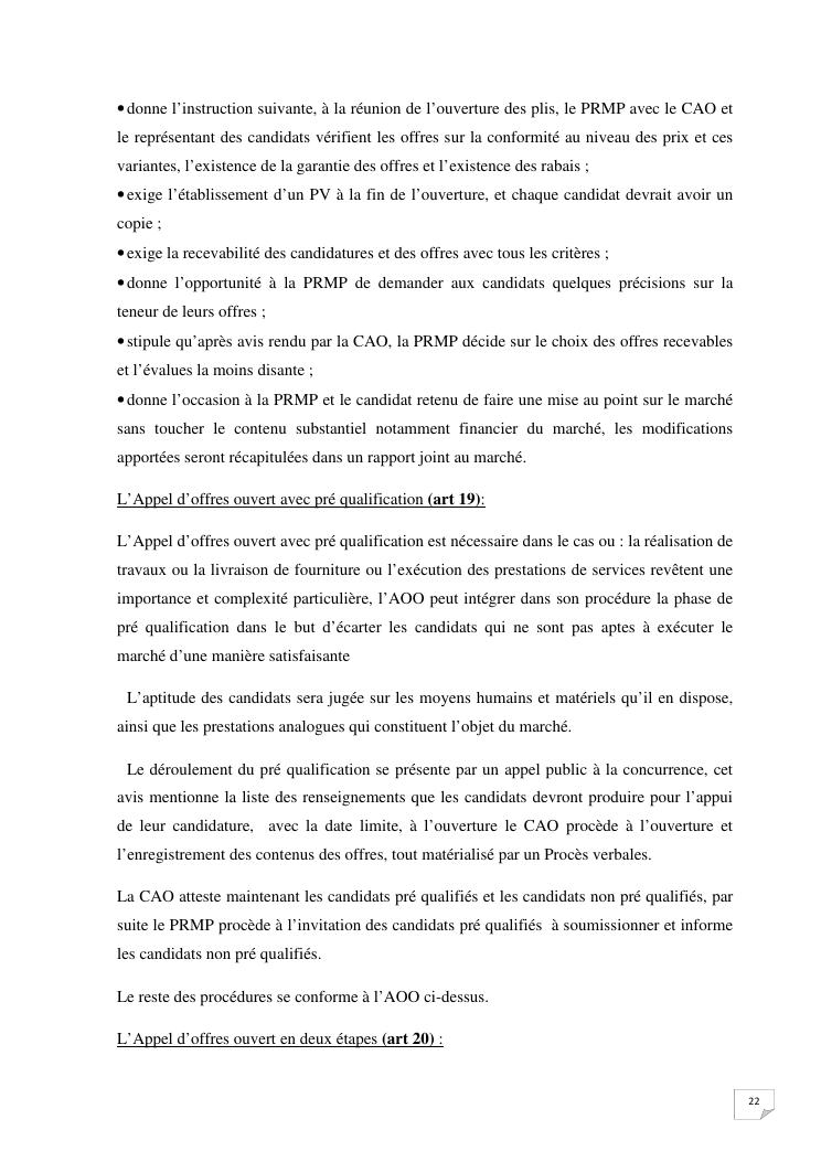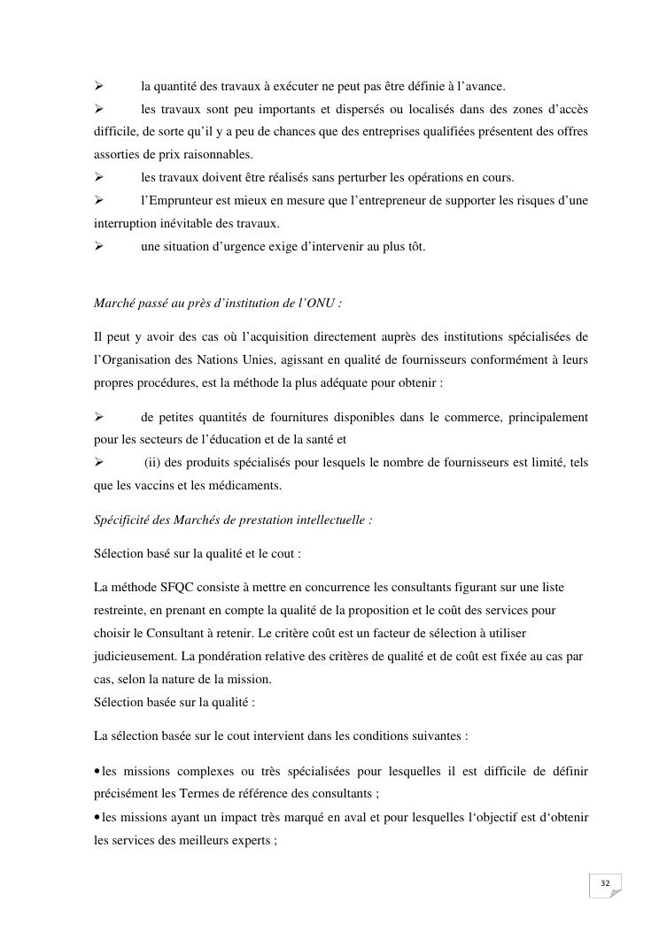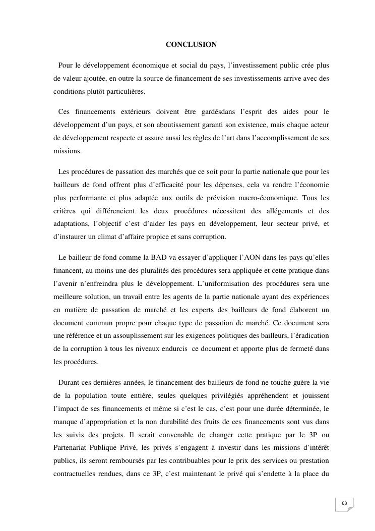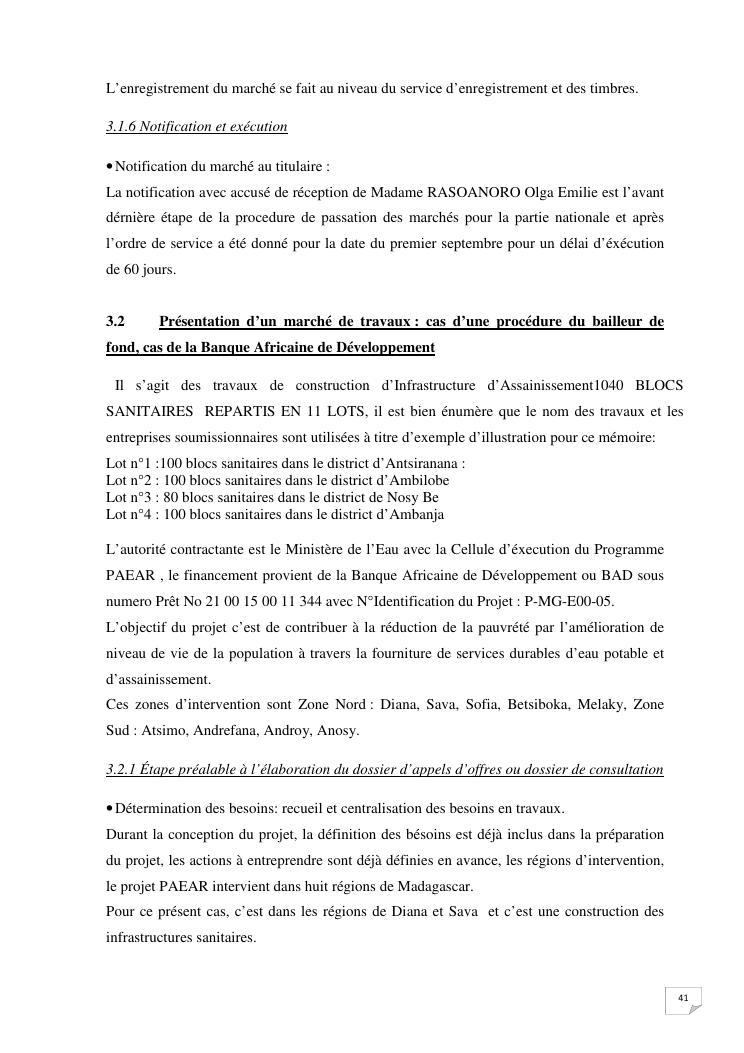 analyse comparative des procedures de passation des marches publics nationaux et des bailleurs de fonds