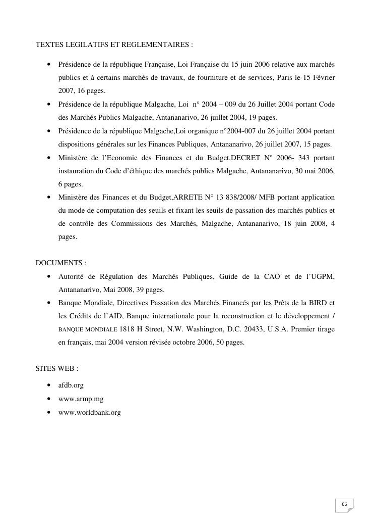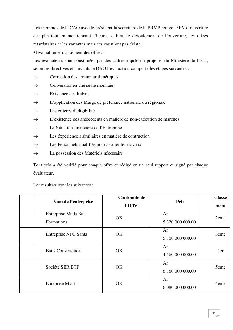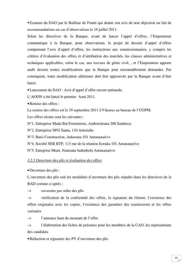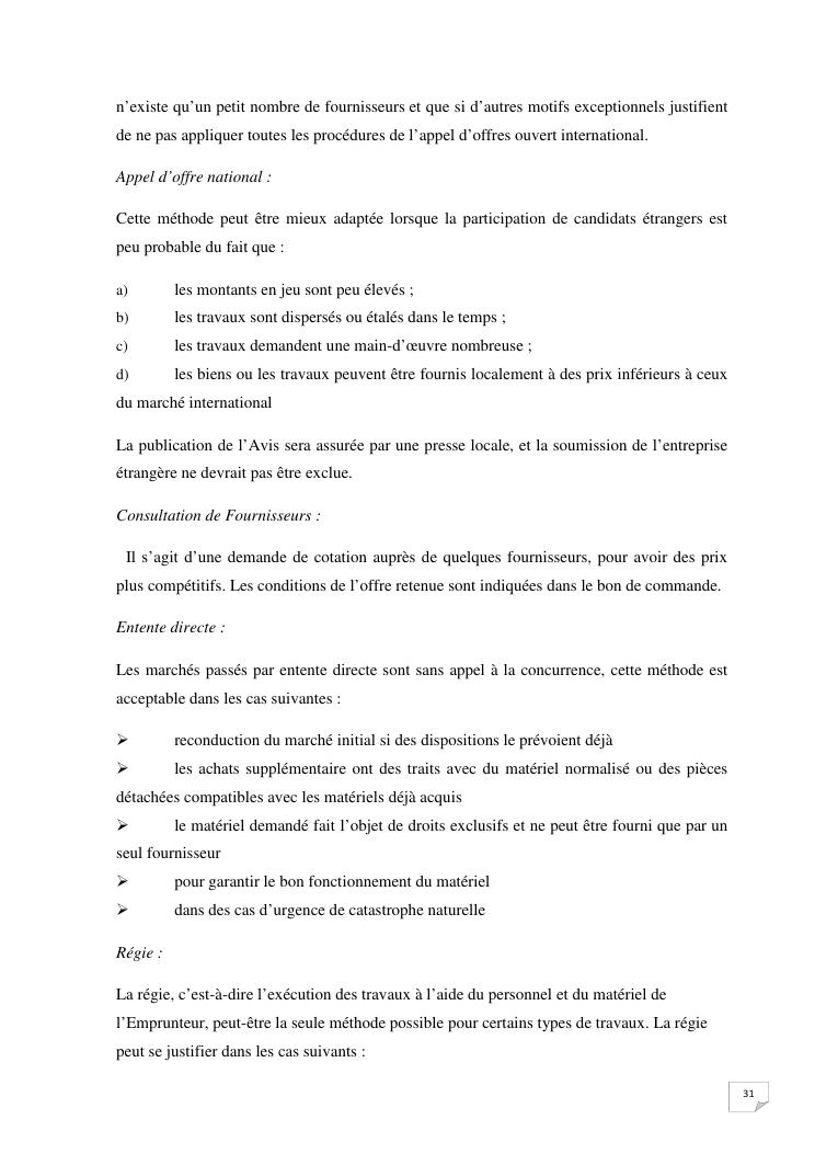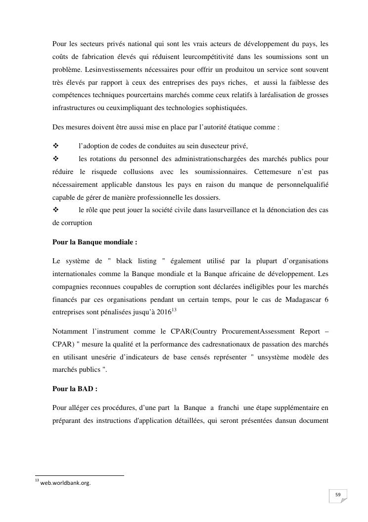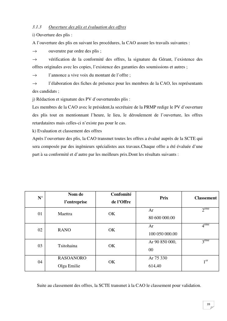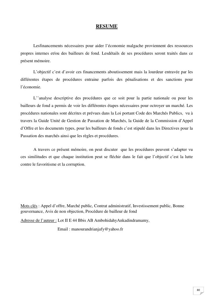 analyse comparative des procedures de passation des marches publics nationaux et des bailleurs de fonds