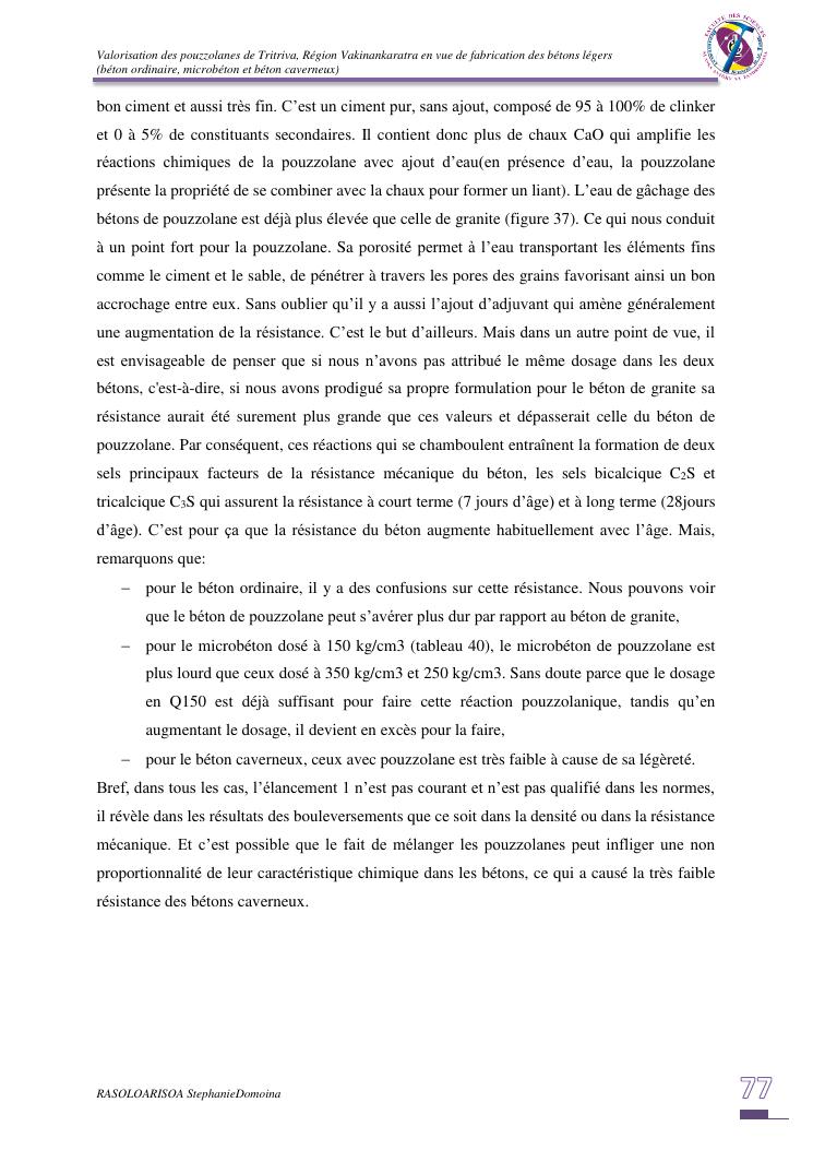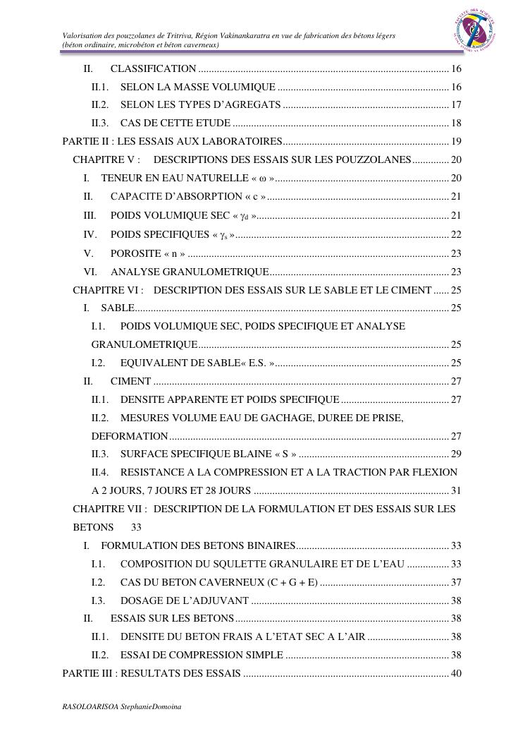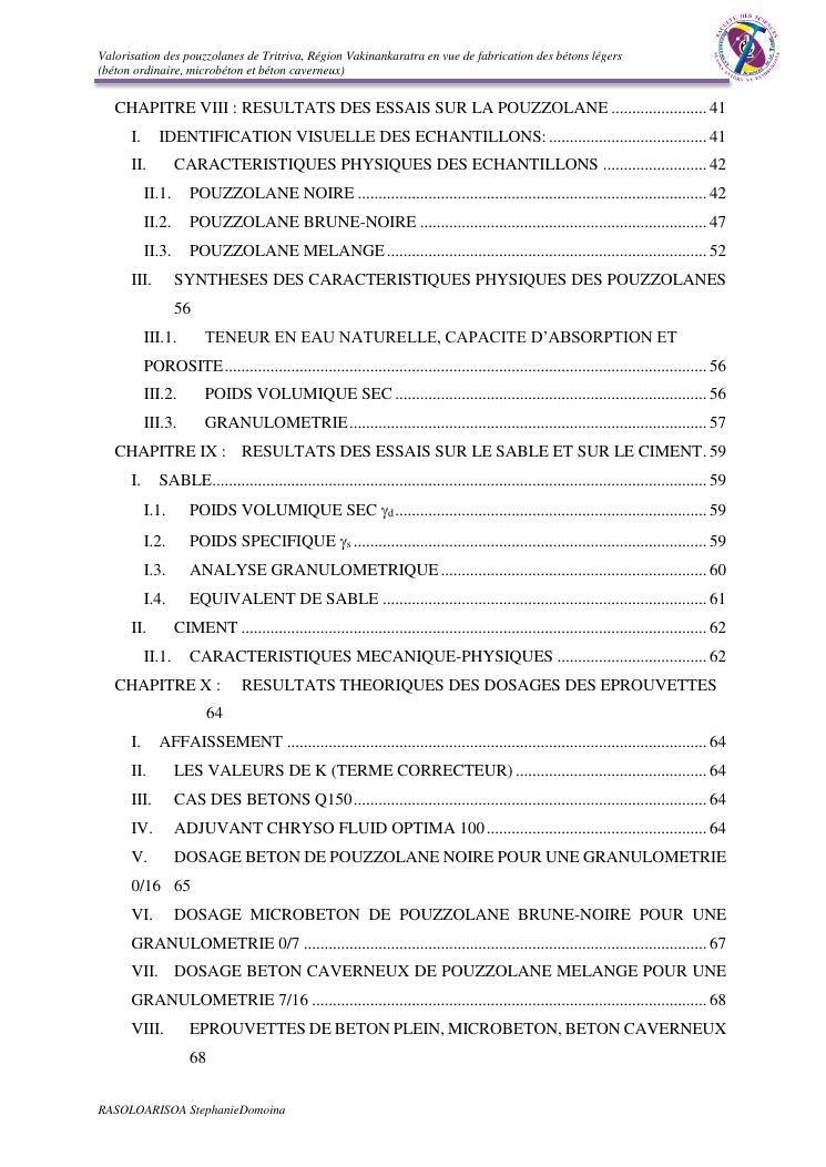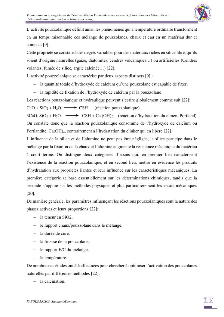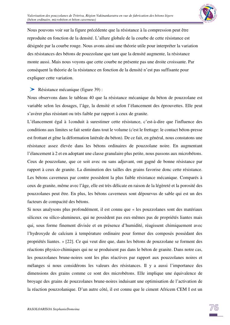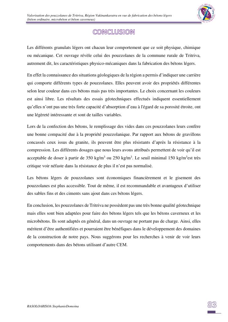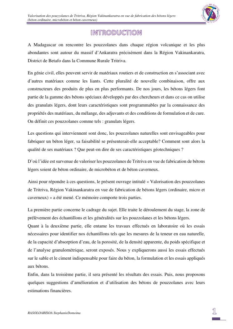 valorisation des pouzzolanes de tritriva, région vakinankaratra en vue de fabrication de bétons légers (ordinaire, micro et caverneux)