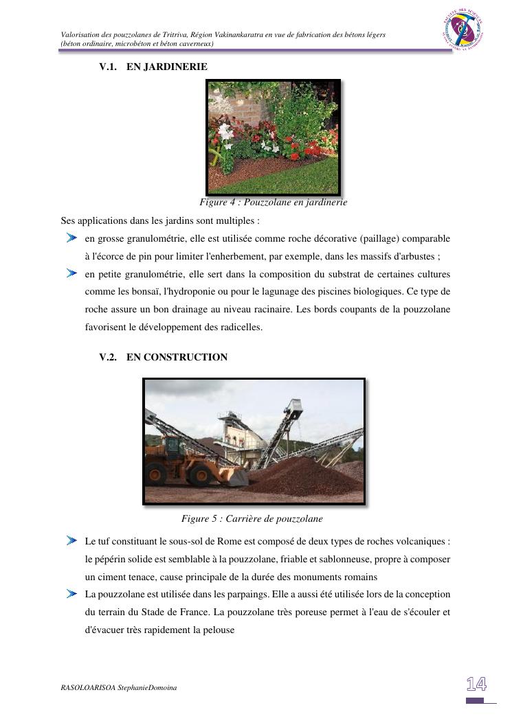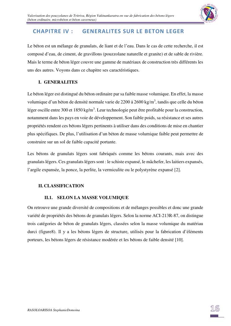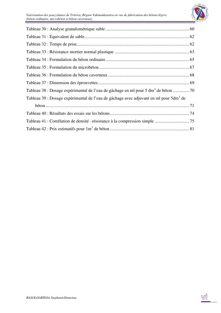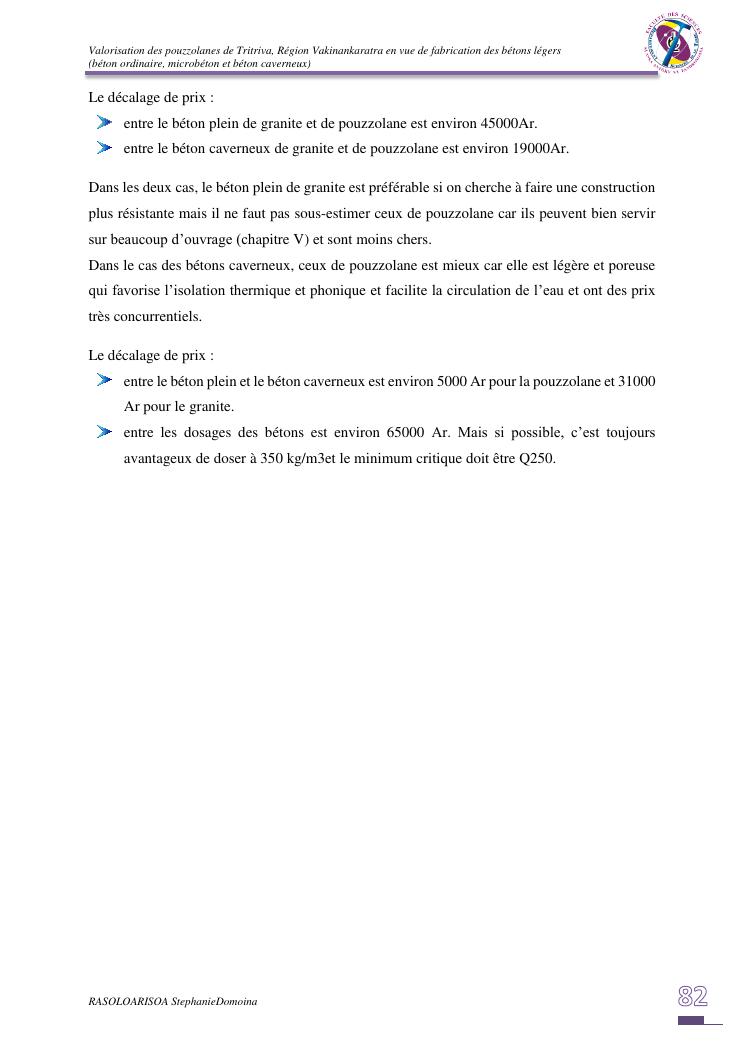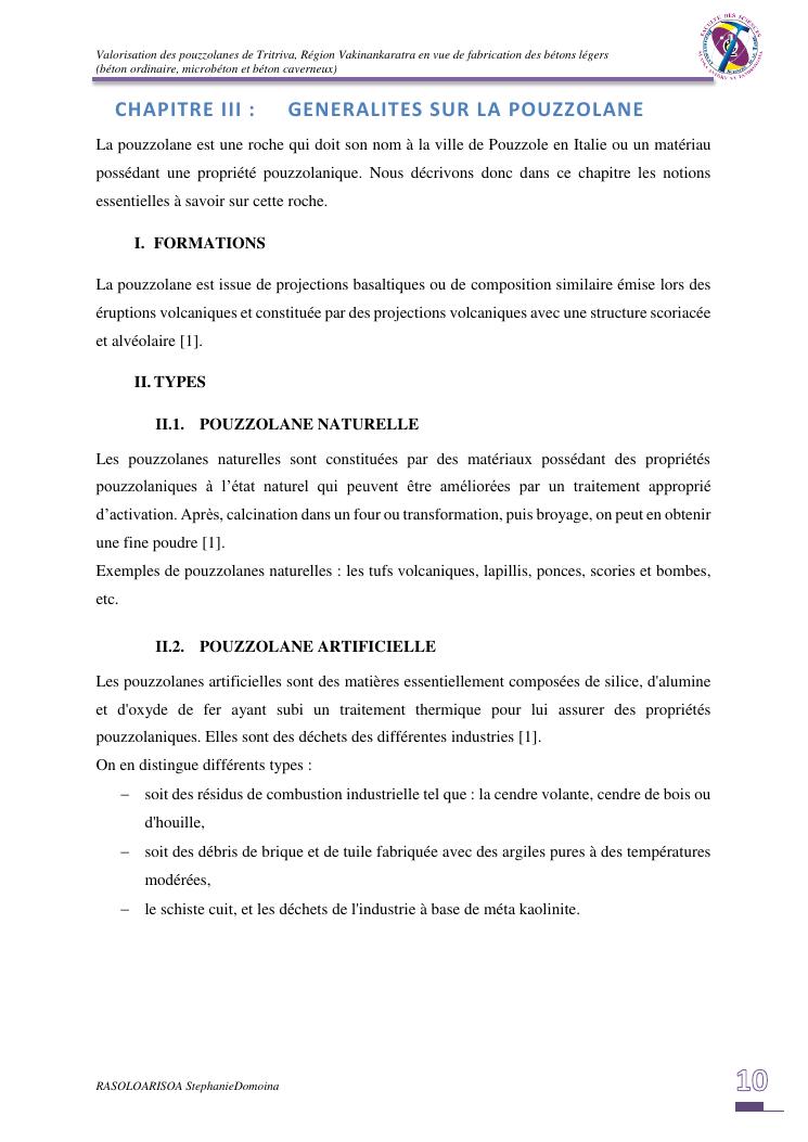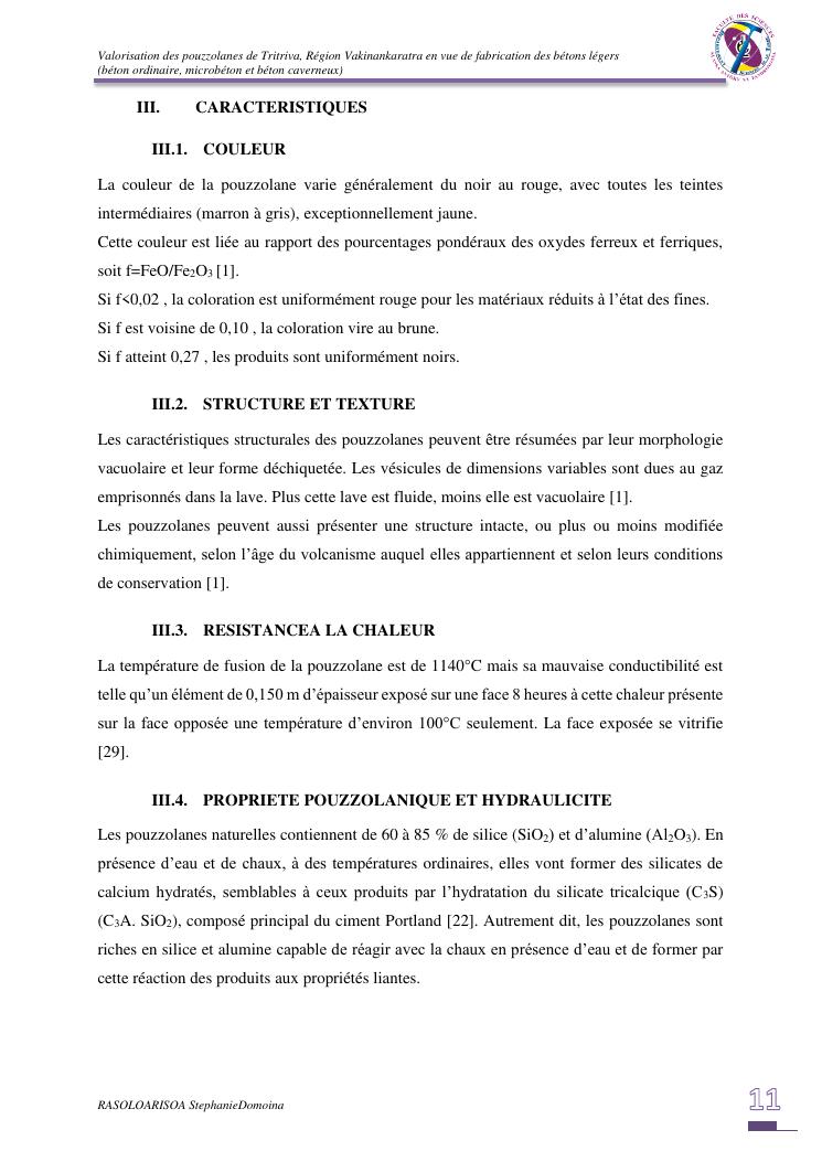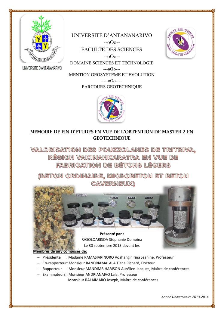 valorisation des pouzzolanes de tritriva, région vakinankaratra en vue de fabrication de bétons légers (ordinaire, micro et caverneux)
