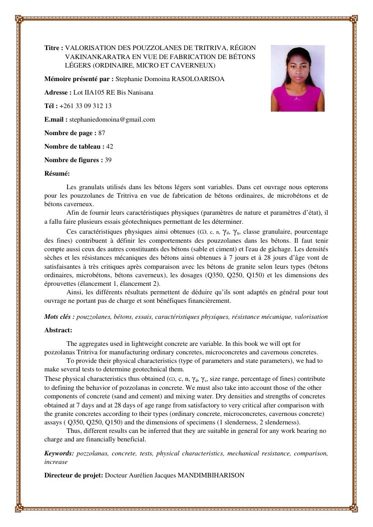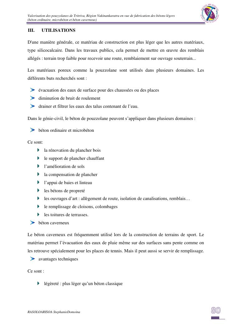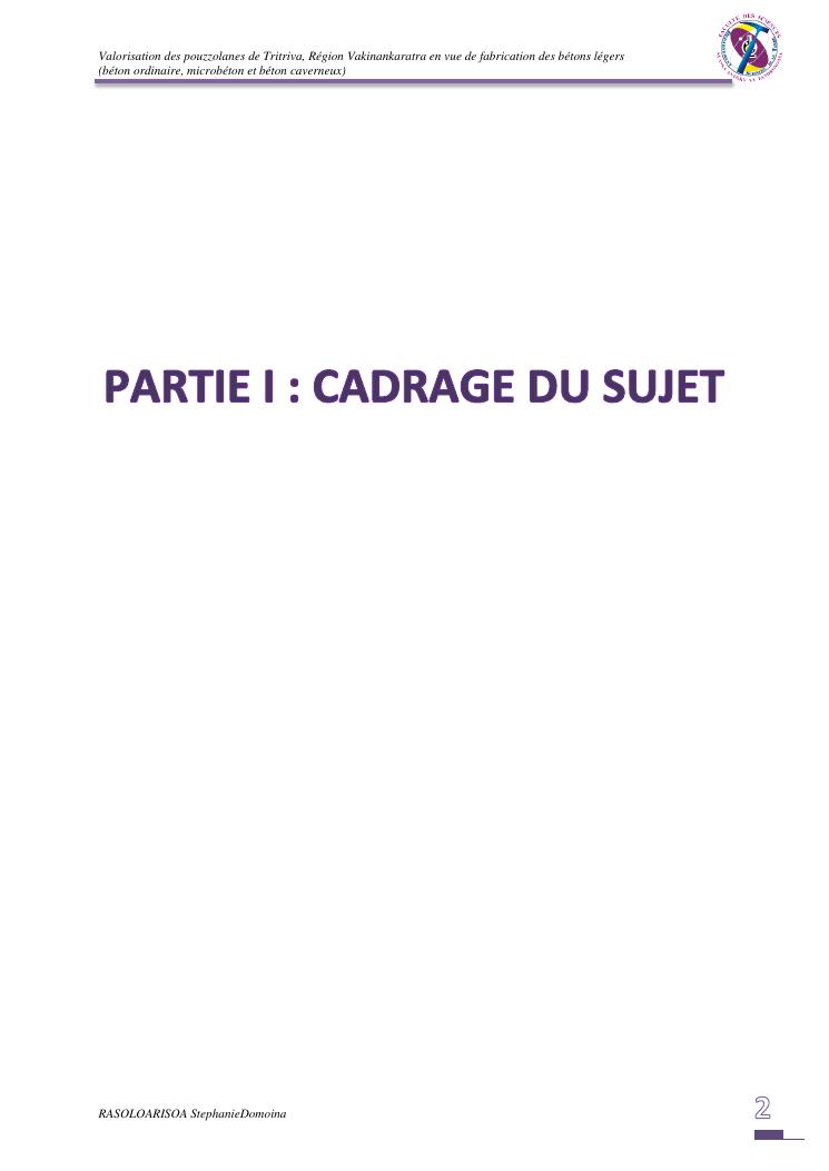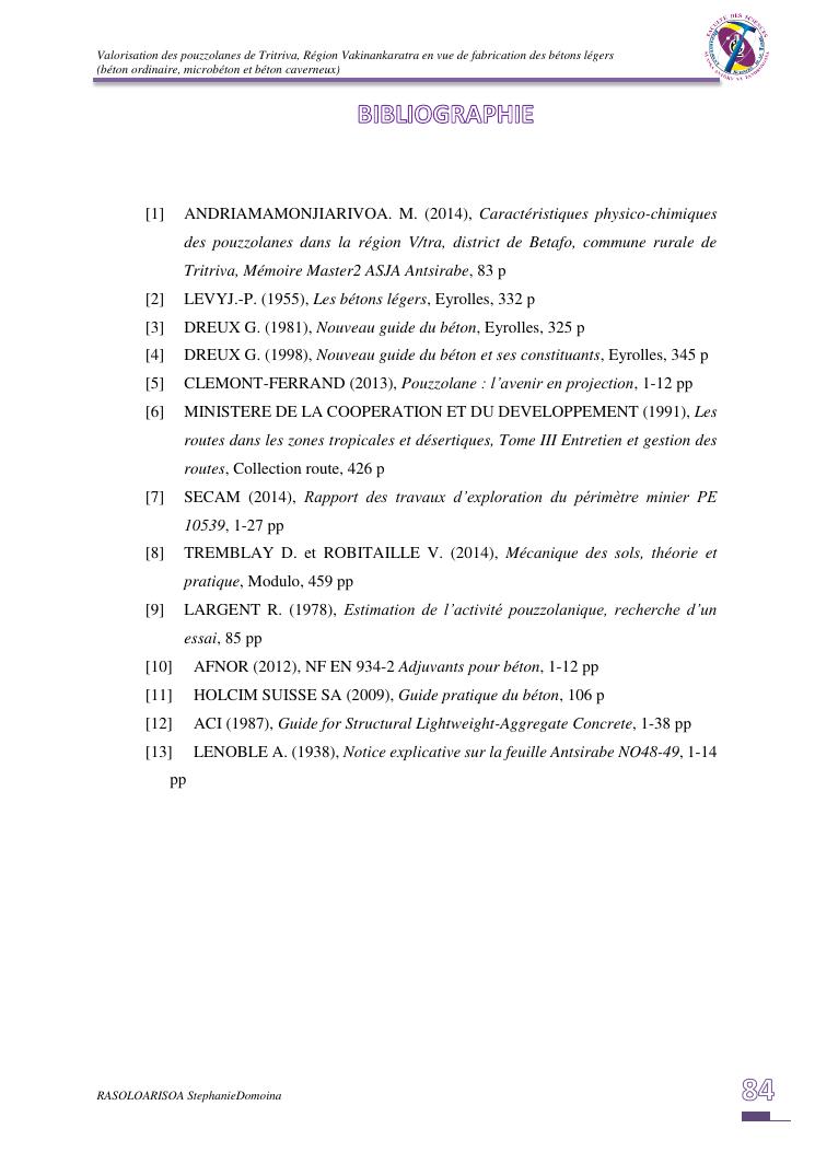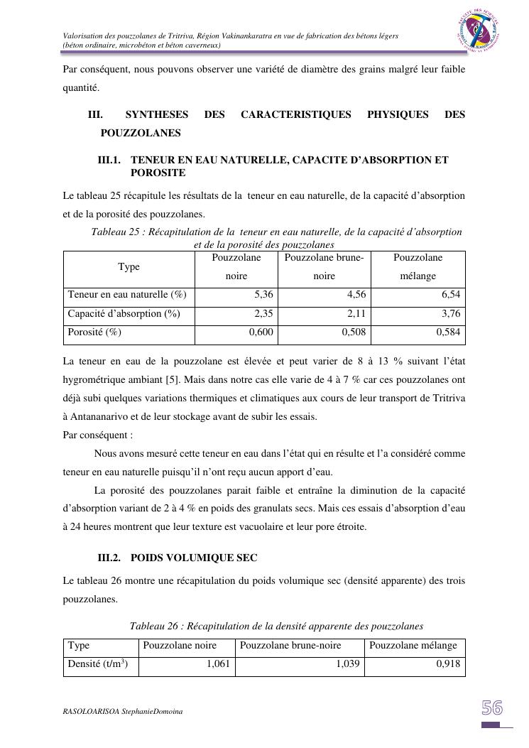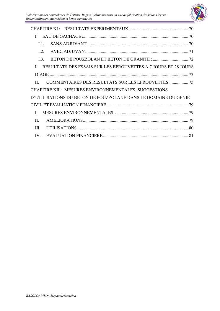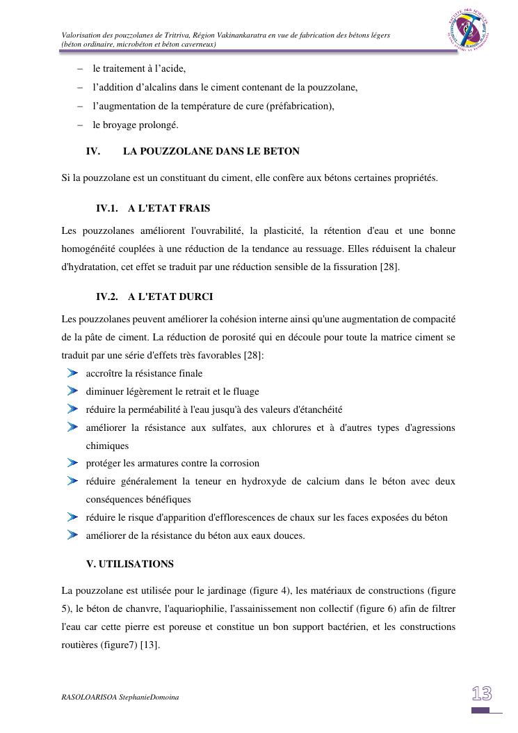 valorisation des pouzzolanes de tritriva, région vakinankaratra en vue de fabrication de bétons légers (ordinaire, micro et caverneux)