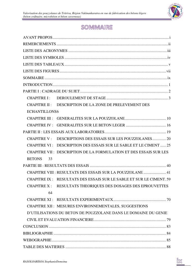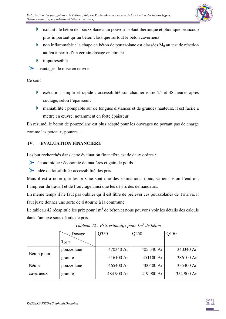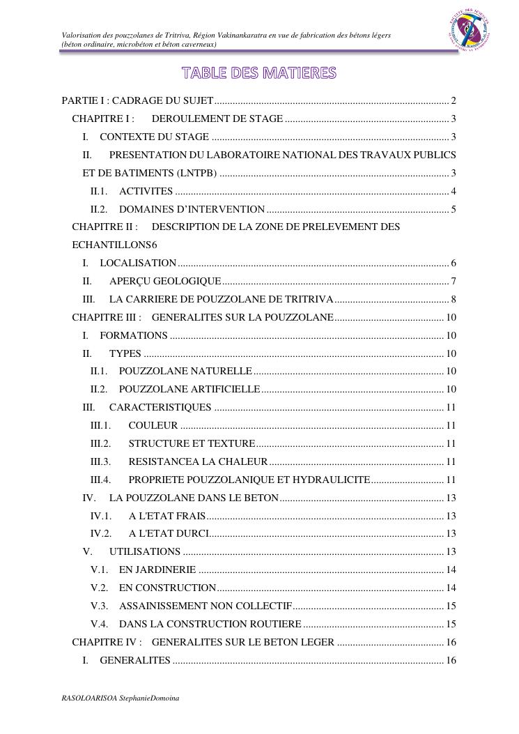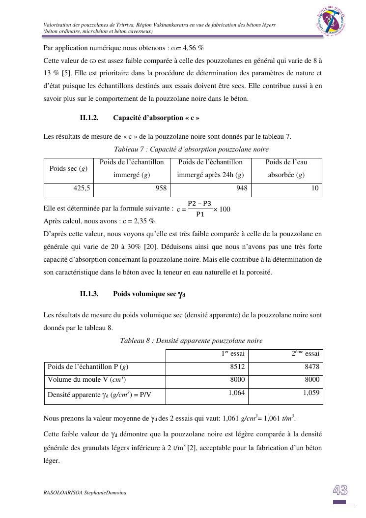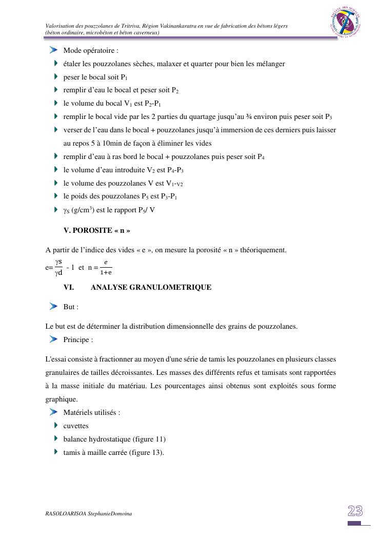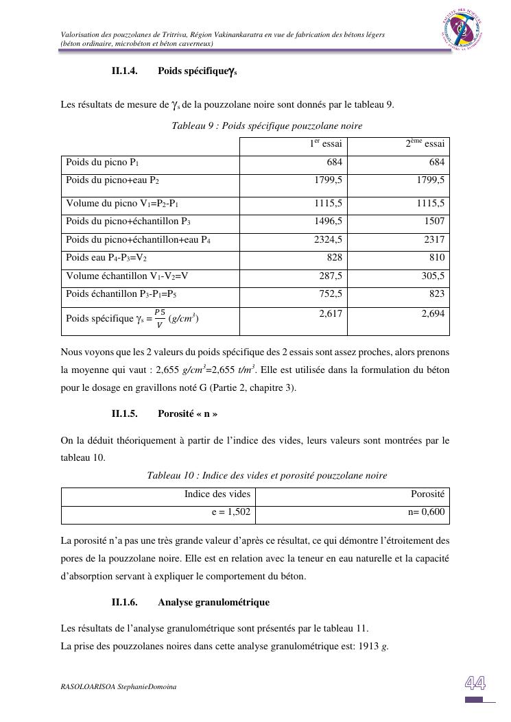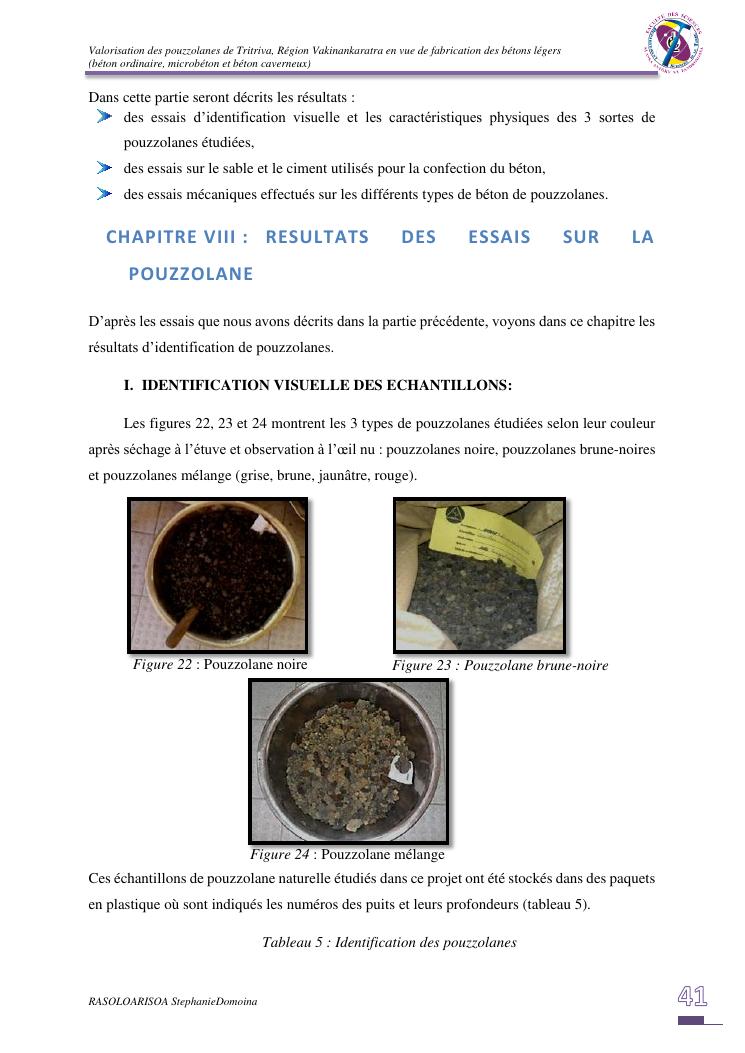 valorisation des pouzzolanes de tritriva, région vakinankaratra en vue de fabrication de bétons légers (ordinaire, micro et caverneux)