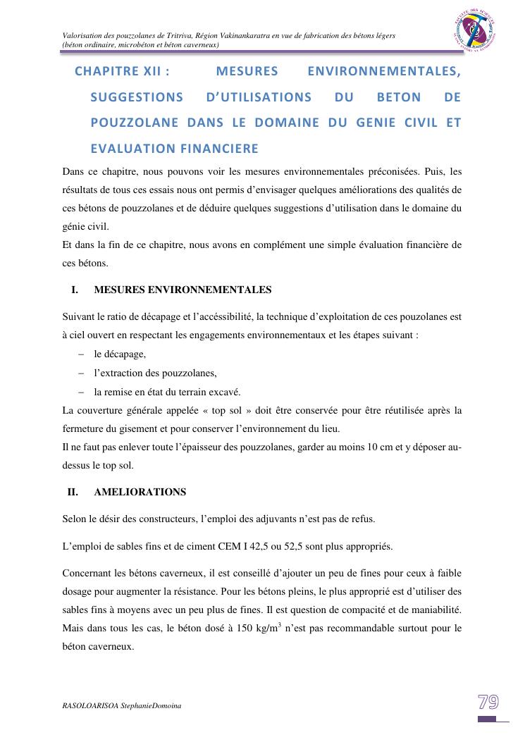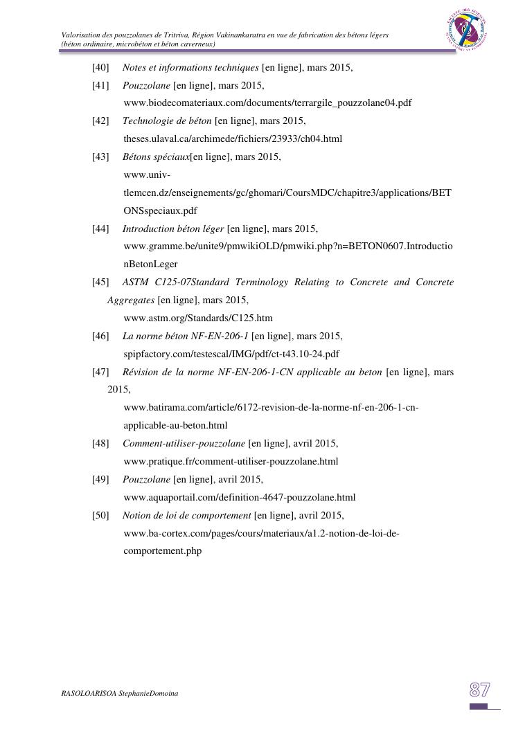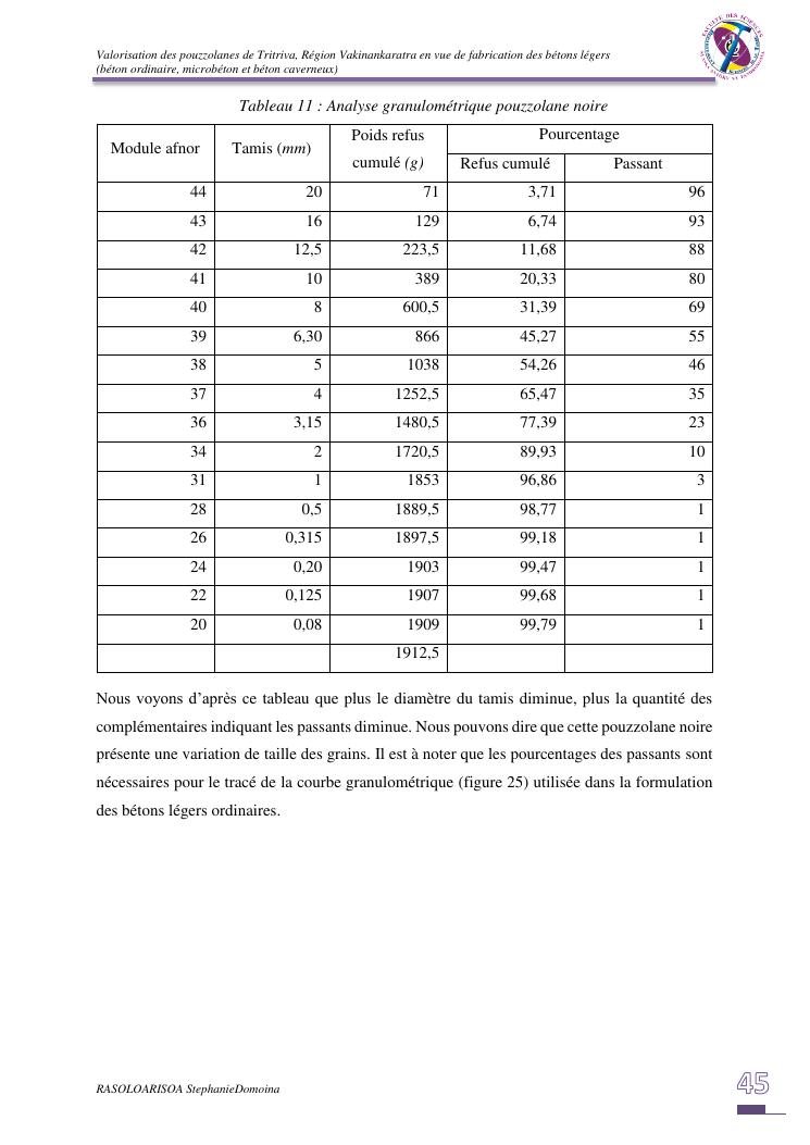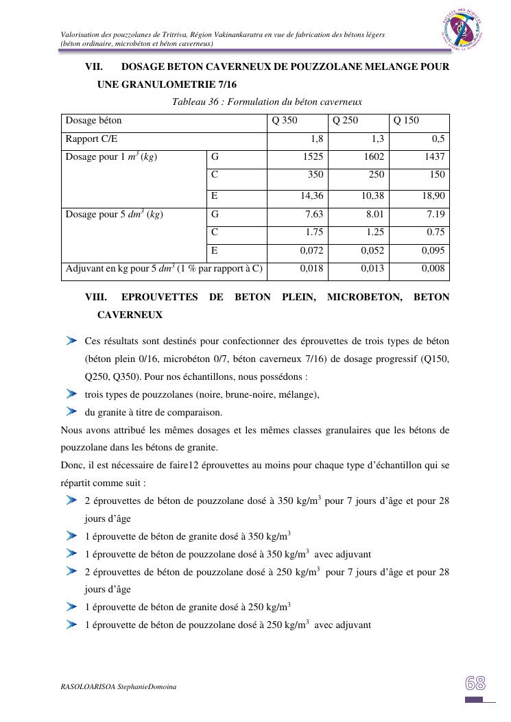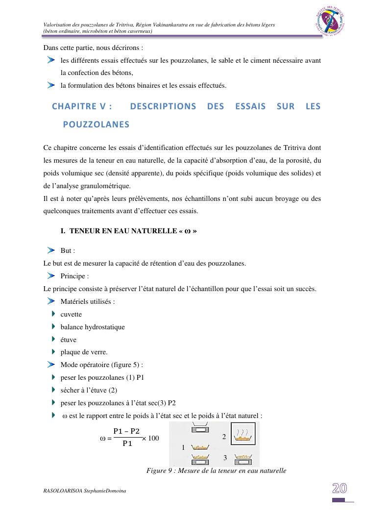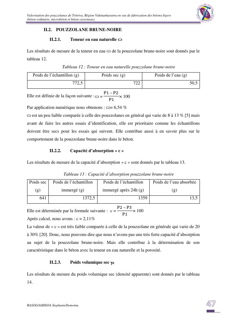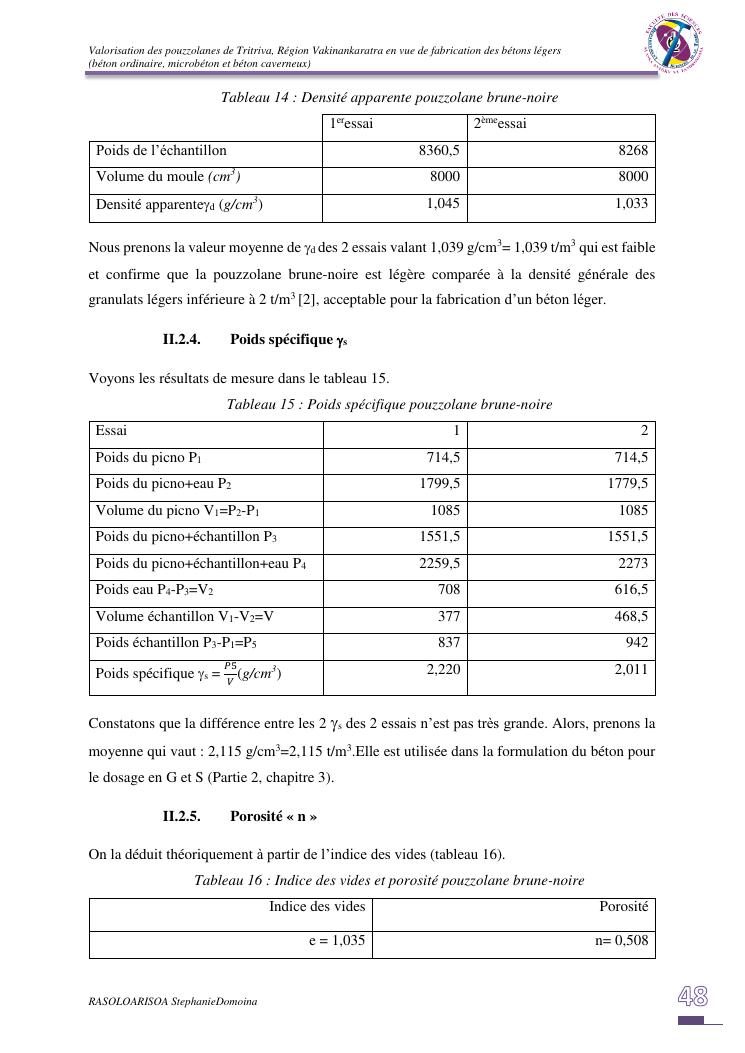 valorisation des pouzzolanes de tritriva, région vakinankaratra en vue de fabrication de bétons légers (ordinaire, micro et caverneux)