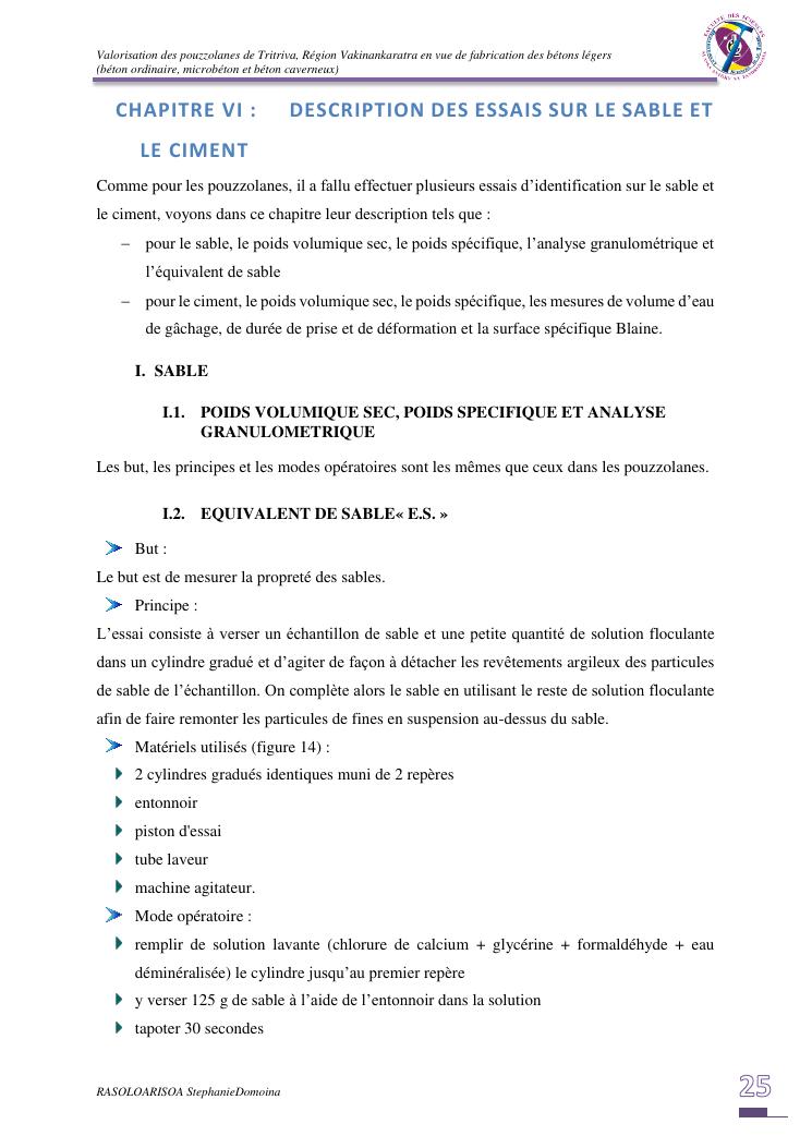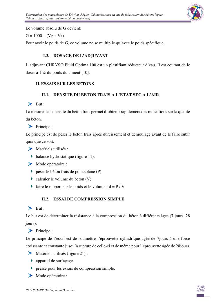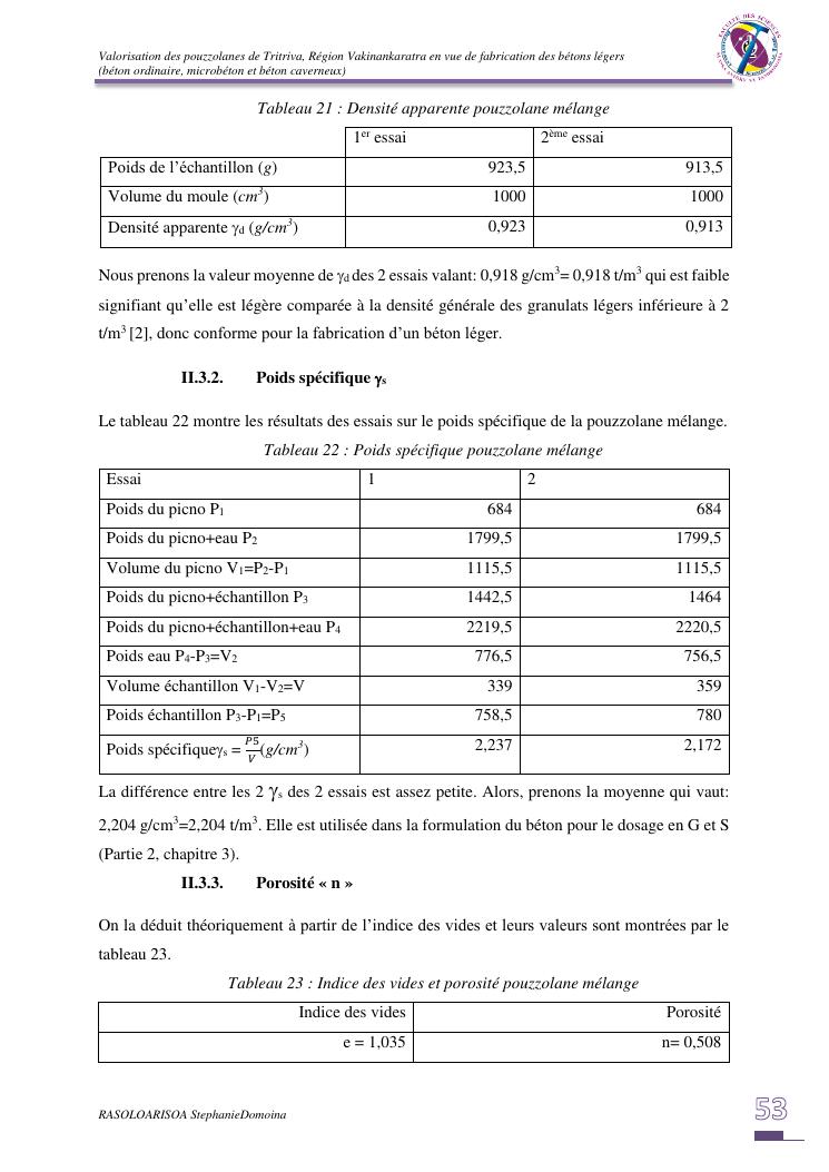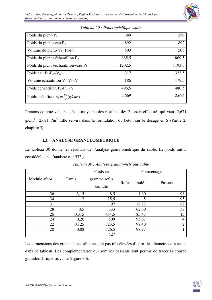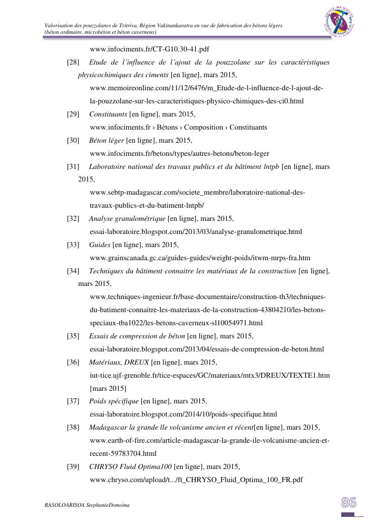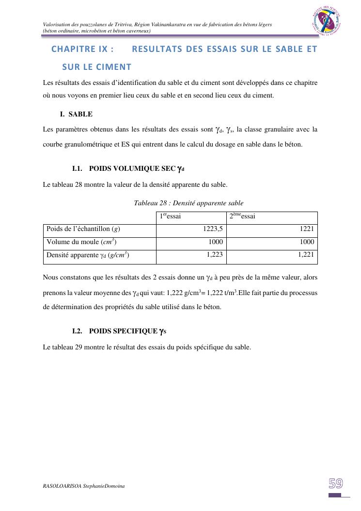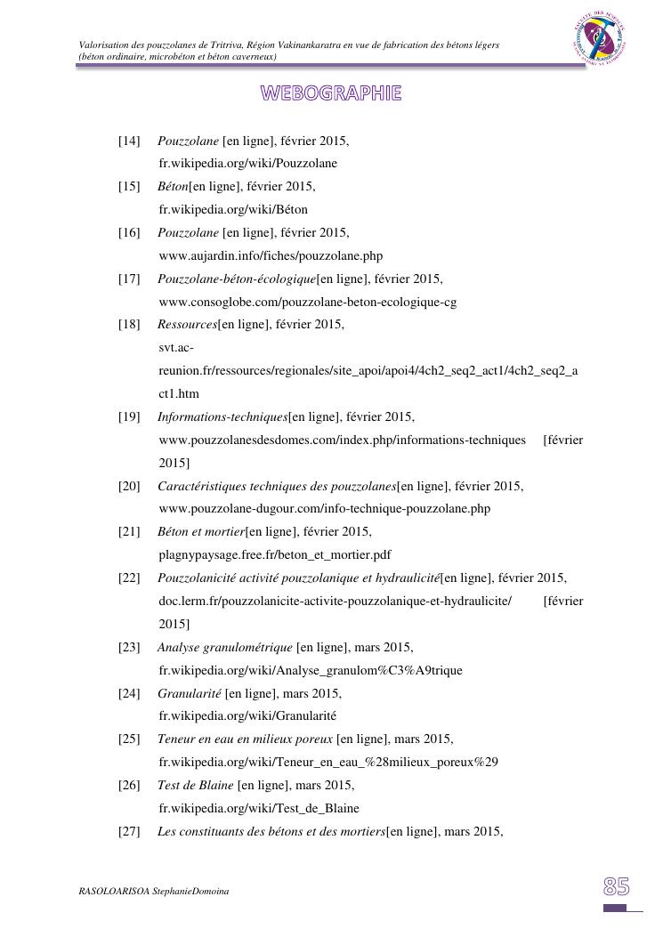 valorisation des pouzzolanes de tritriva, région vakinankaratra en vue de fabrication de bétons légers (ordinaire, micro et caverneux)