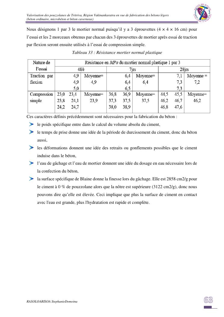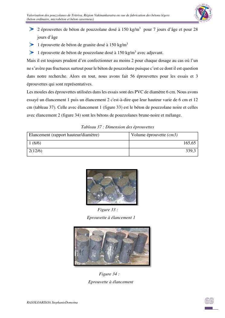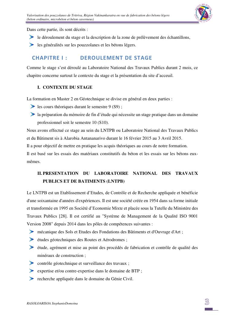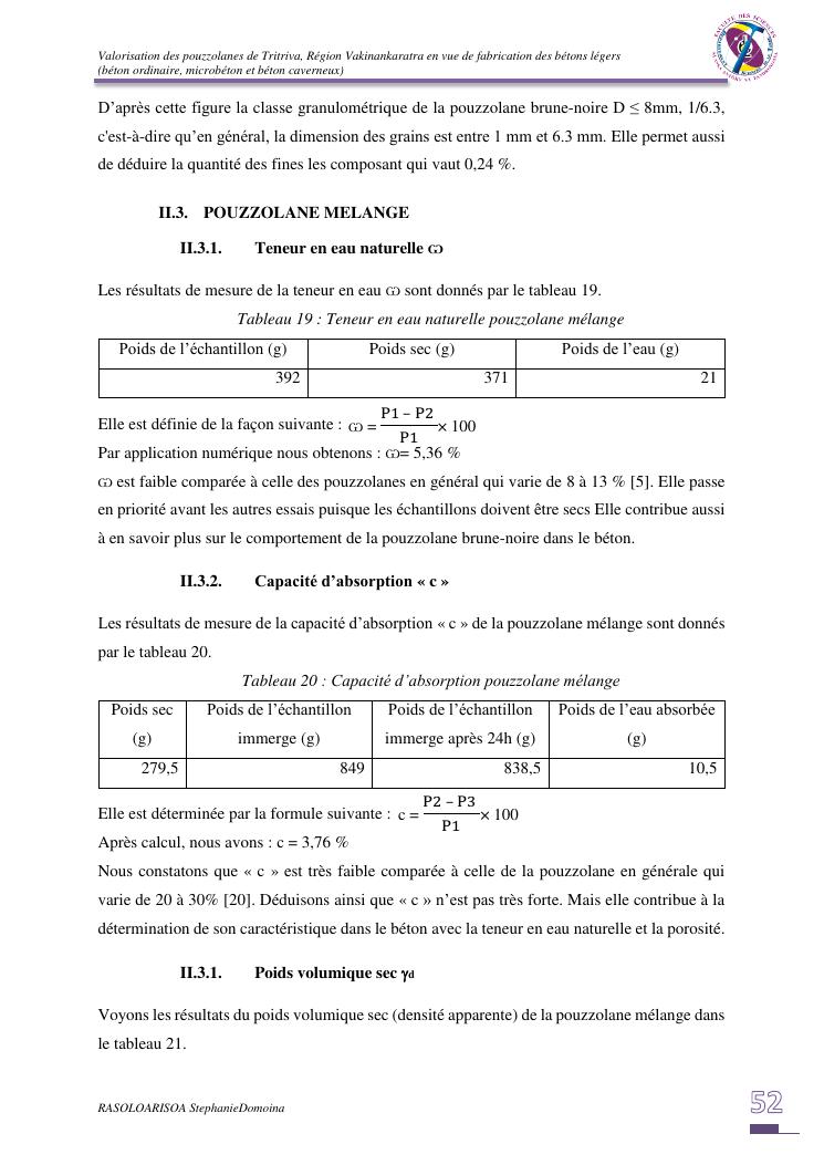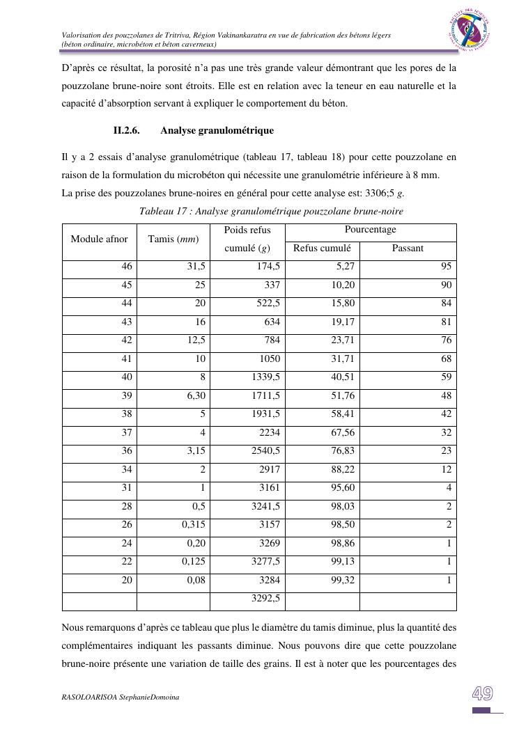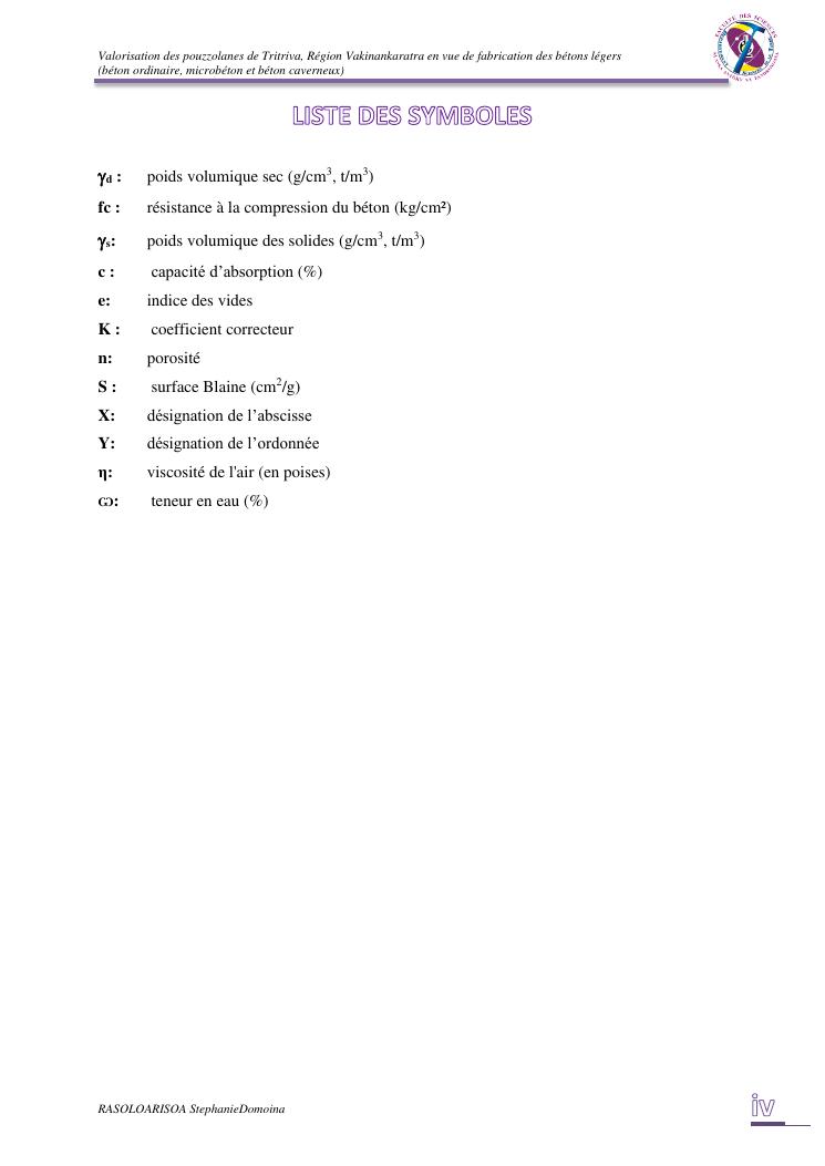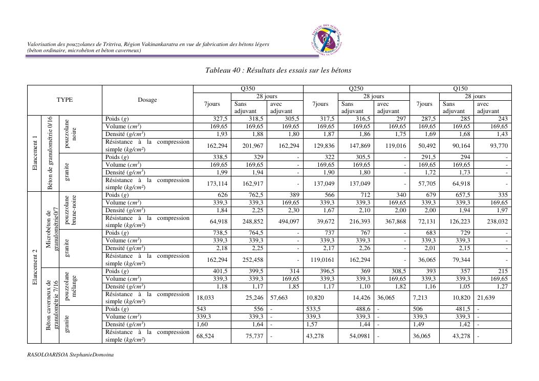 valorisation des pouzzolanes de tritriva, région vakinankaratra en vue de fabrication de bétons légers (ordinaire, micro et caverneux)