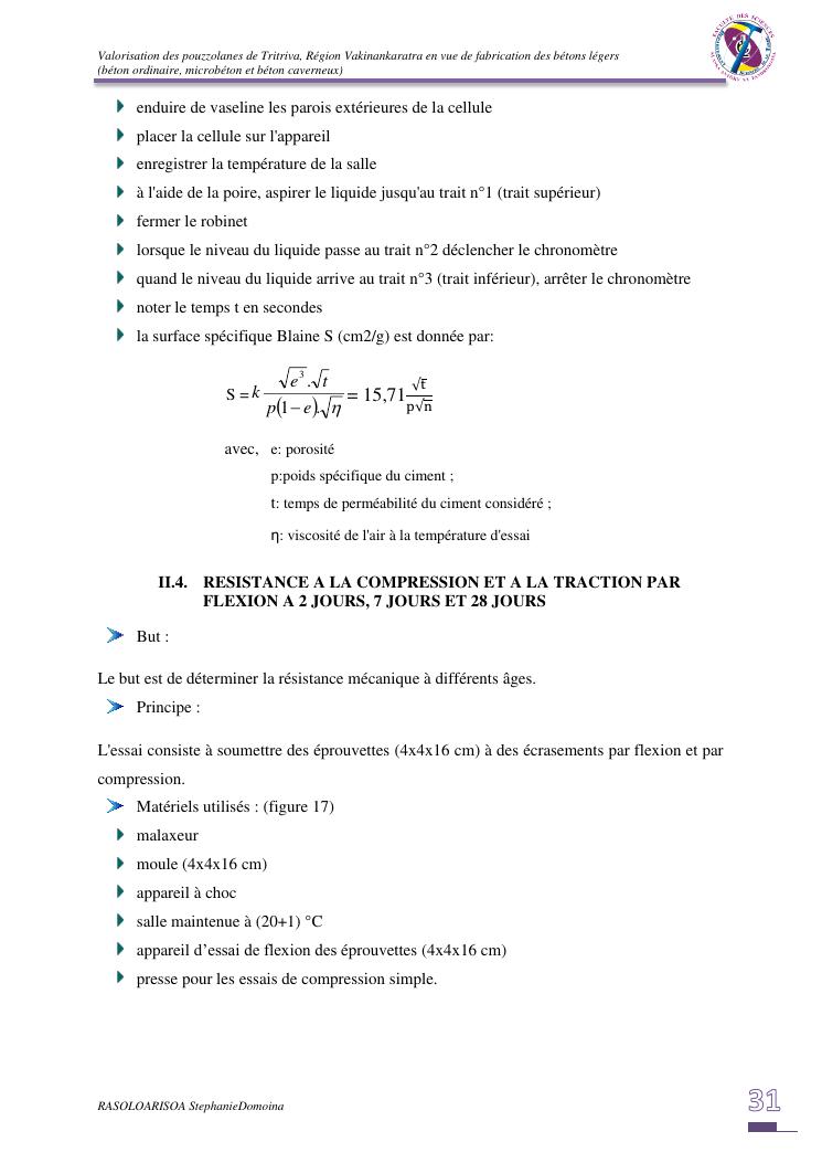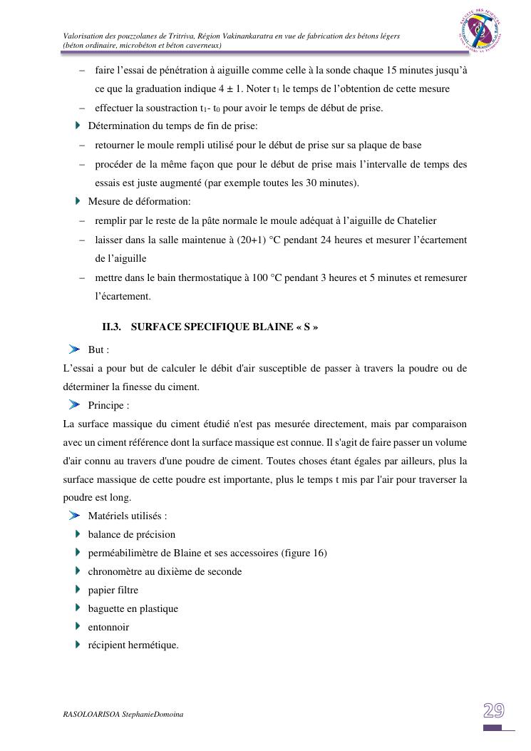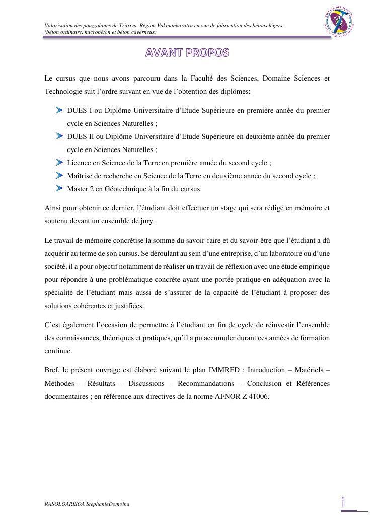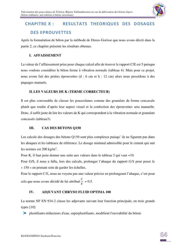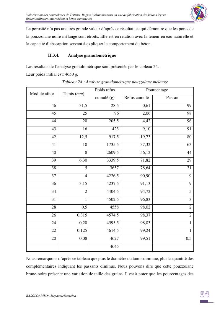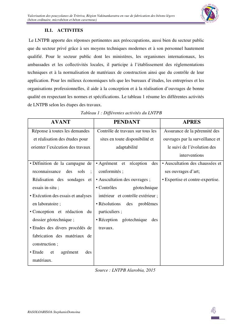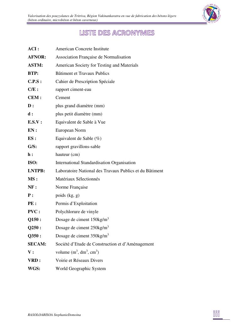 valorisation des pouzzolanes de tritriva, région vakinankaratra en vue de fabrication de bétons légers (ordinaire, micro et caverneux)