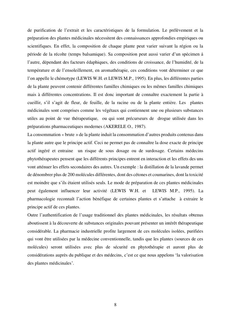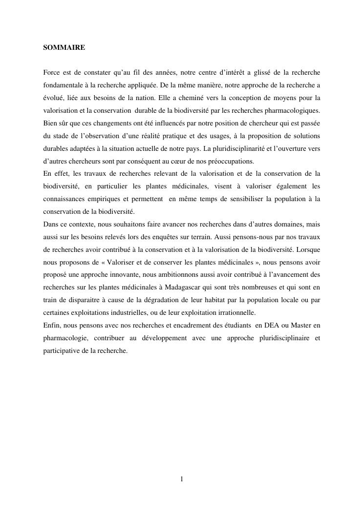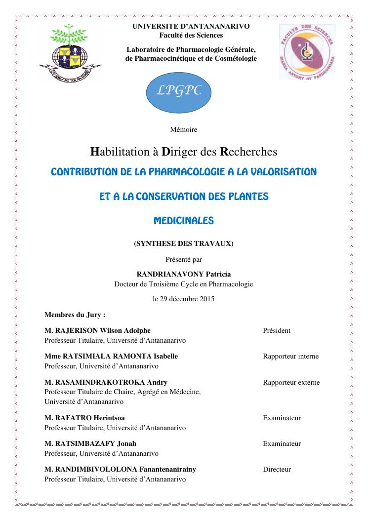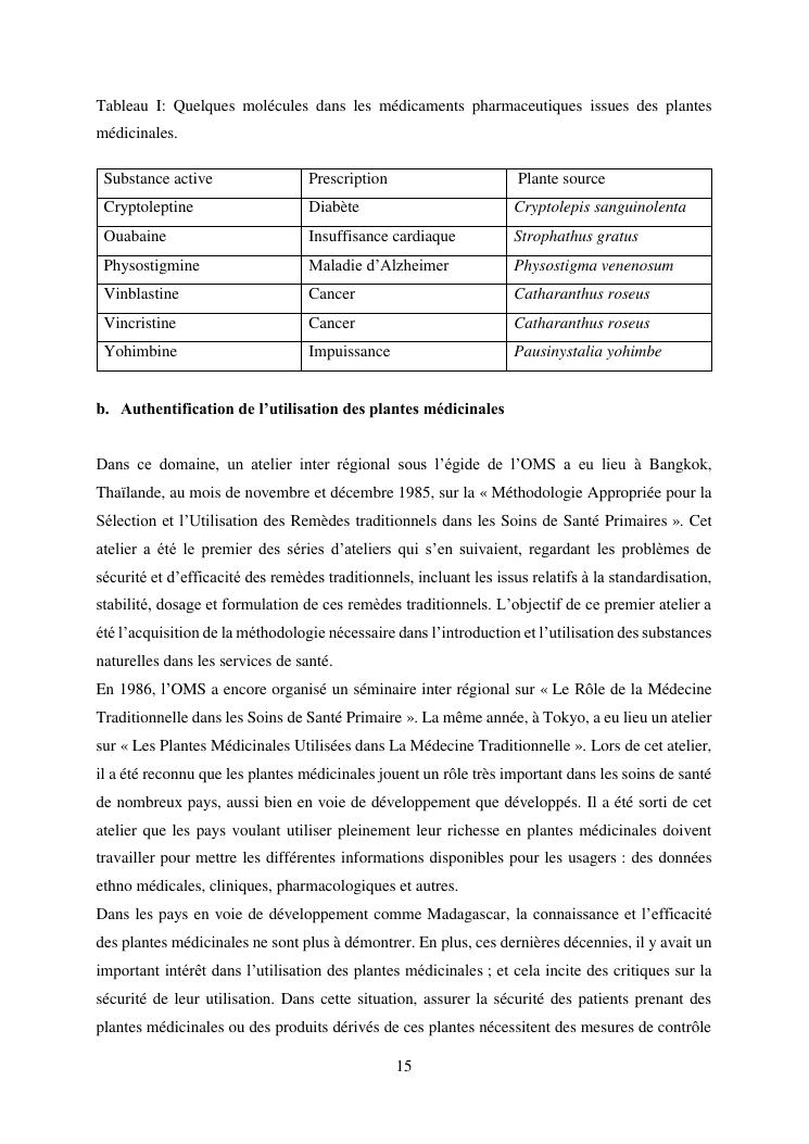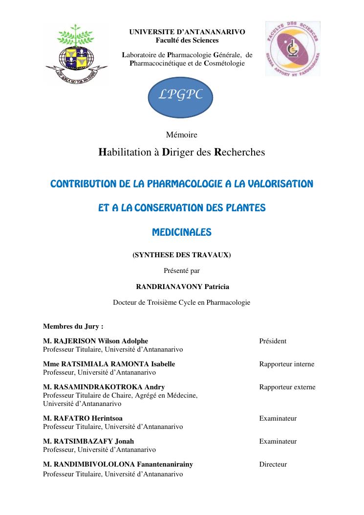 contribution de la pharmacologie a la valorisation et a la conservation des plantes medicinales (synthese des travaux)