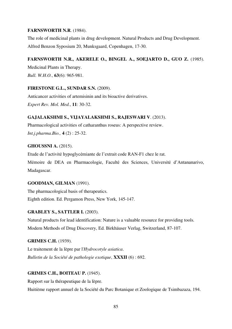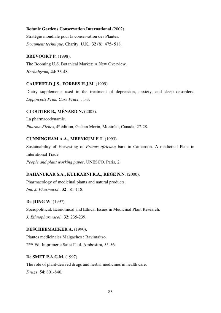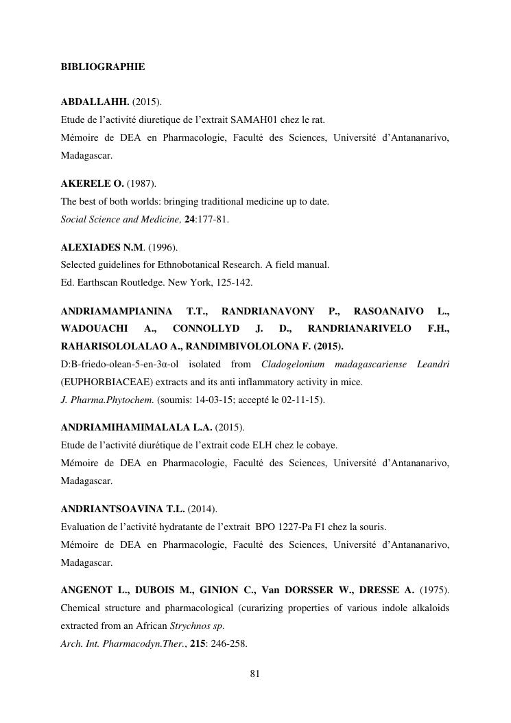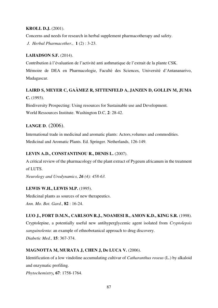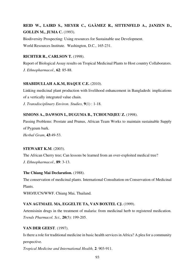 contribution de la pharmacologie a la valorisation et a la conservation des plantes medicinales (synthese des travaux)
