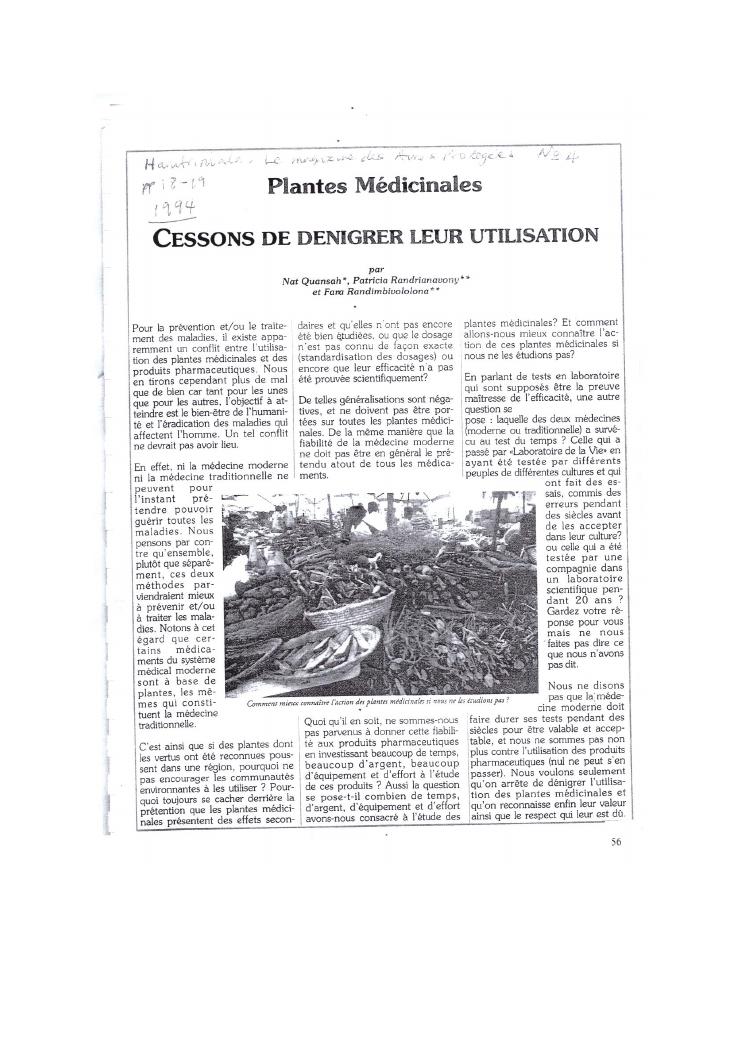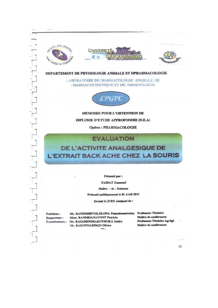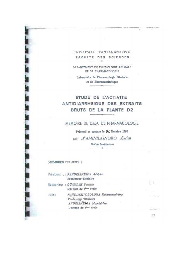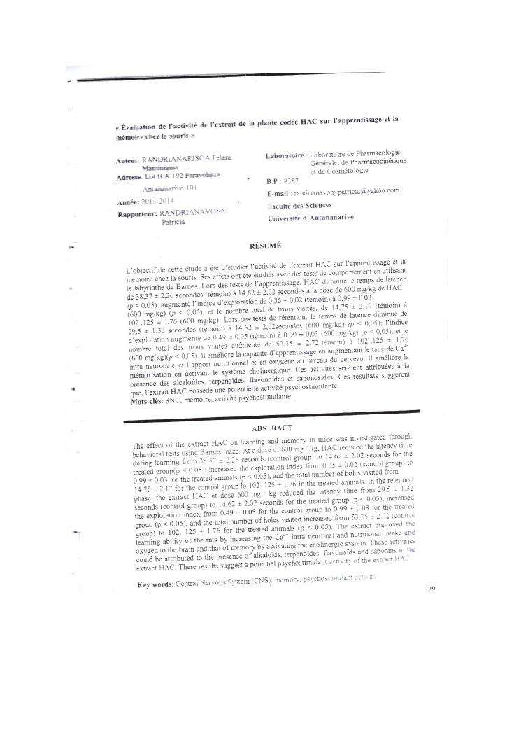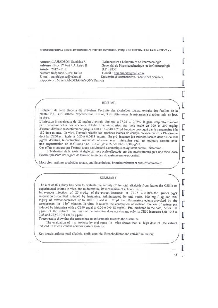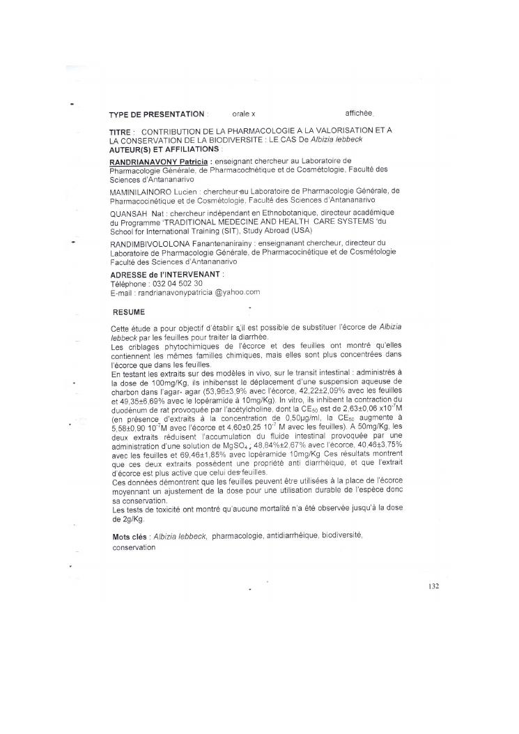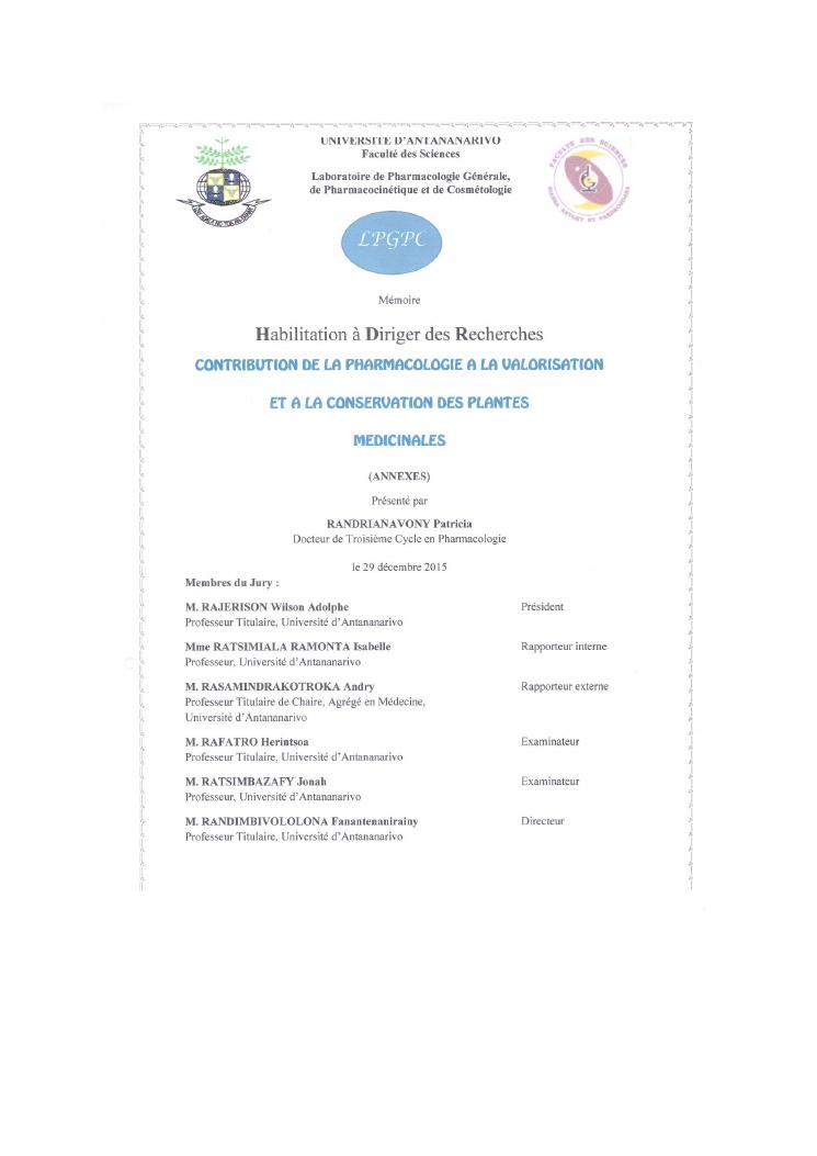contribution de la pharmacologie a la valorisation et a la conservation des plantes medicinales (annexes)