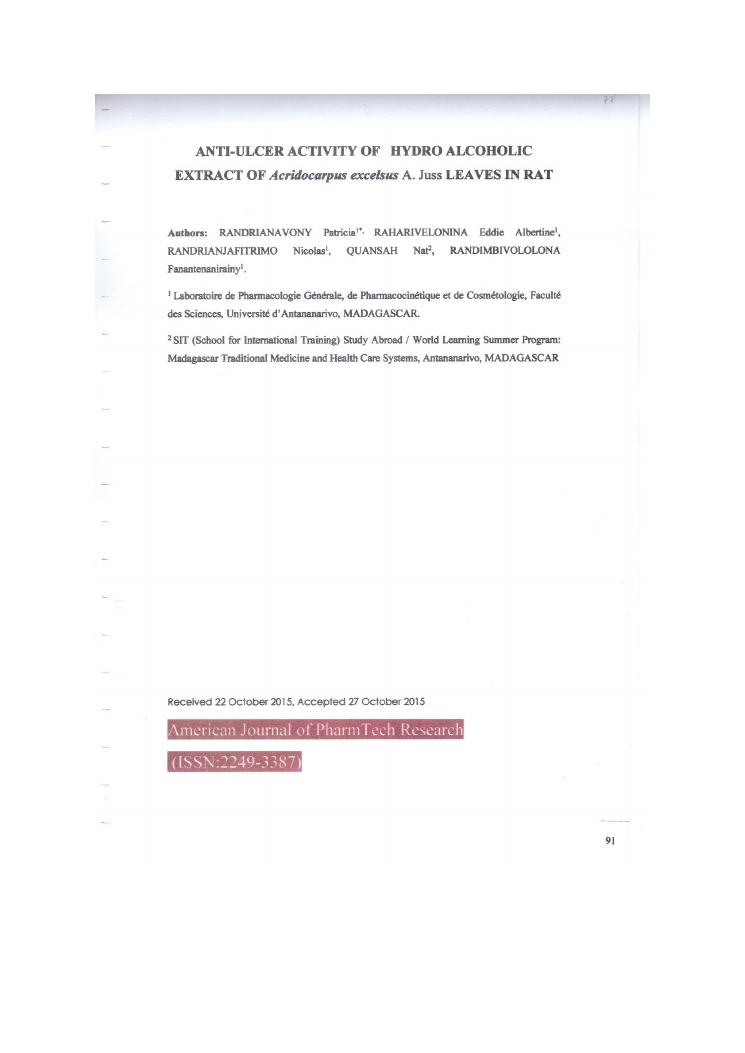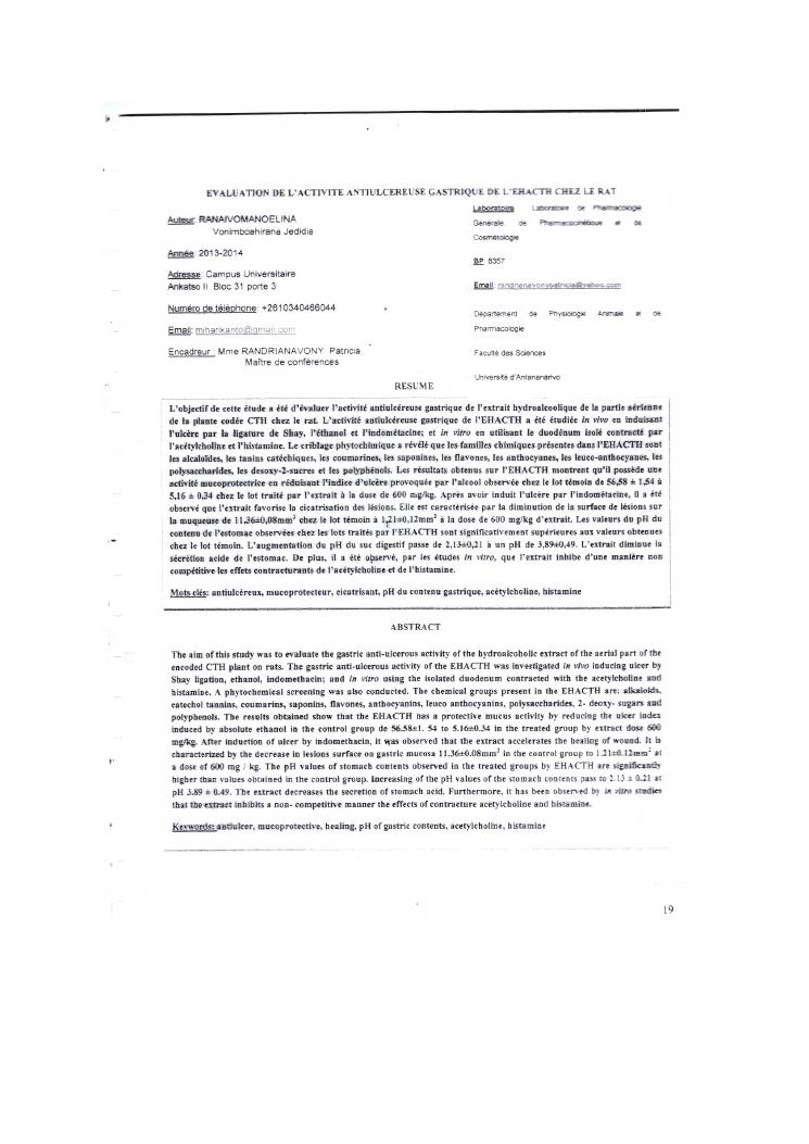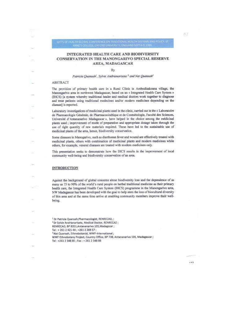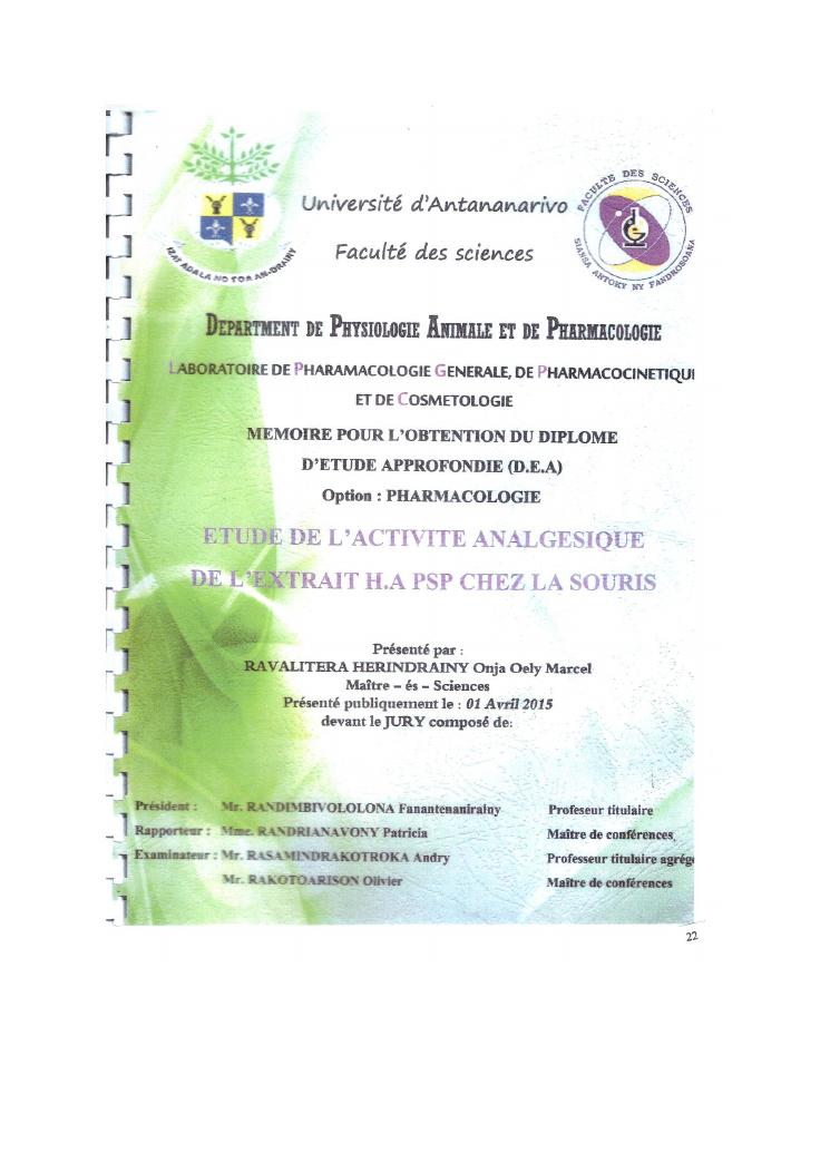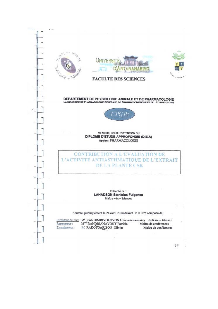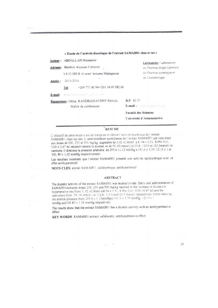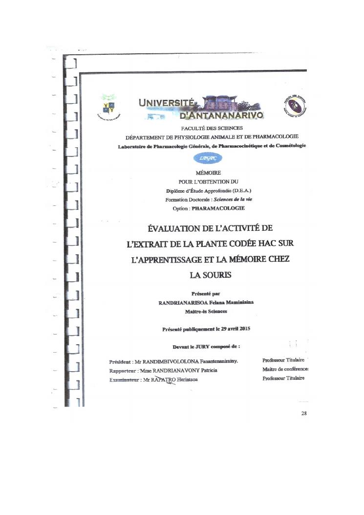 contribution de la pharmacologie a la valorisation et a la conservation des plantes medicinales (annexes)