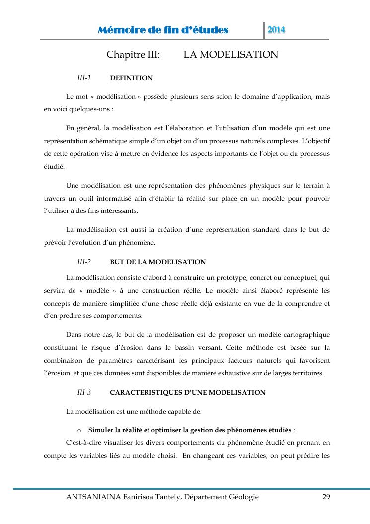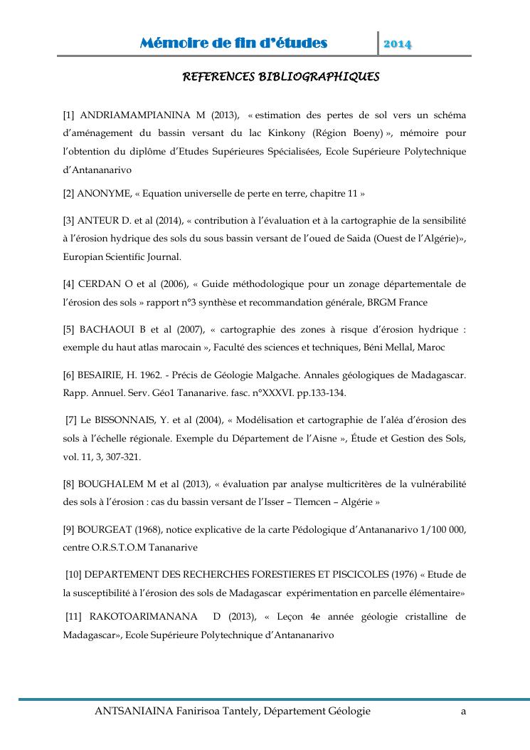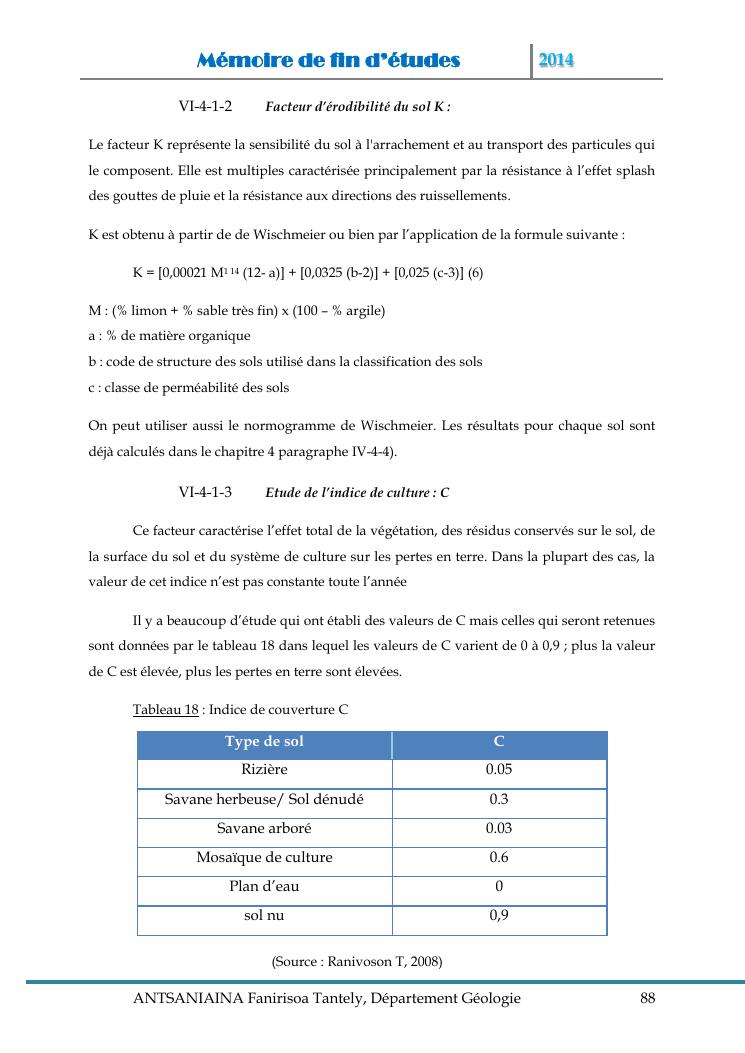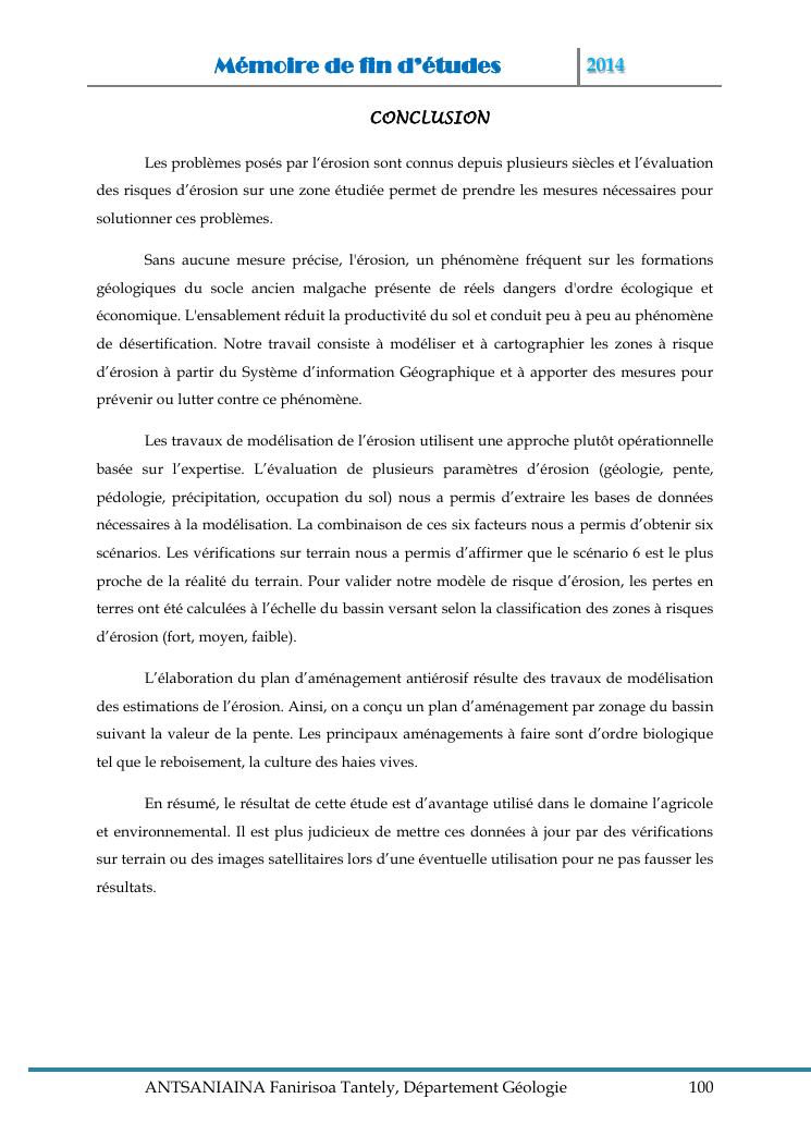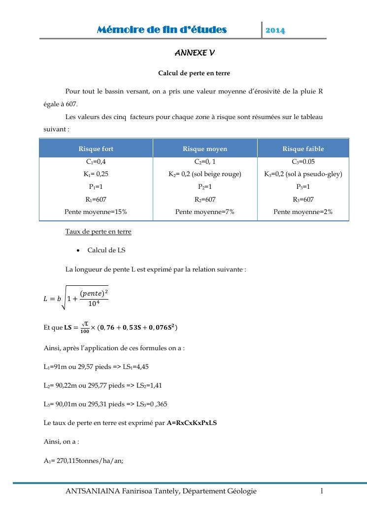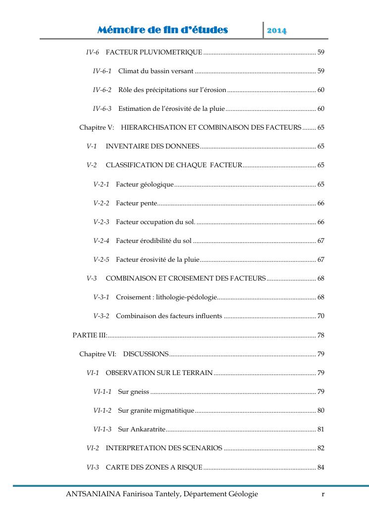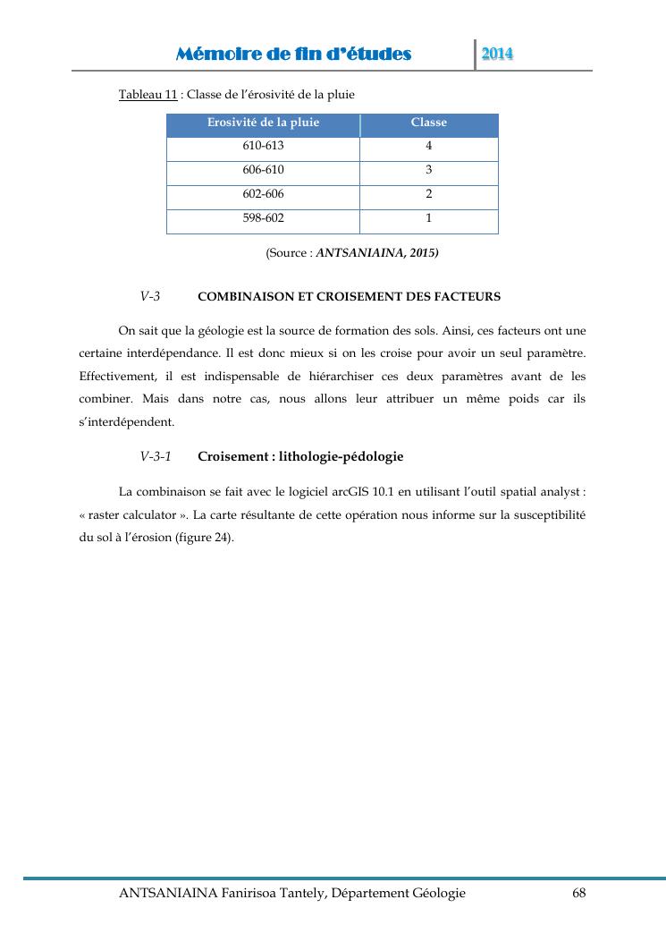 modelisation et cartographie des zones a risque d'erosion par combinaison des facteurs en jeux : cas du bassin versant de lohazozoro-andromba