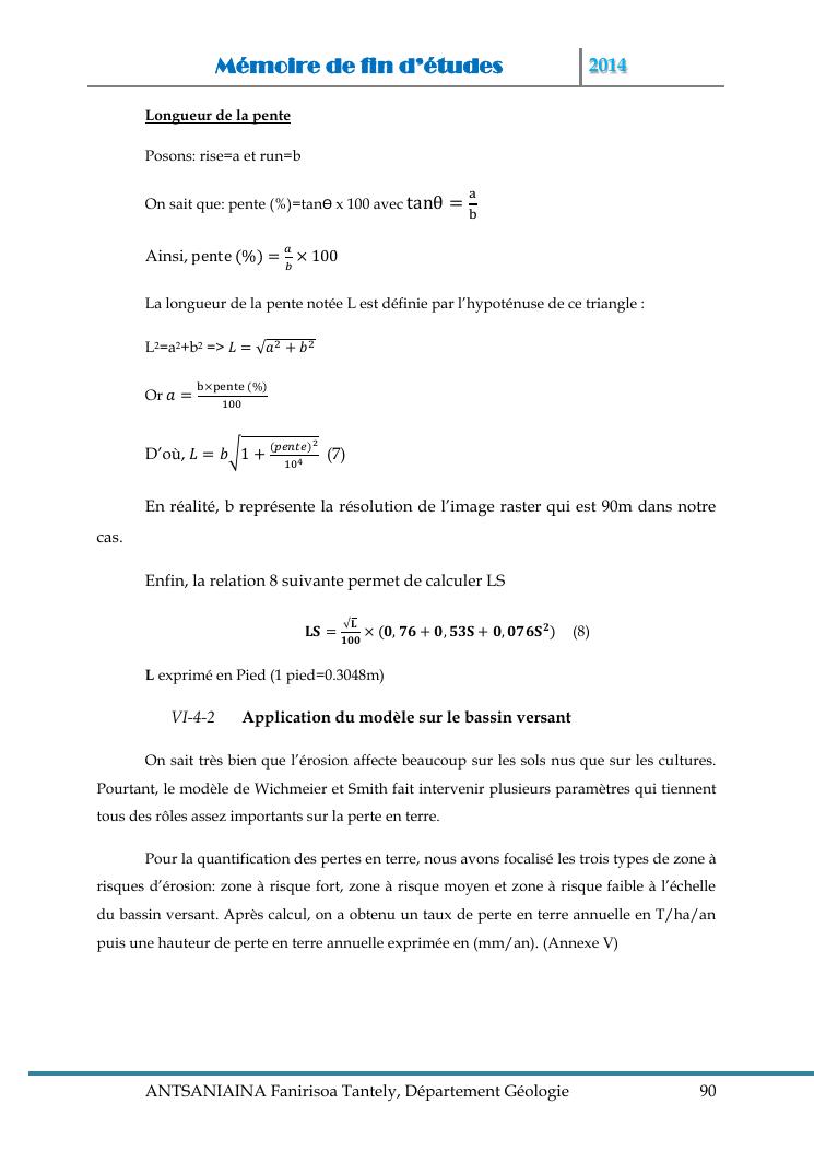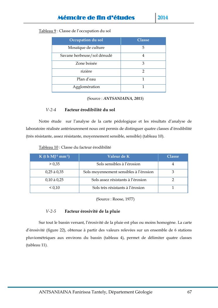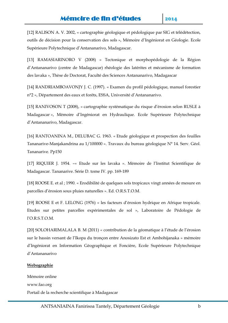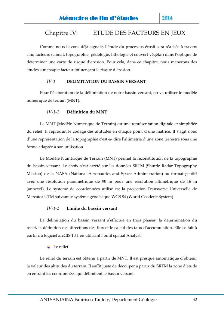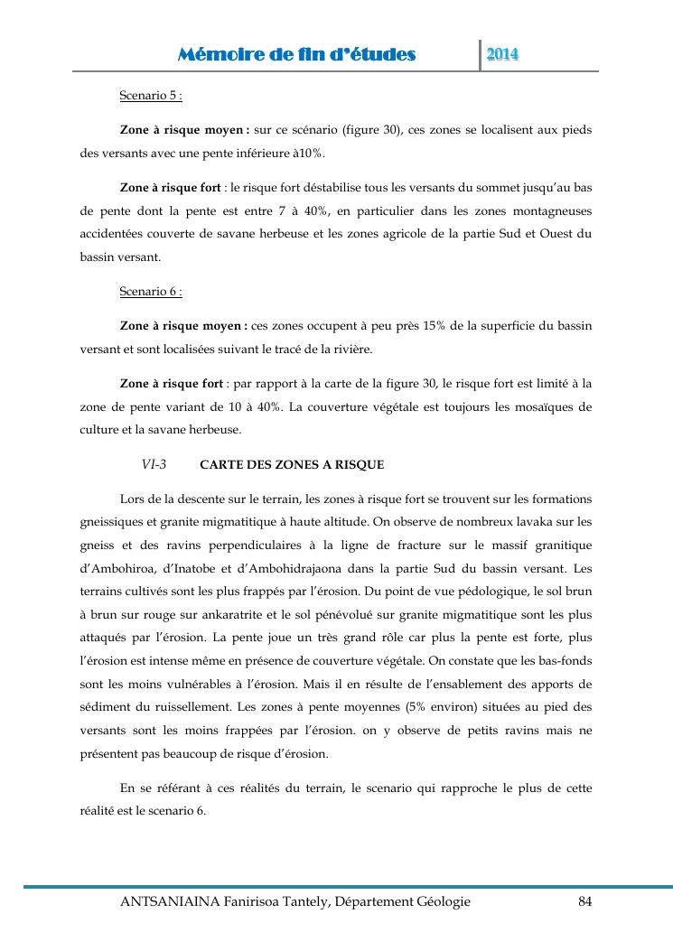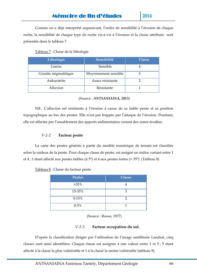 modelisation et cartographie des zones a risque d'erosion par combinaison des facteurs en jeux : cas du bassin versant de lohazozoro-andromba
