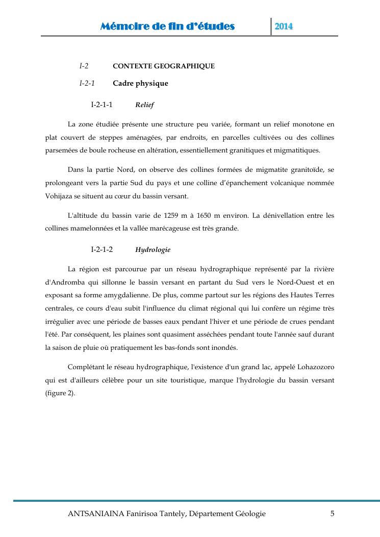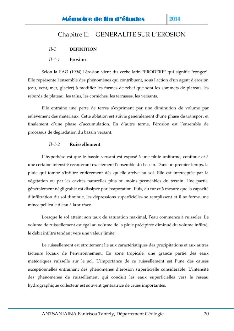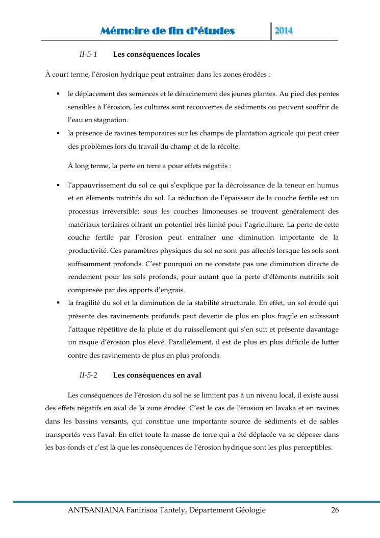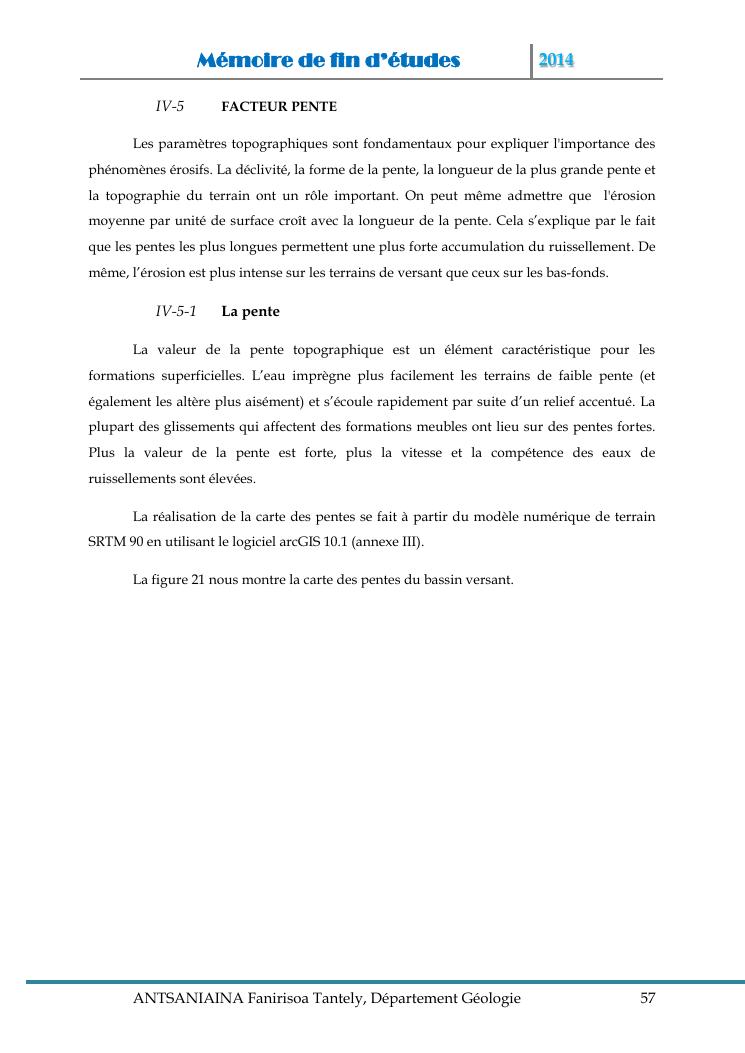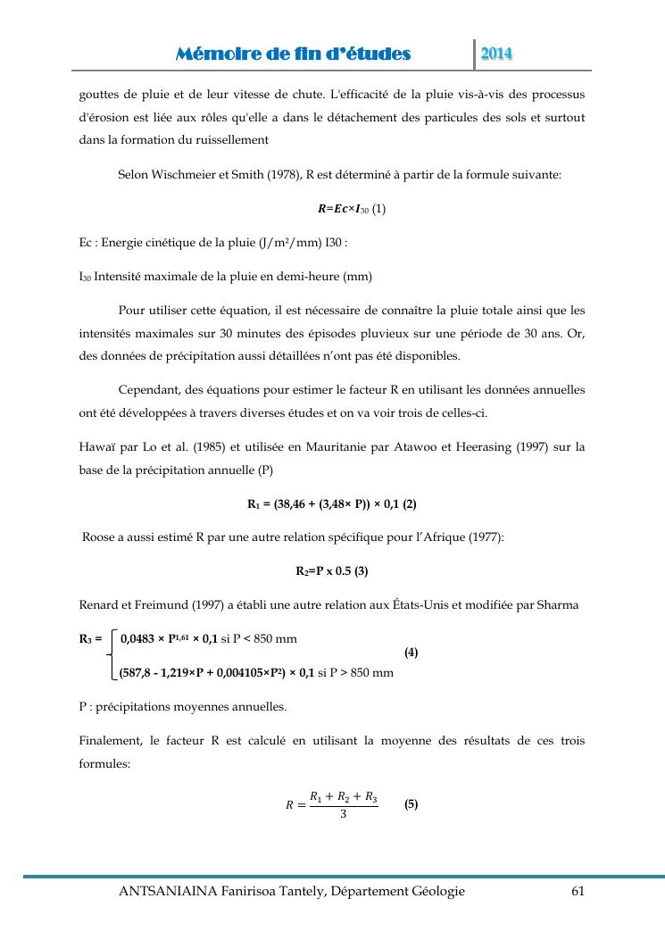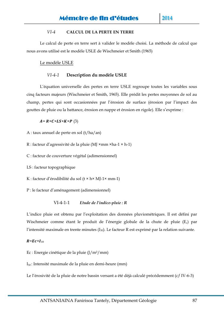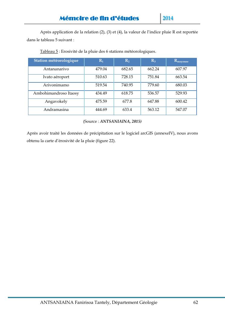 modelisation et cartographie des zones a risque d'erosion par combinaison des facteurs en jeux : cas du bassin versant de lohazozoro-andromba