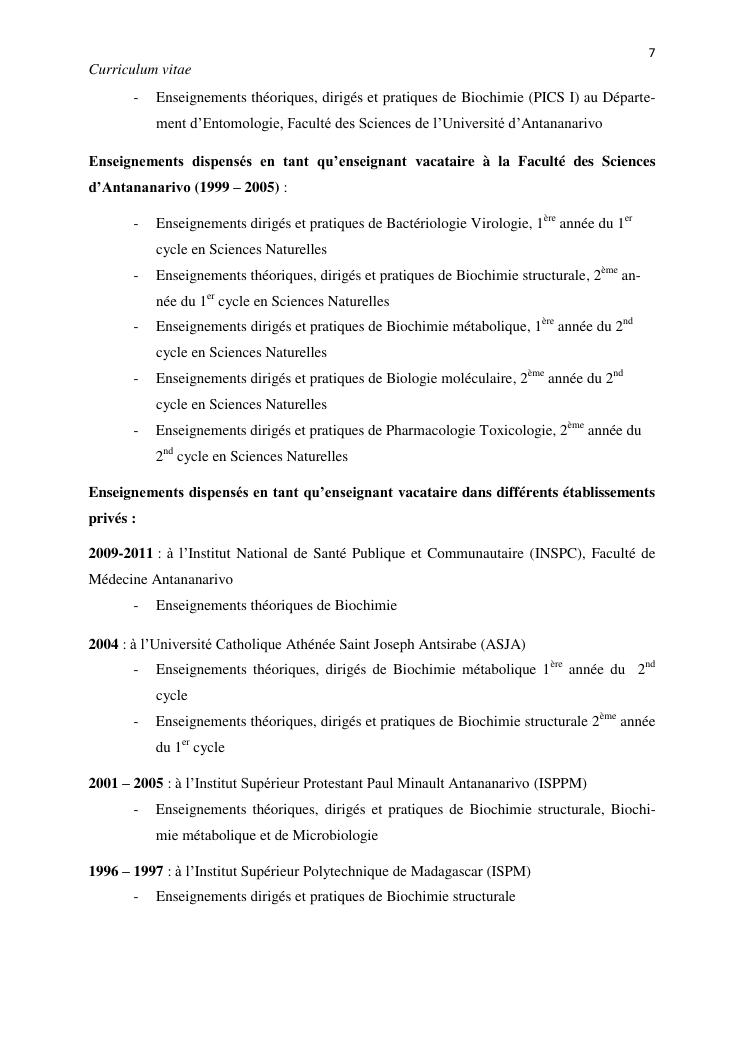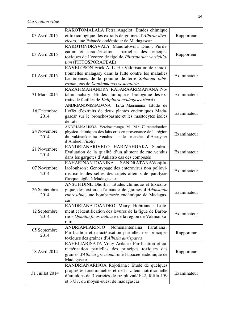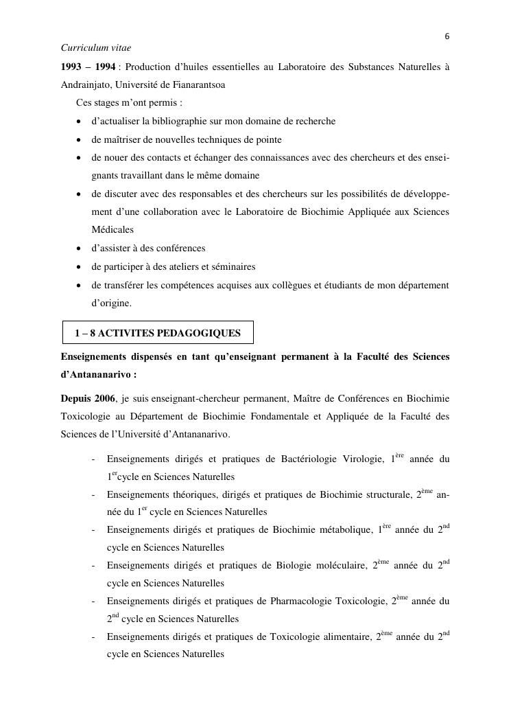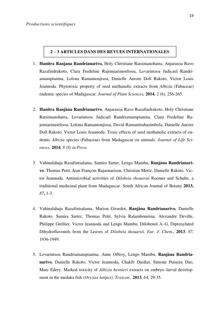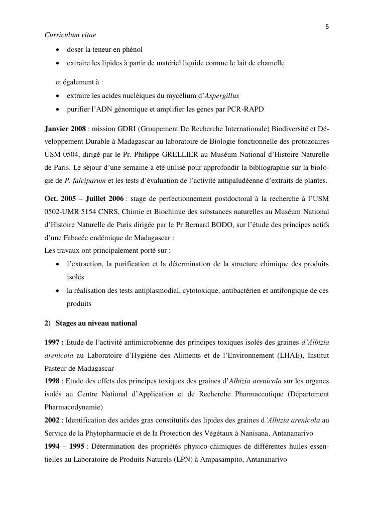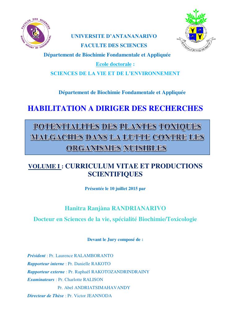 potentialites des plantes toxiques malgaches dans la lutte contre les organismes nuisibles. volume i : curriculum vitae et productions scientifiques