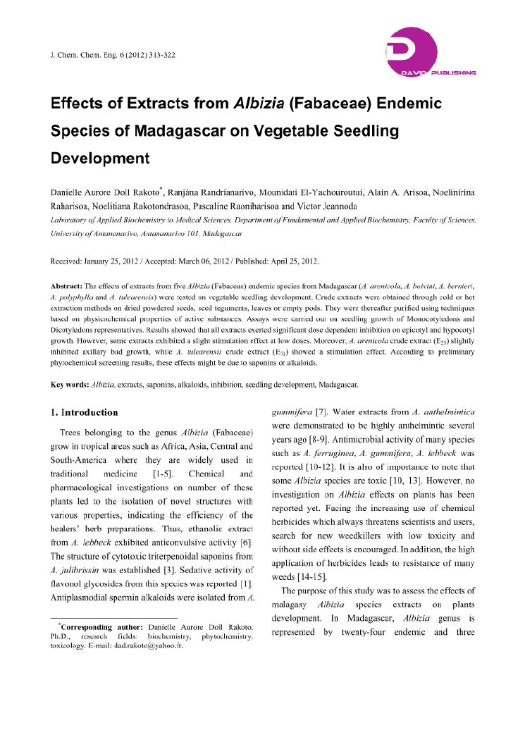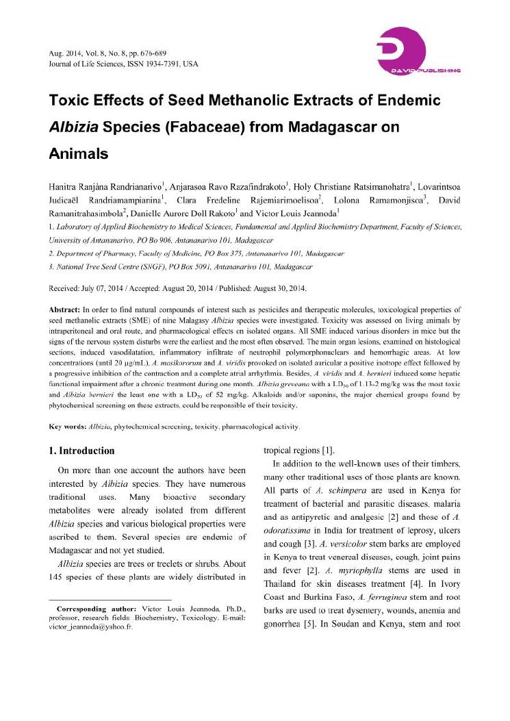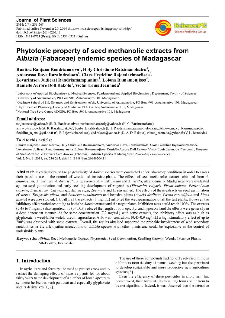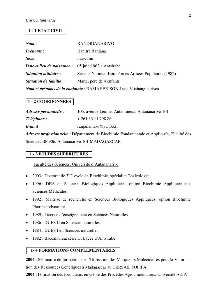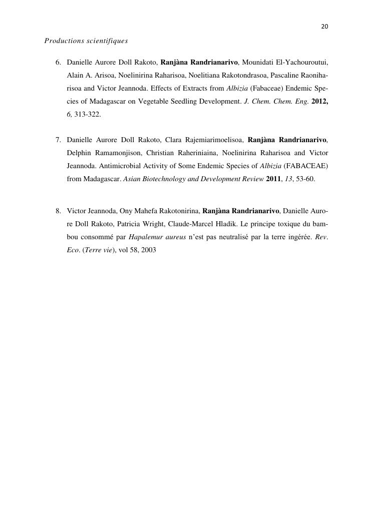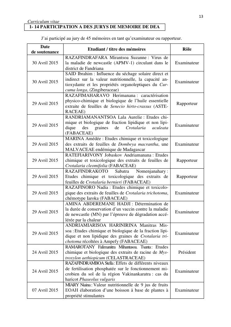 potentialites des plantes toxiques malgaches dans la lutte contre les organismes nuisibles. volume i : curriculum vitae et productions scientifiques