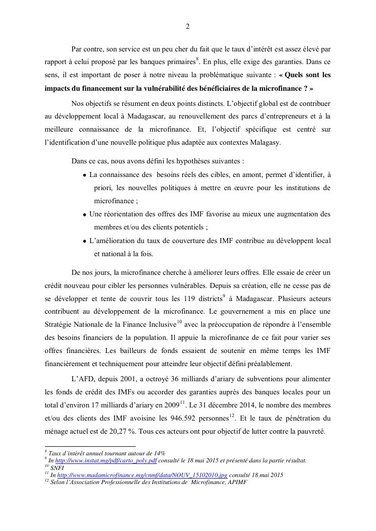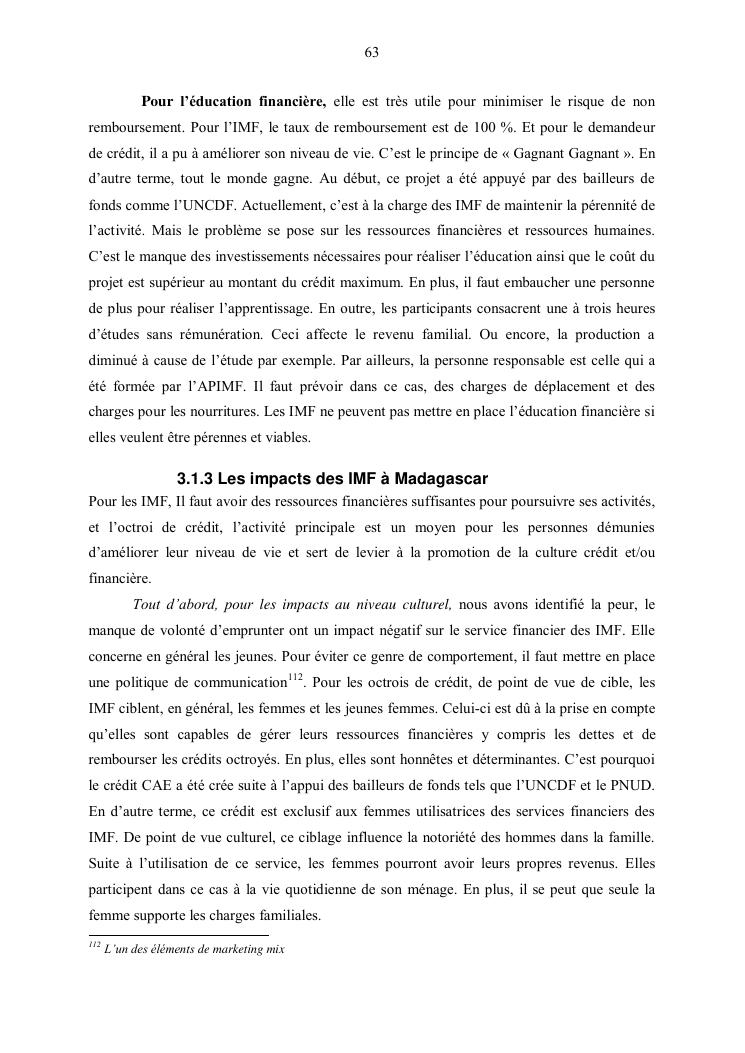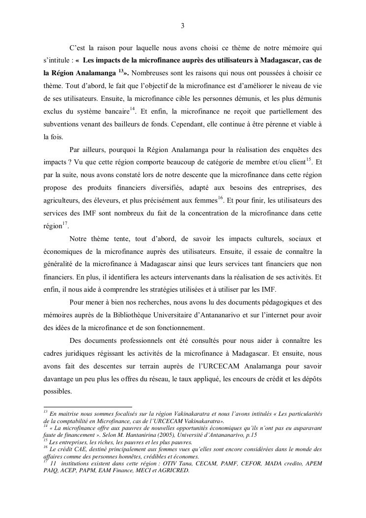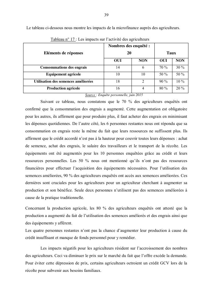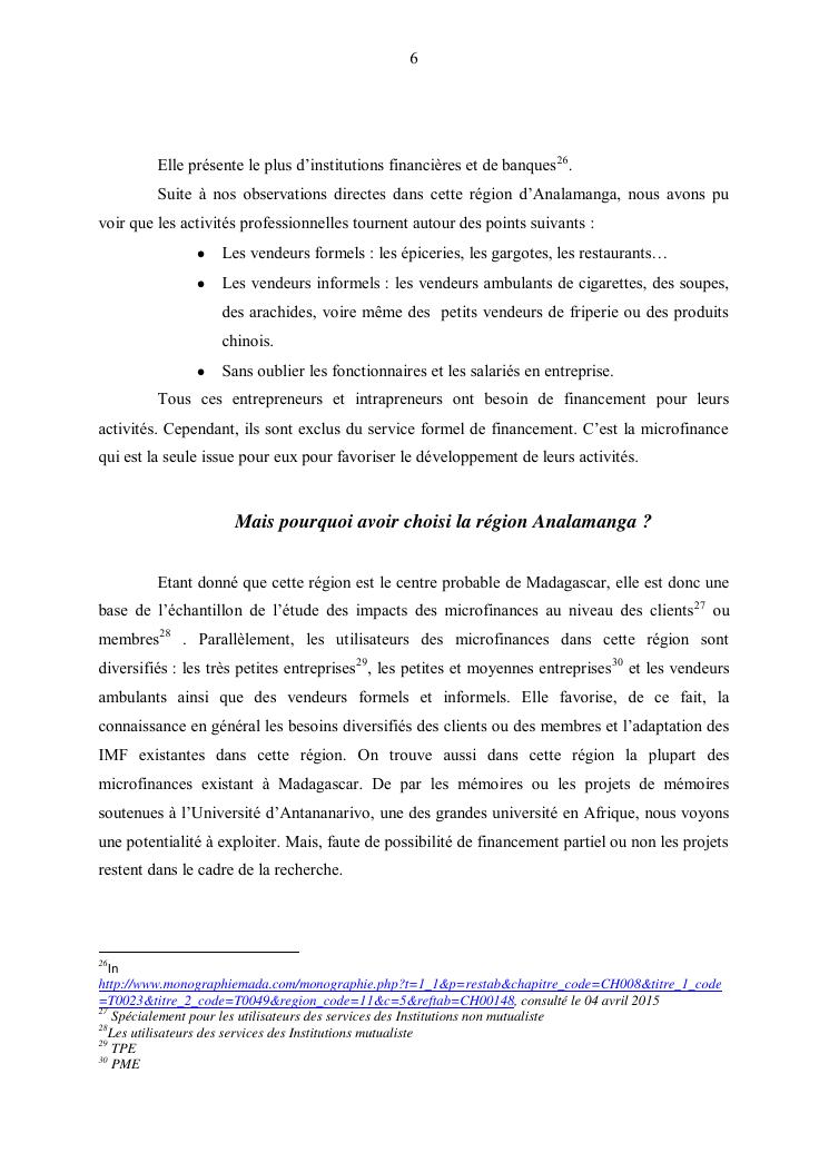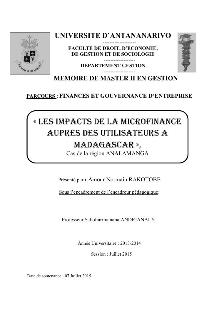 les impacts de la microfinance aupres des utilisateurs a madagascar : cas de la région analamanga