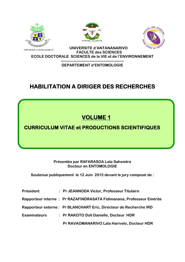 volume 1 : curriculum vitae et productions scientifiques