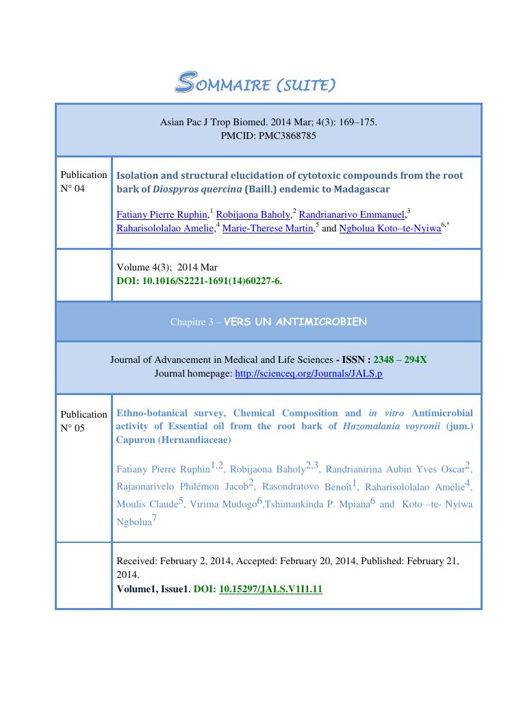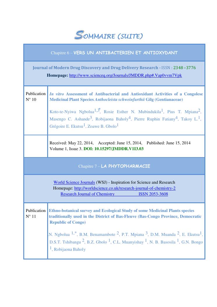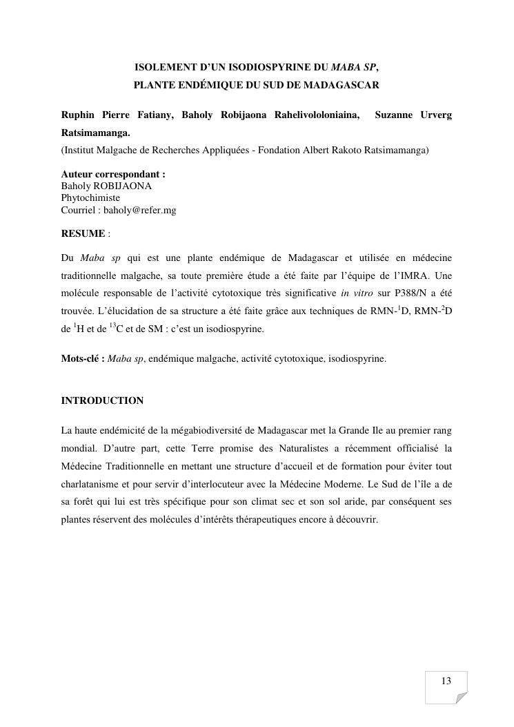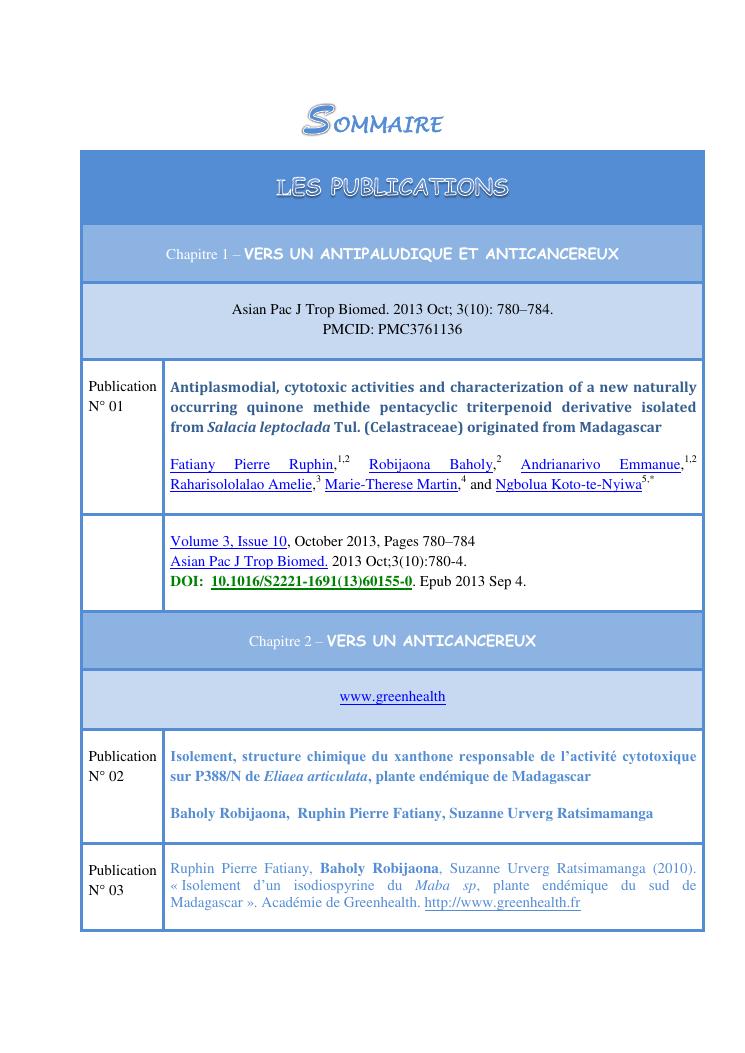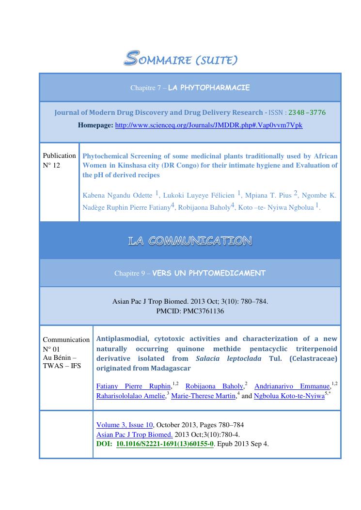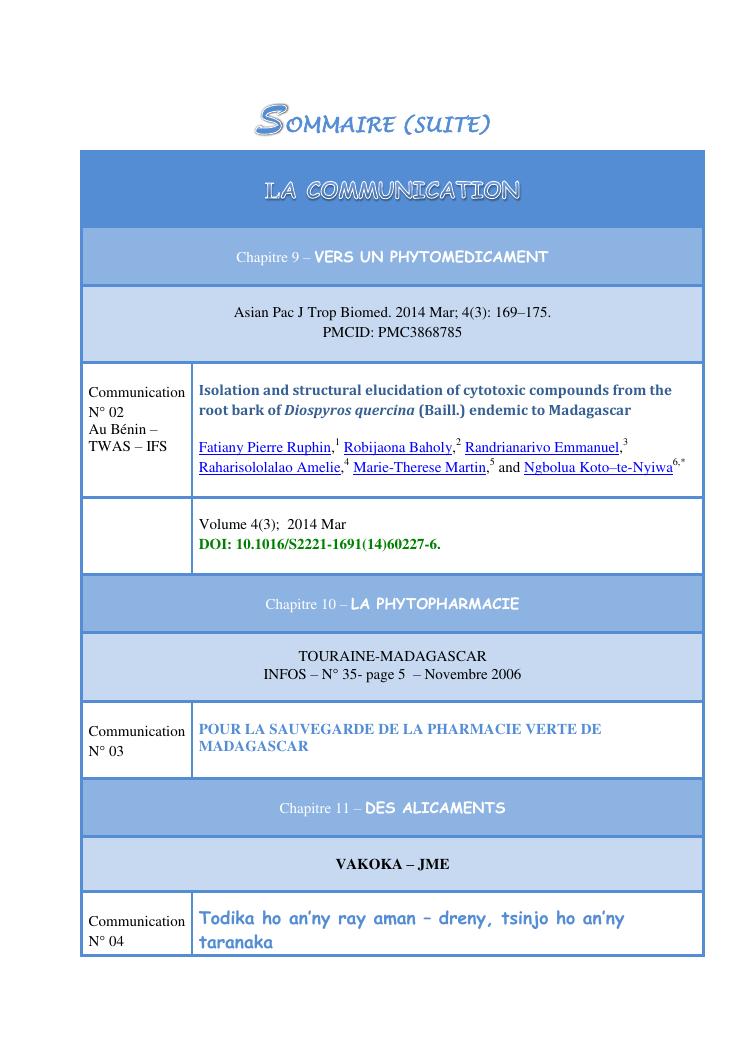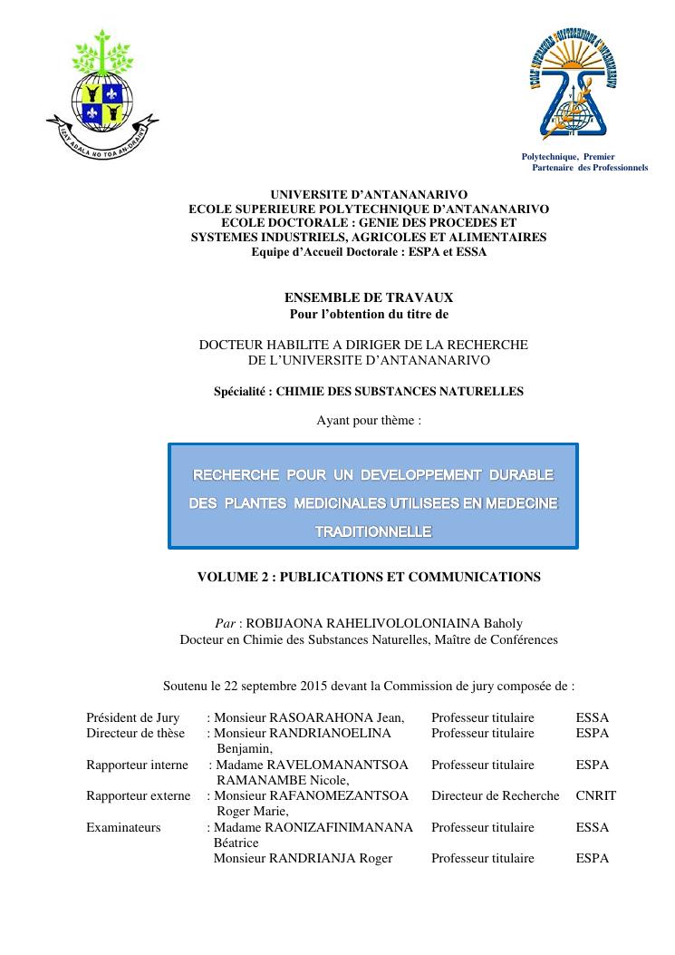 recherche pour le developpement durables de plantes medicinales utilisees en medecine traditionnelle. volume 2 : publications et communications