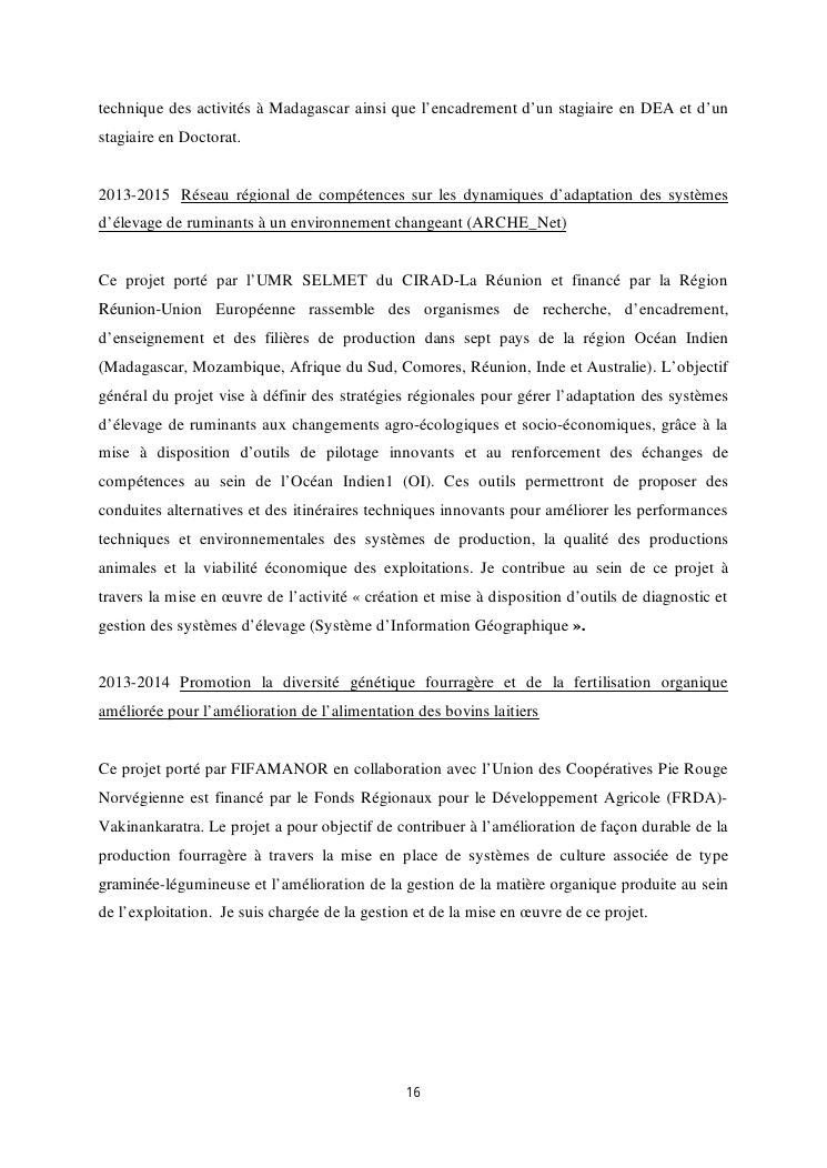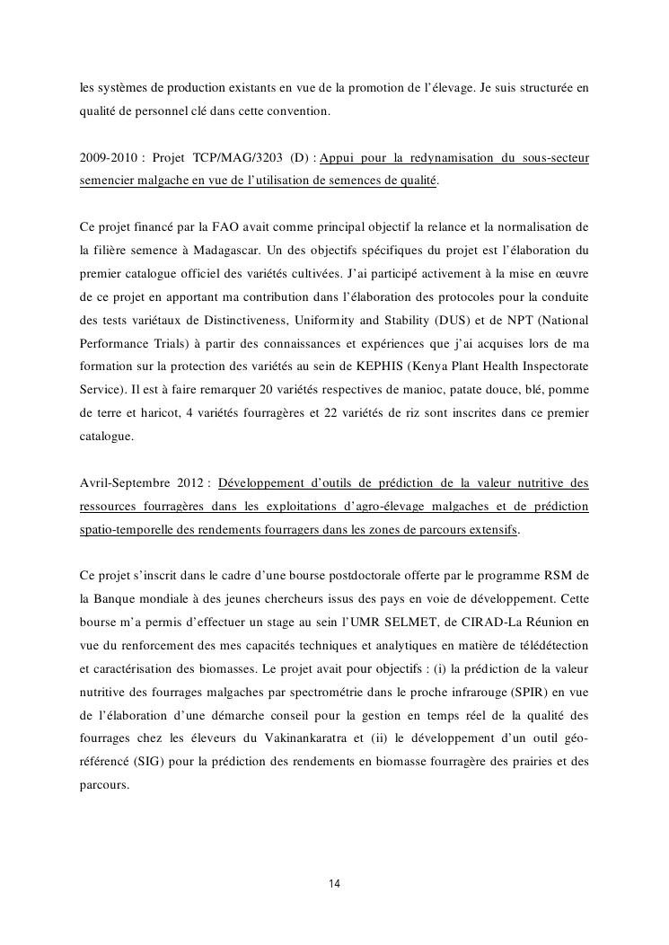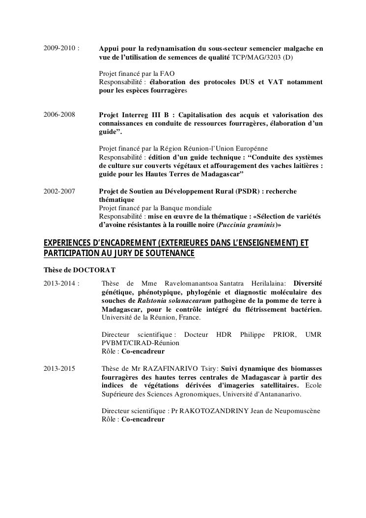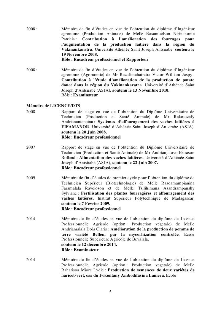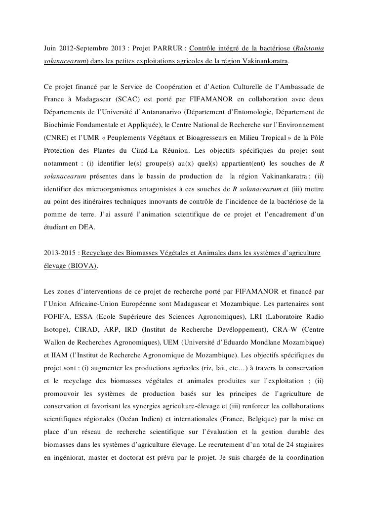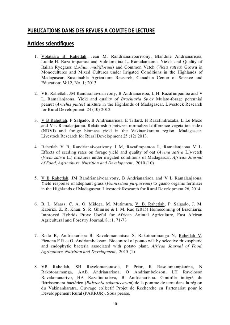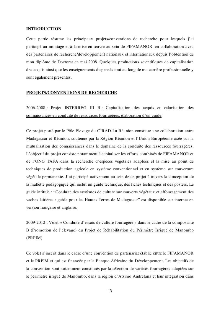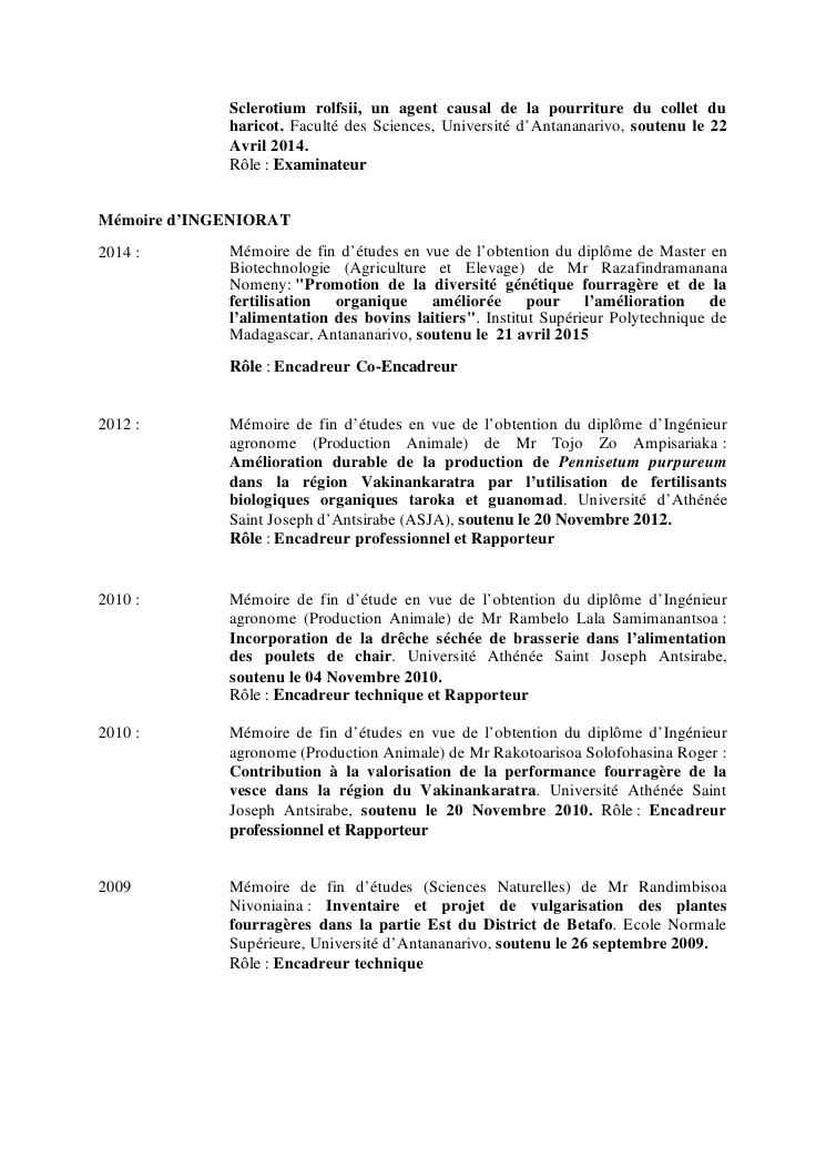 durabilité des systèmes mixtes d'agriculture et d'élevage à travers la valorisation des ressources fourragères et l'amélioration de la gestion agronomique : curriculum vitae et productions scientifiques