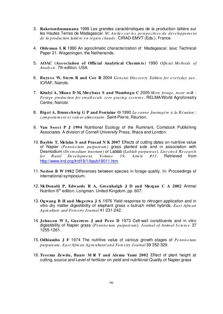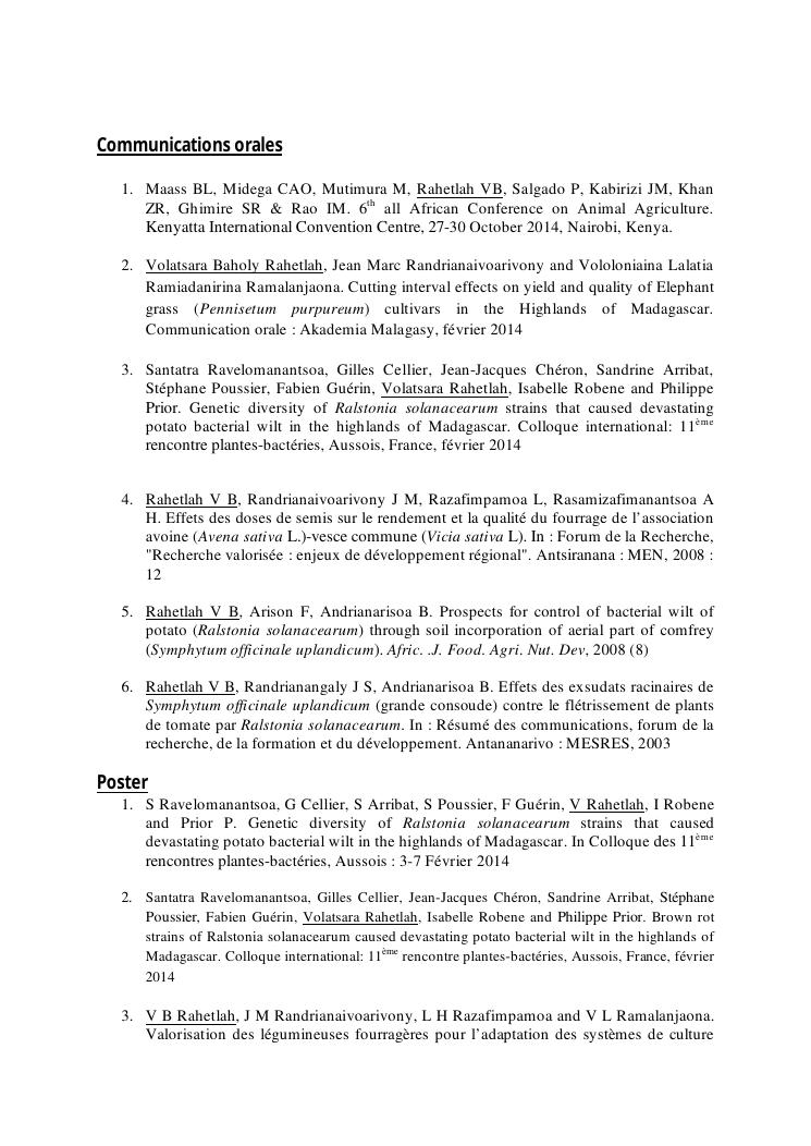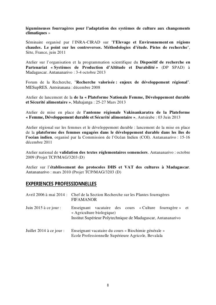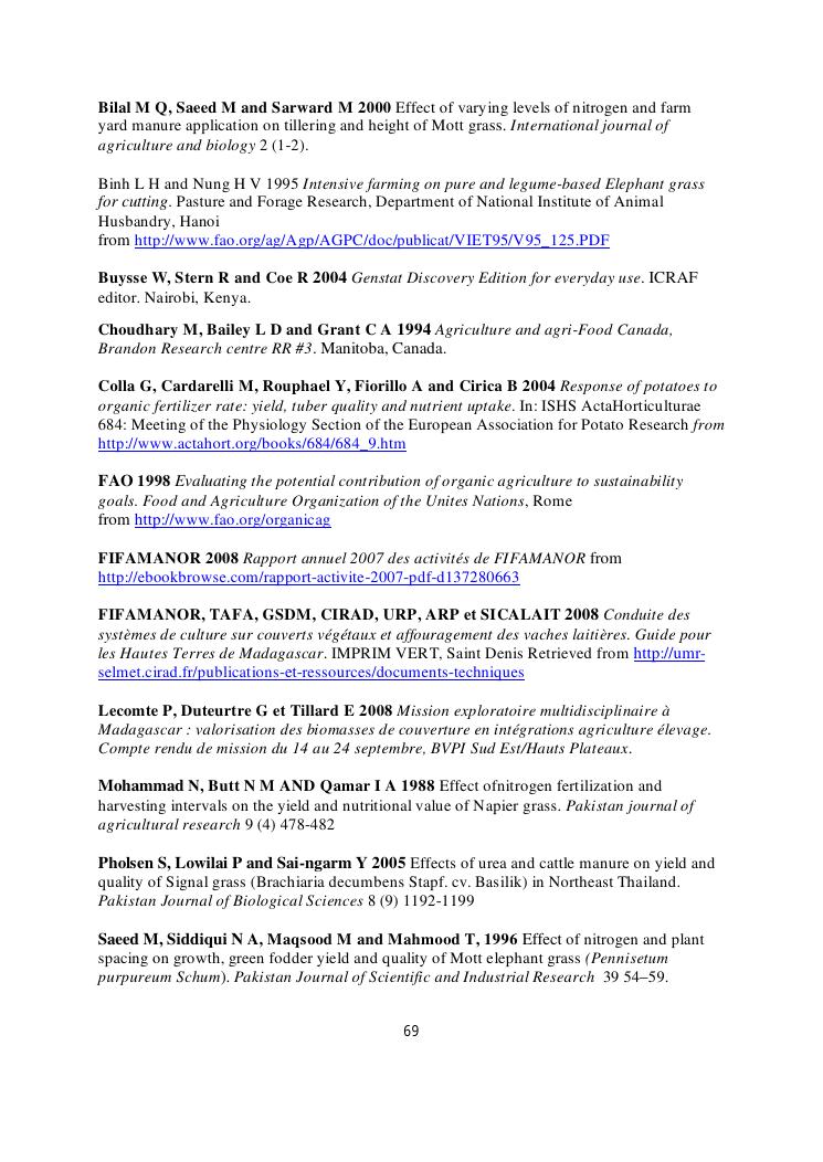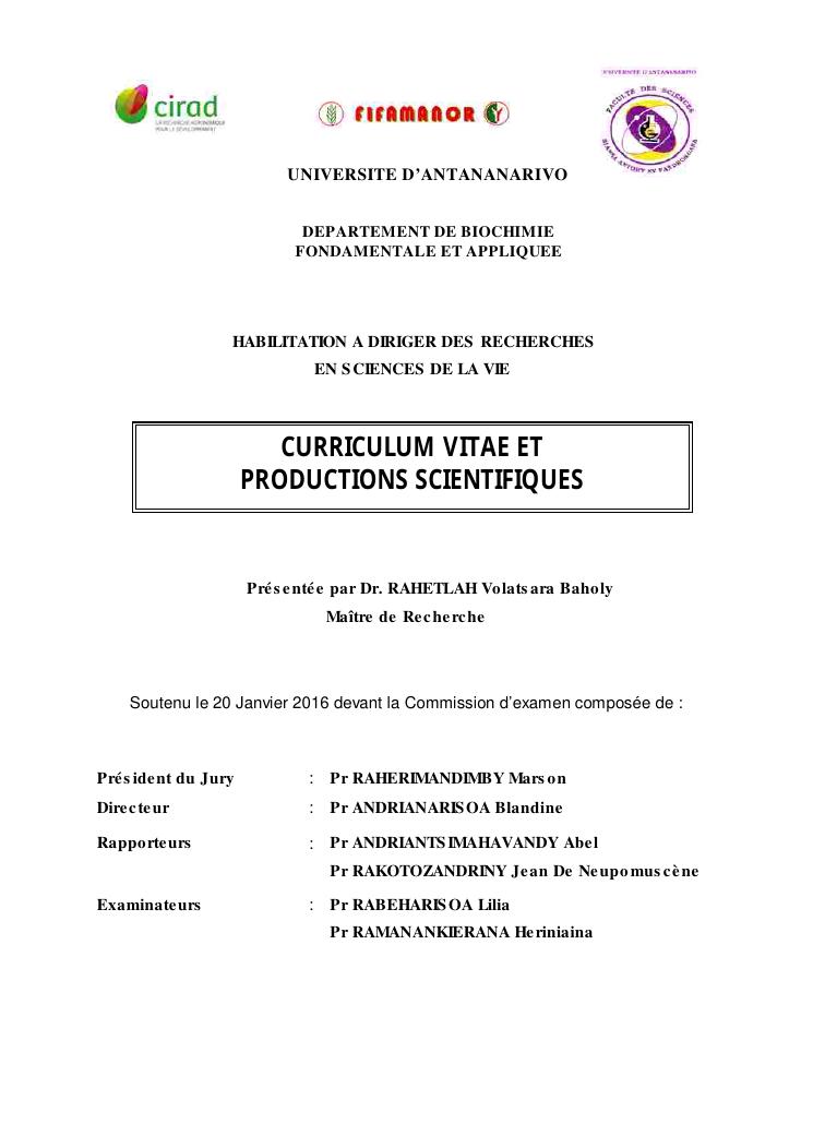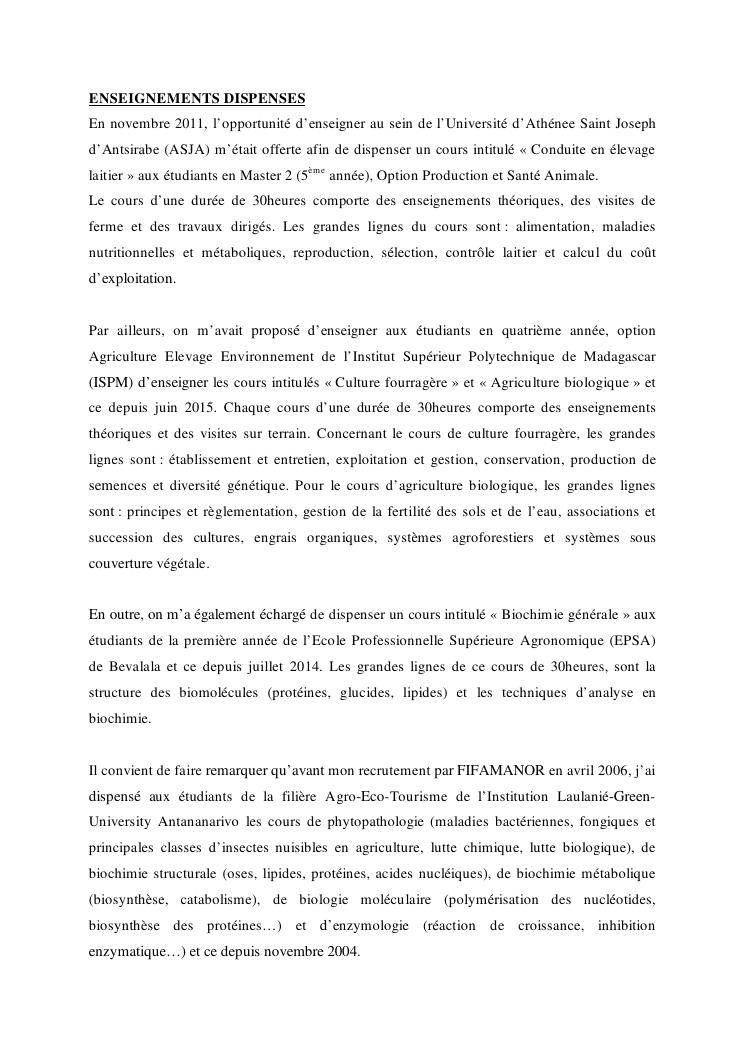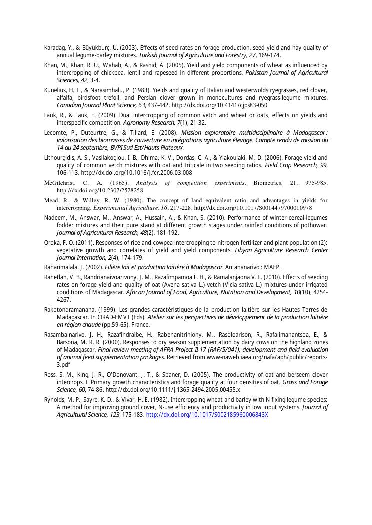 durabilité des systèmes mixtes d'agriculture et d'élevage à travers la valorisation des ressources fourragères et l'amélioration de la gestion agronomique : curriculum vitae et productions scientifiques