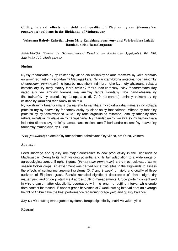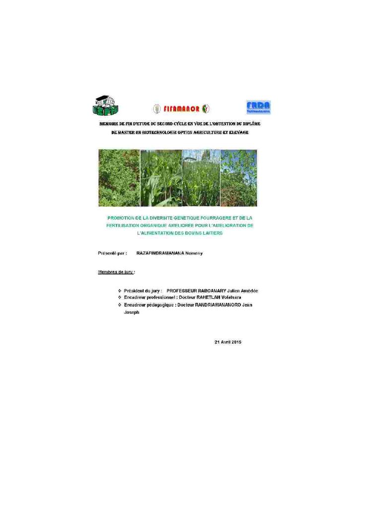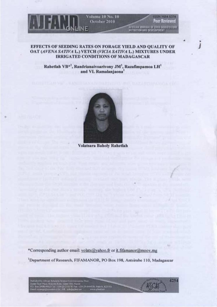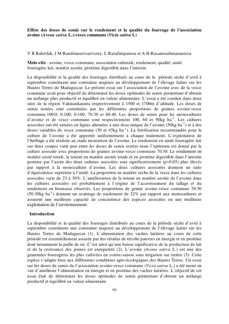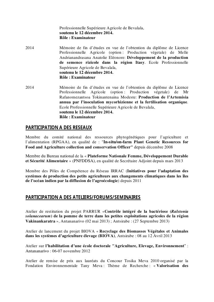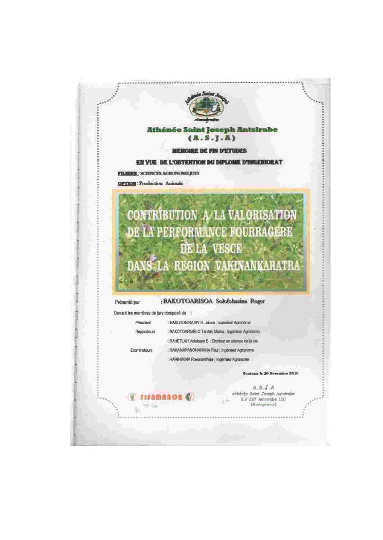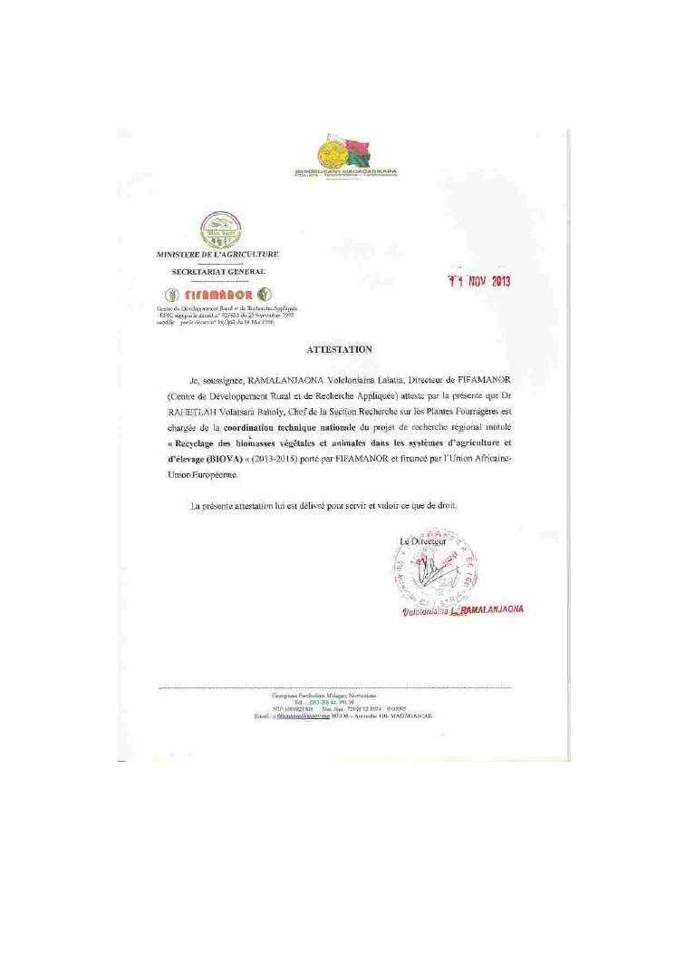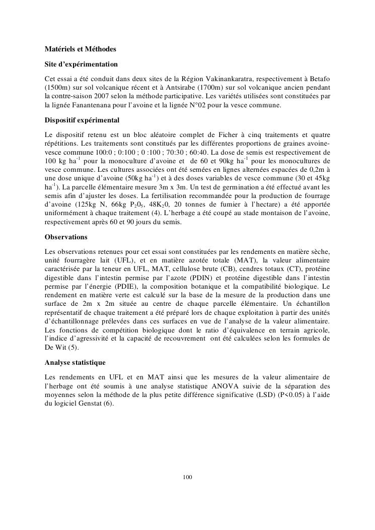 durabilité des systèmes mixtes d'agriculture et d'élevage à travers la valorisation des ressources fourragères et l'amélioration de la gestion agronomique : curriculum vitae et productions scientifiques