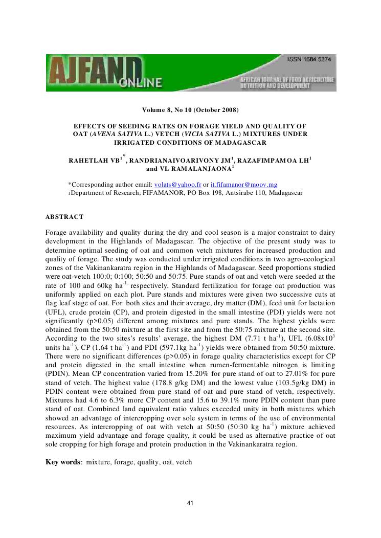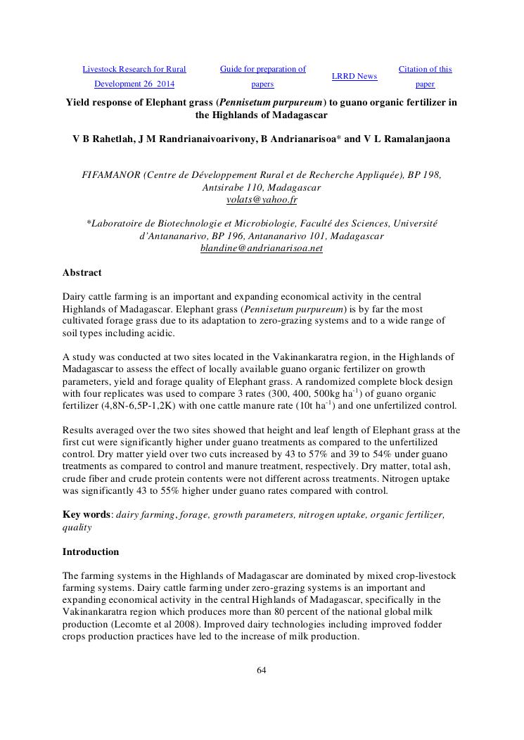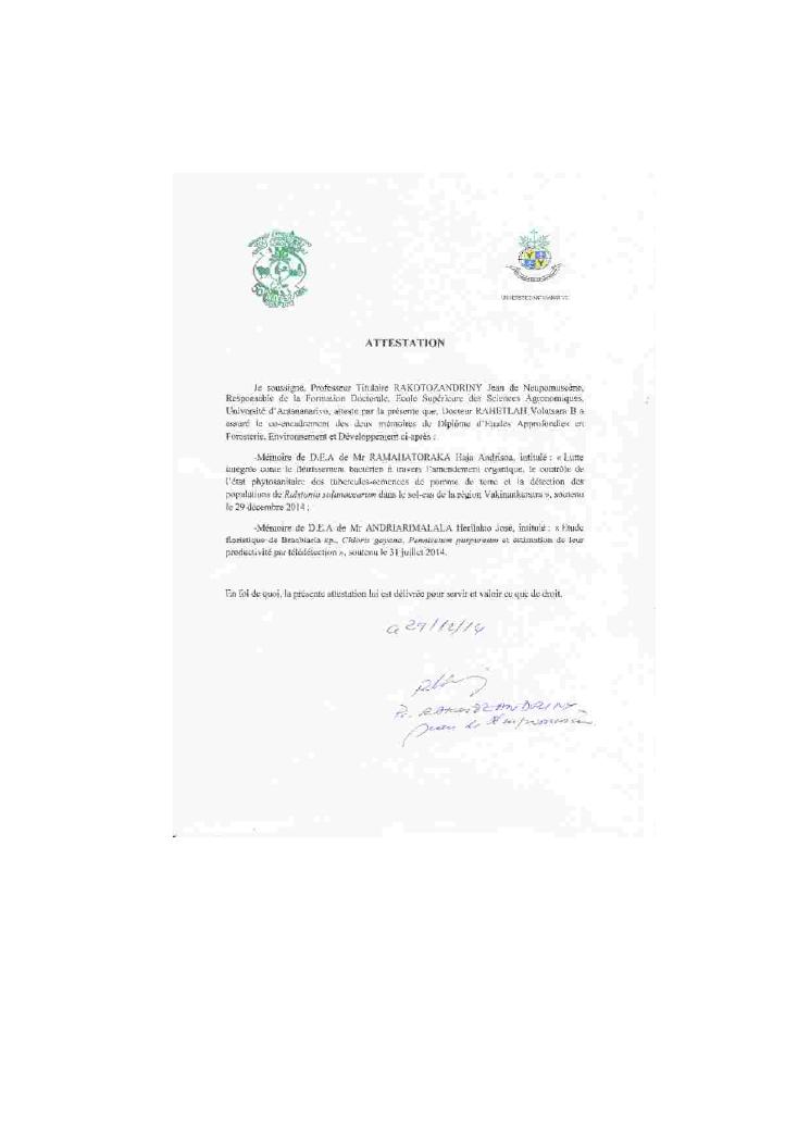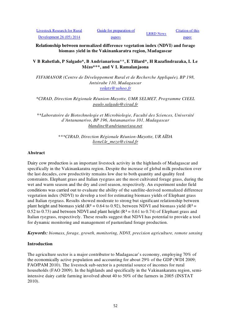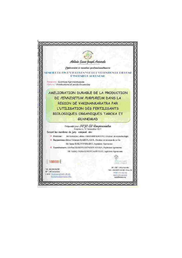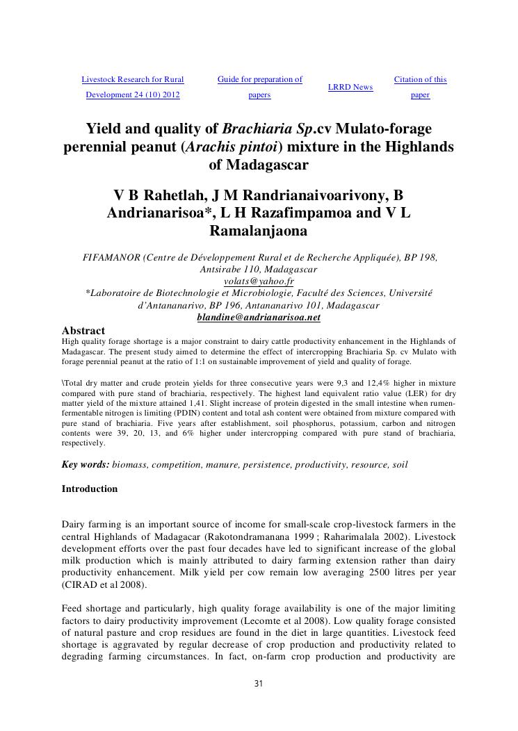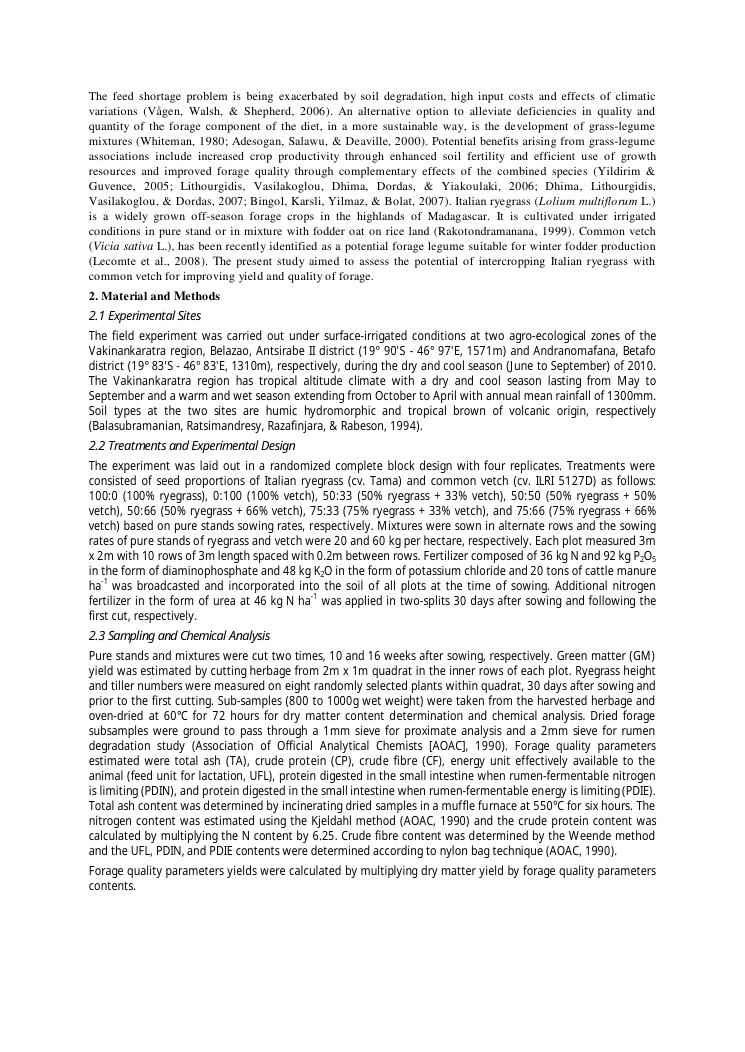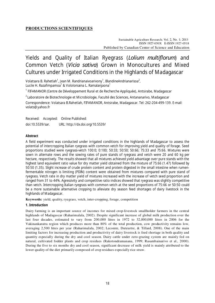 durabilité des systèmes mixtes d'agriculture et d'élevage à travers la valorisation des ressources fourragères et l'amélioration de la gestion agronomique : curriculum vitae et productions scientifiques