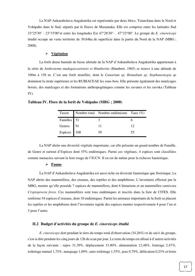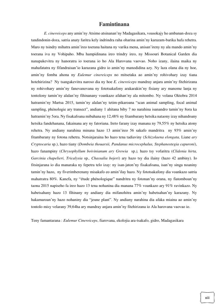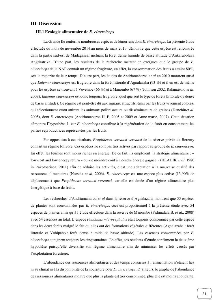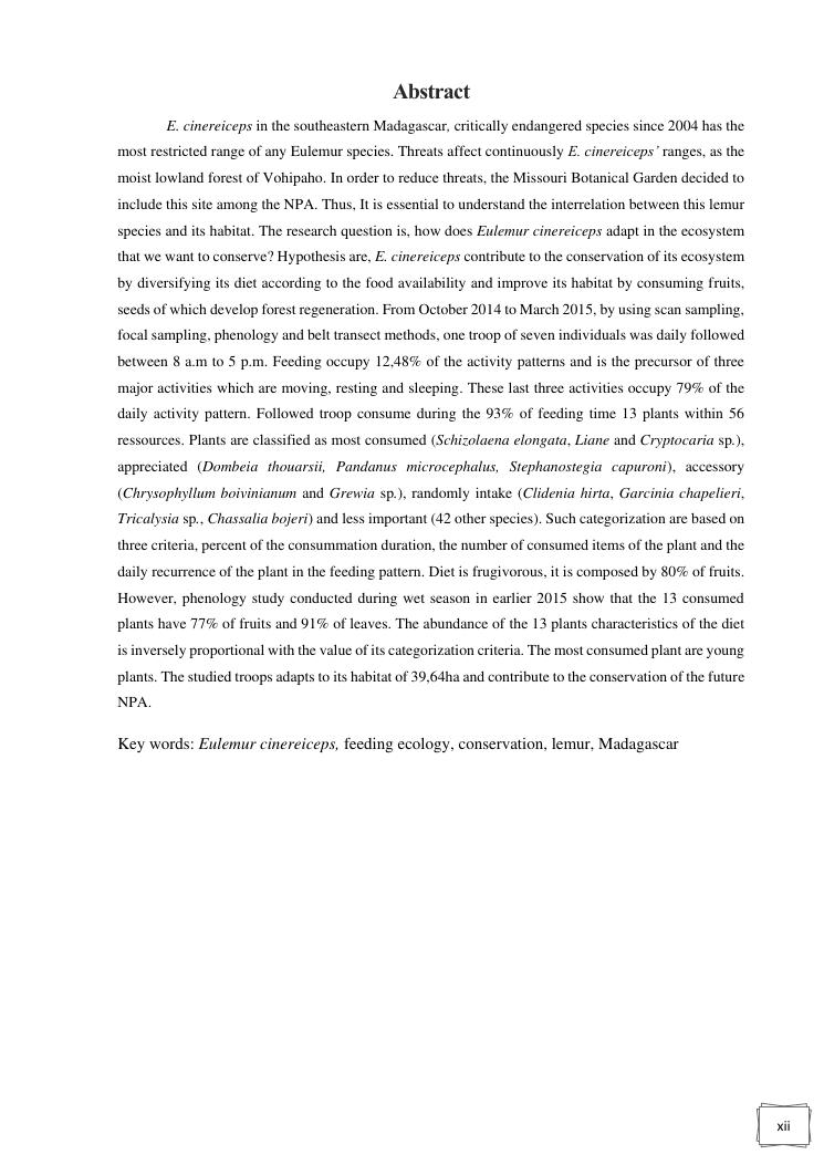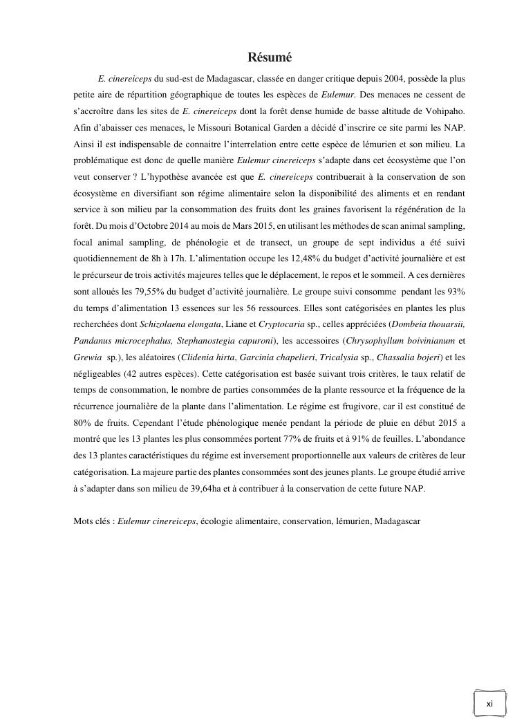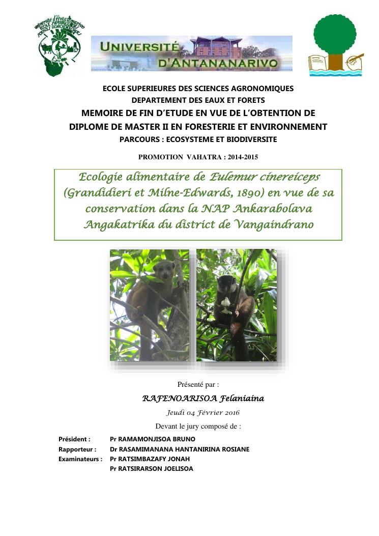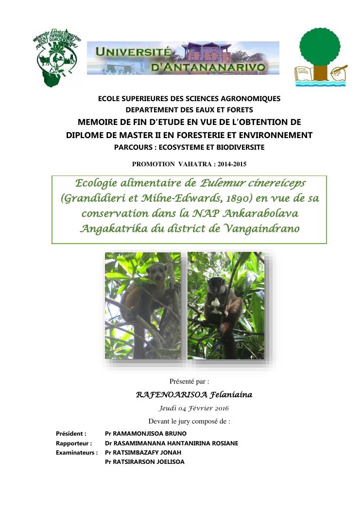 ecologie alimentaire de eulemur cinereiceps (grandidieri et milne-edwards, 1890) en vue de sa conservation dans la nap ankarabolava angakatrika du district de vangaindrano