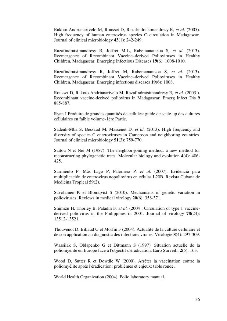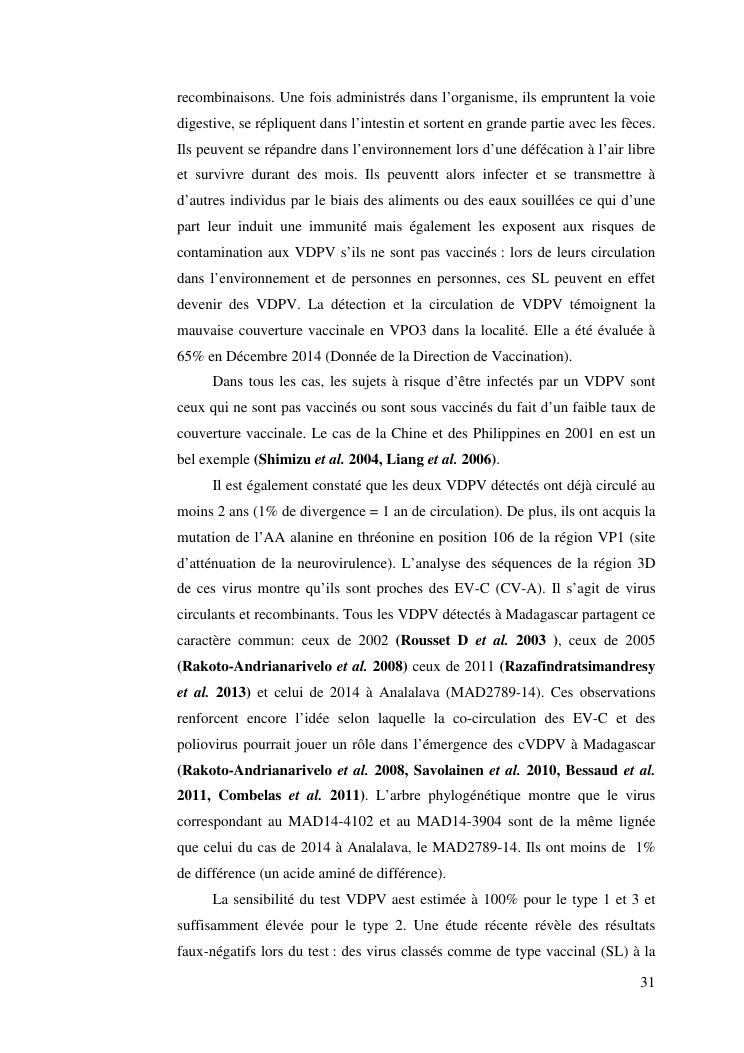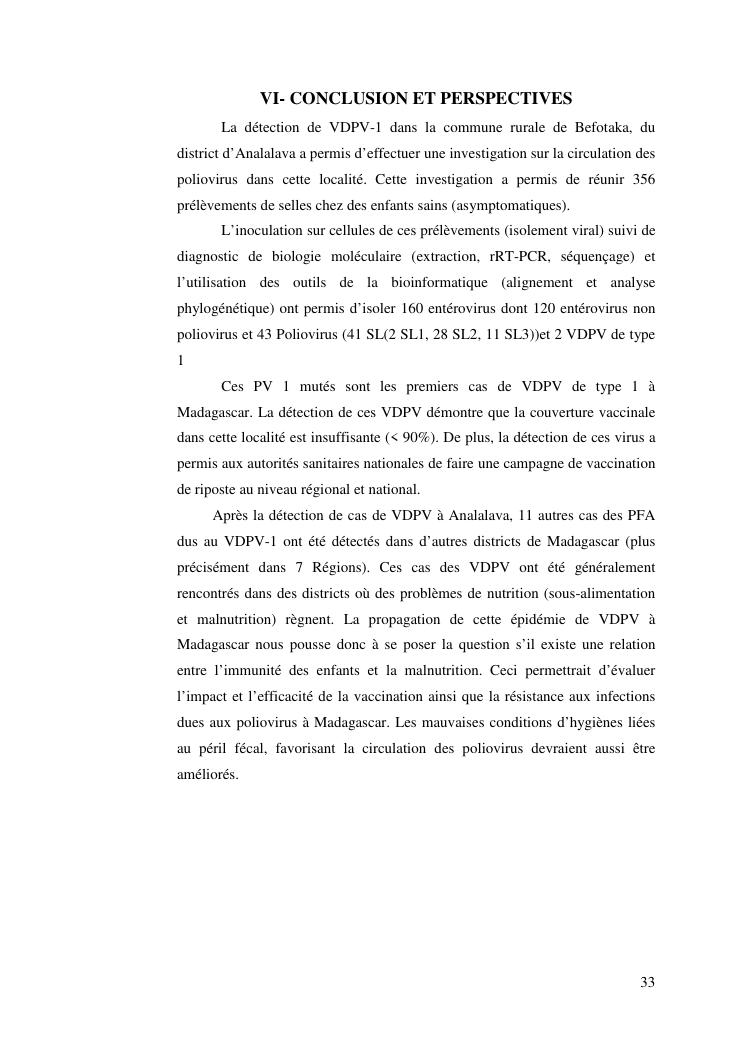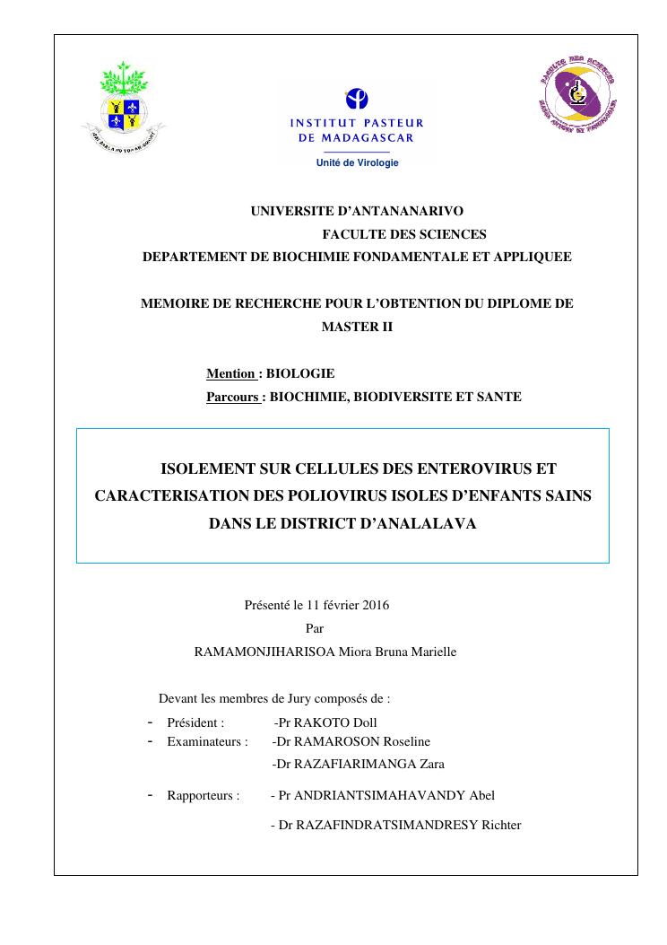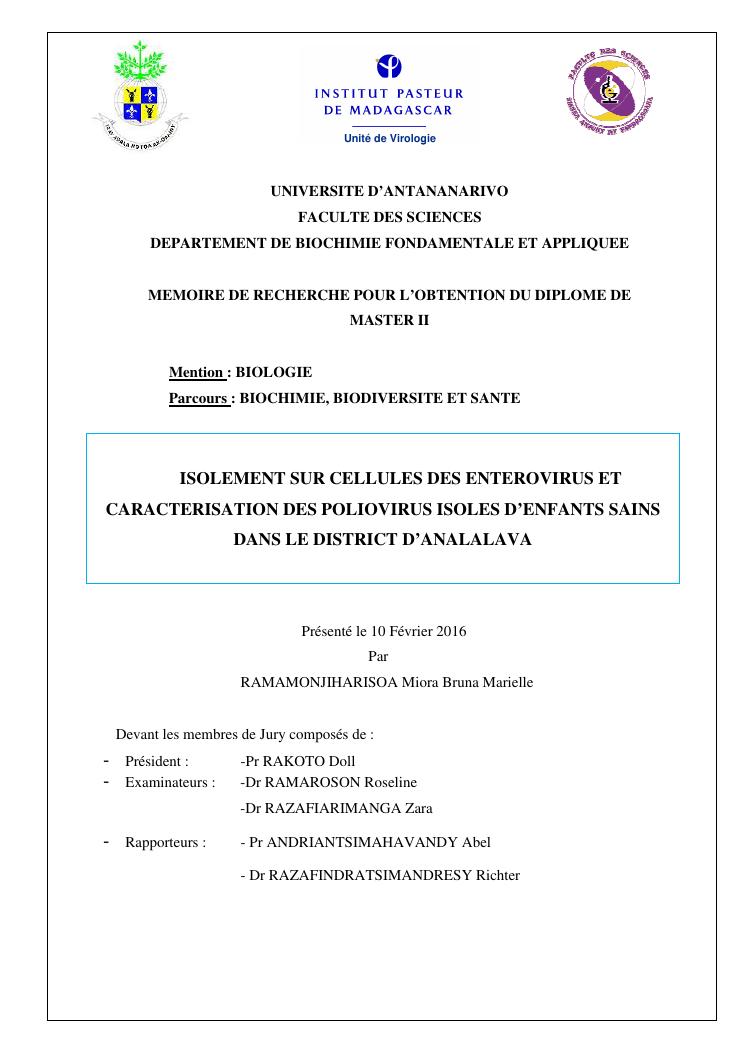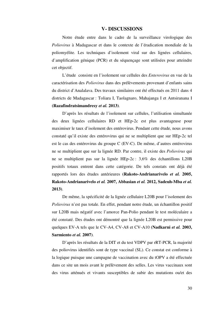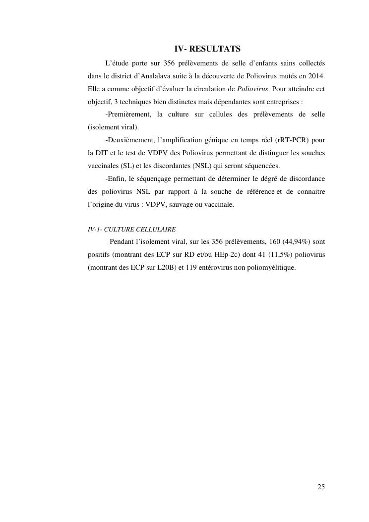 isolement sur cellules des enterovirus et caracterisation des poliovirus isoles d'enfants sains dans le district d'analalava
