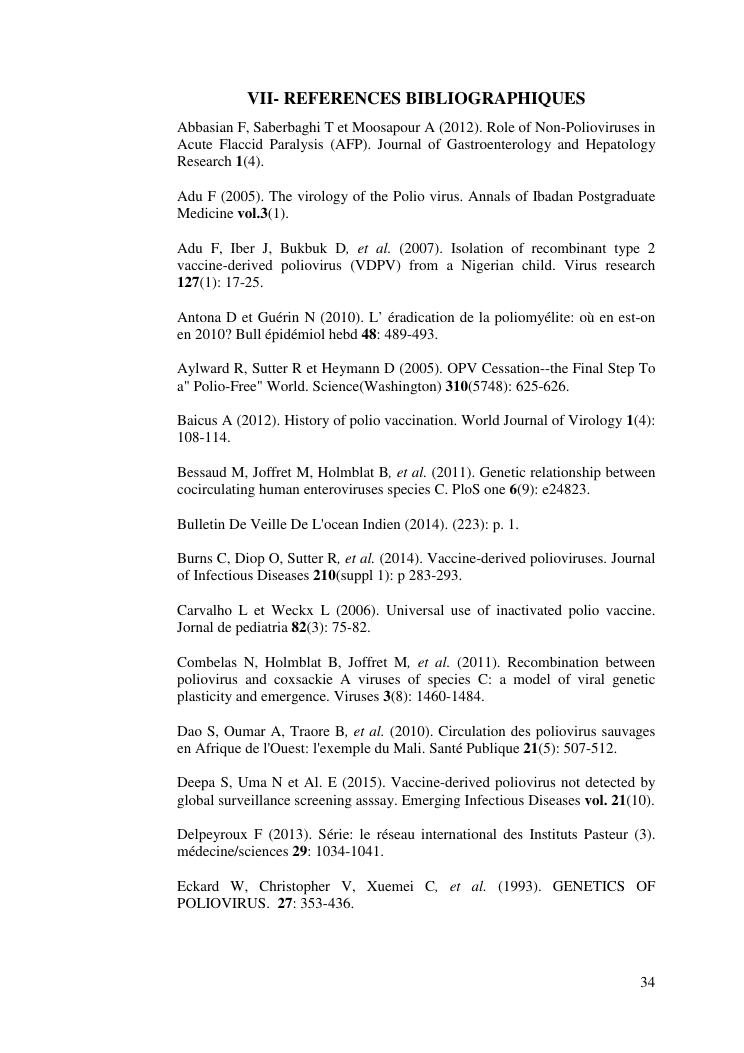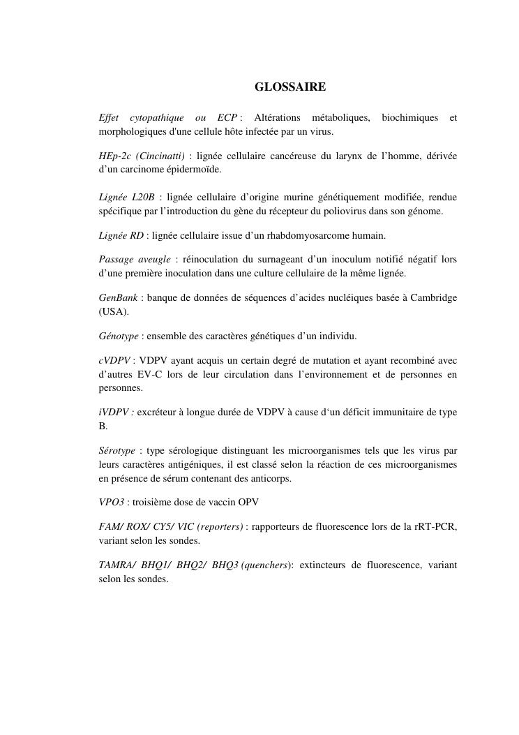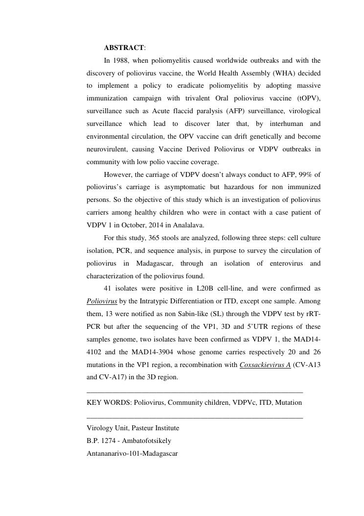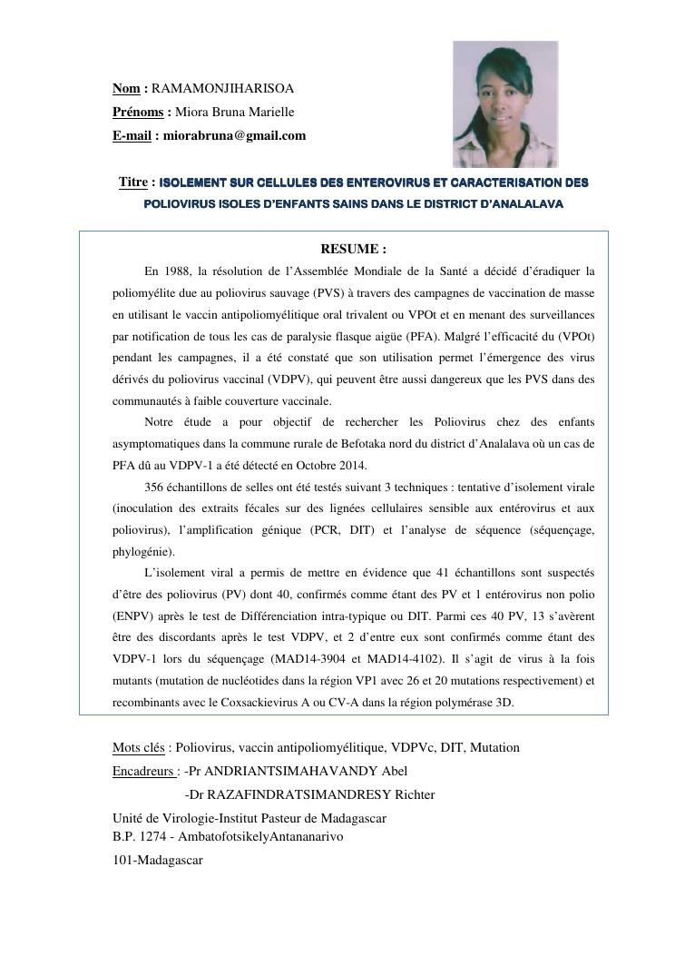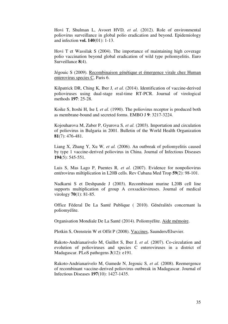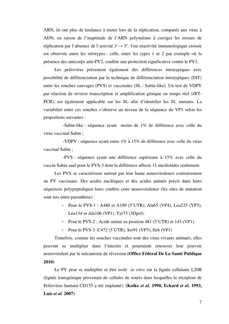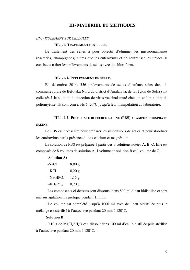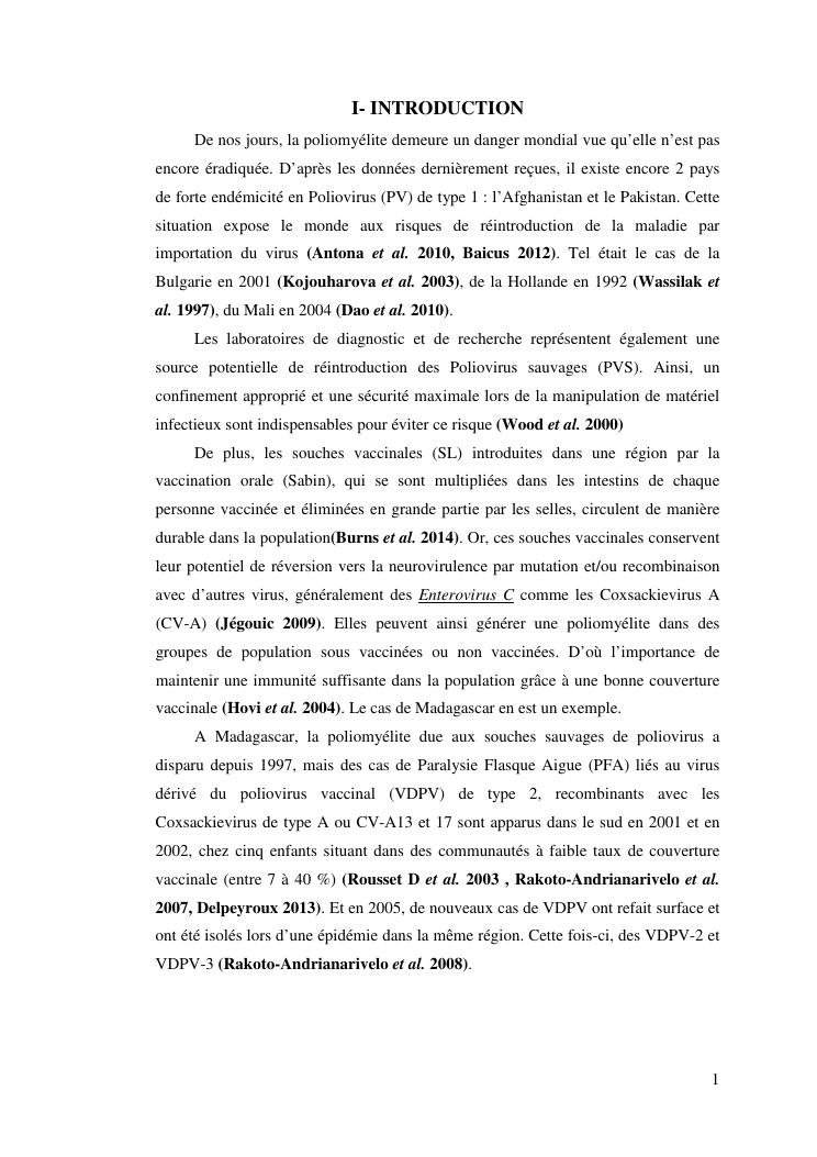 isolement sur cellules des enterovirus et caracterisation des poliovirus isoles d'enfants sains dans le district d'analalava