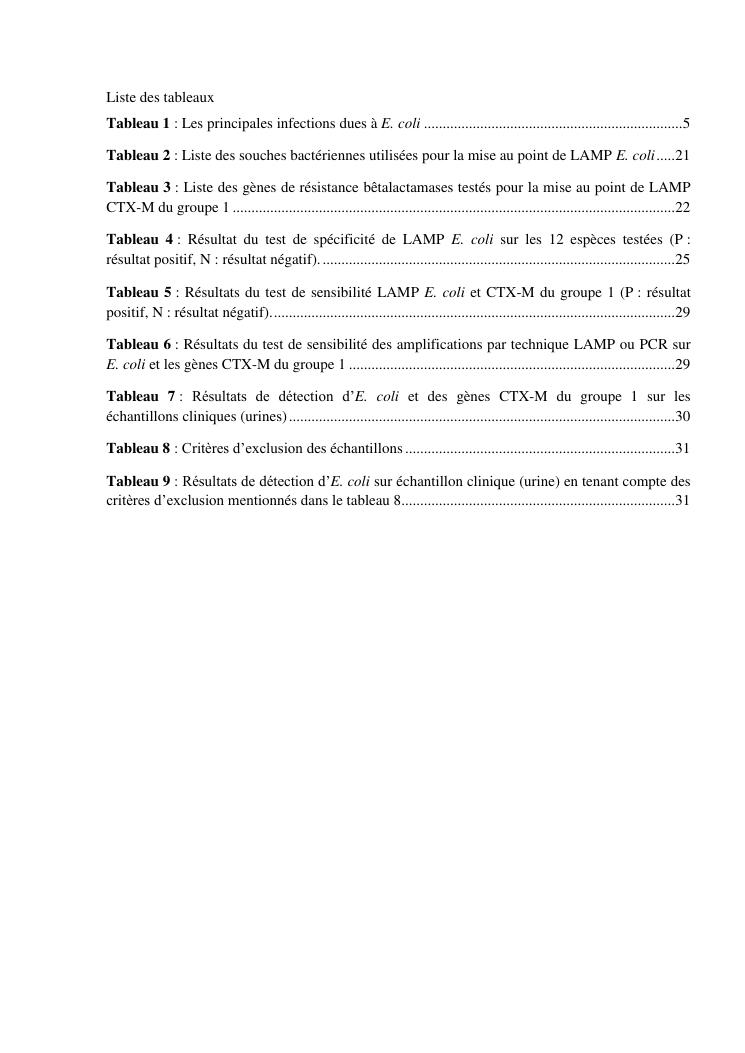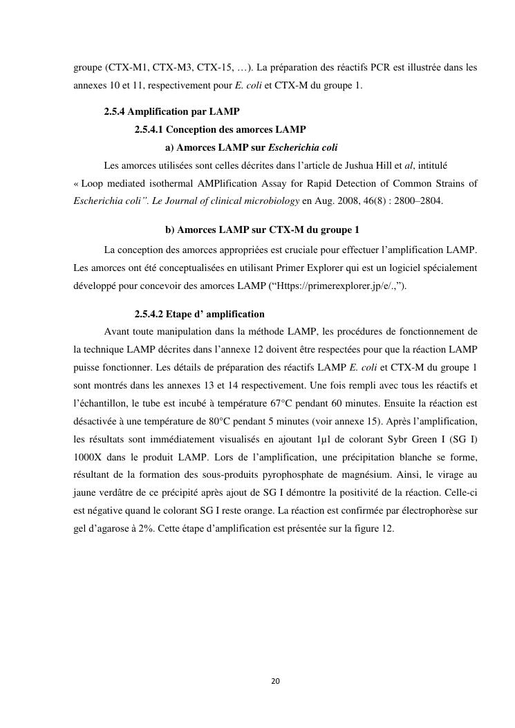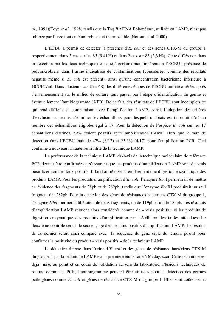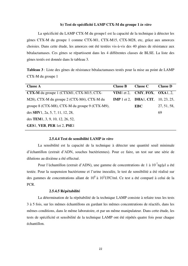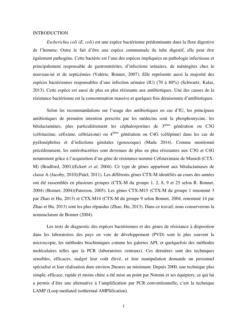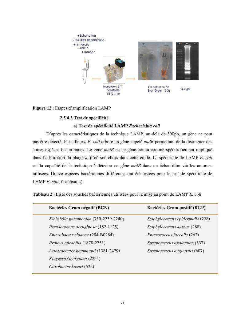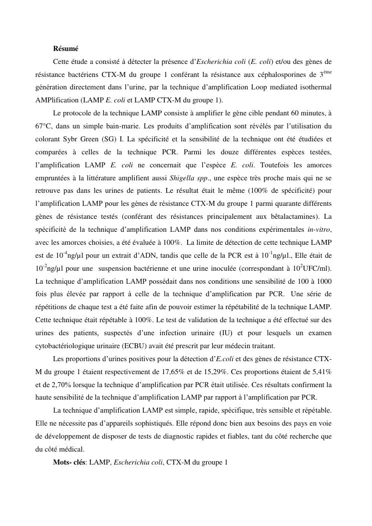 détection d‟escherichia coli et des gènes de résistance ctx-m du groupe 1 par la technique « lamp »