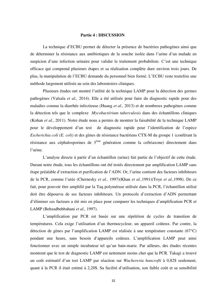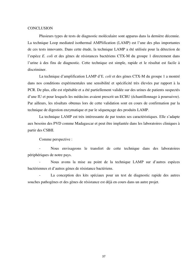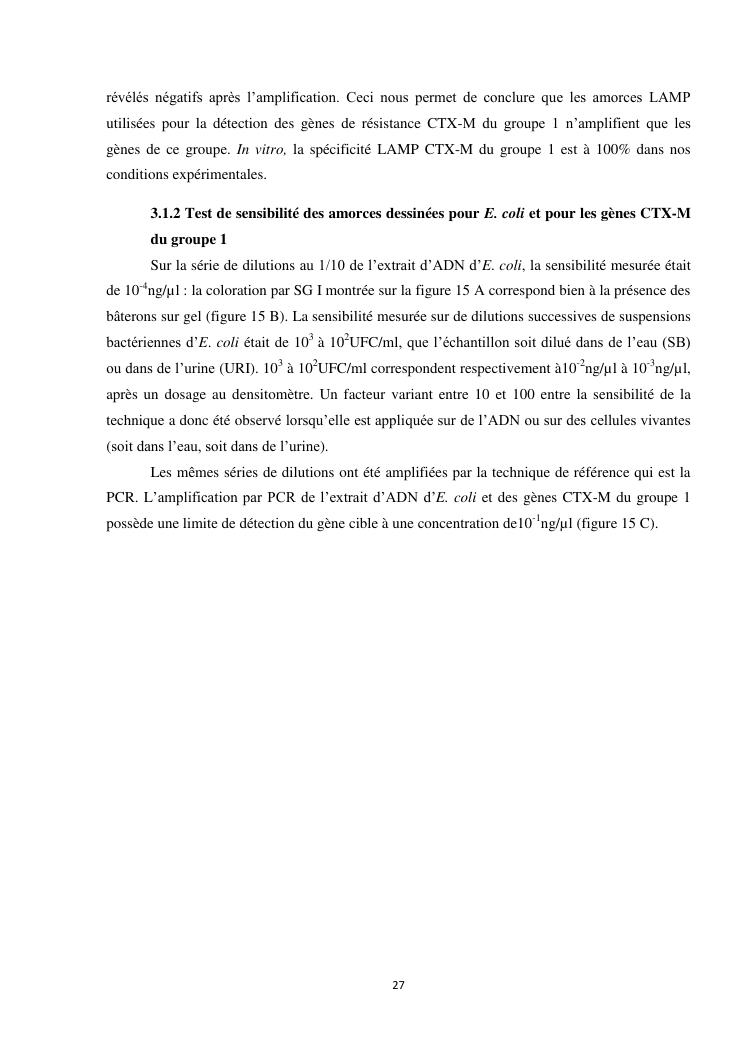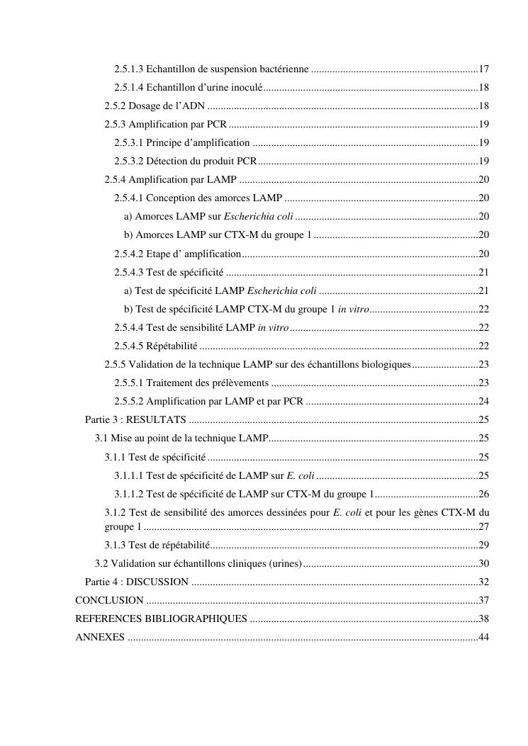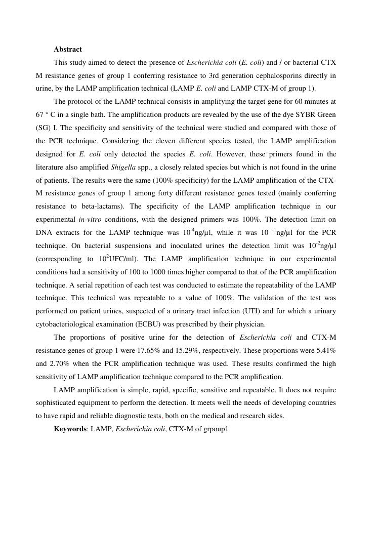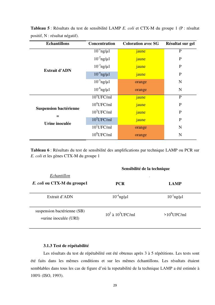 détection d‟escherichia coli et des gènes de résistance ctx-m du groupe 1 par la technique « lamp »