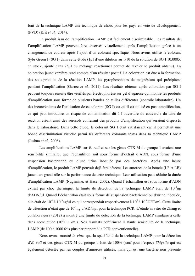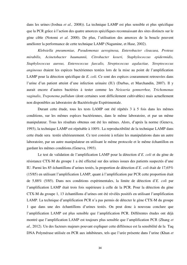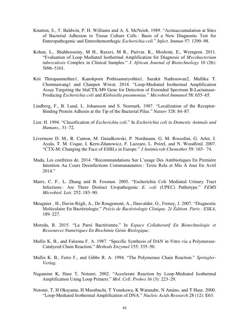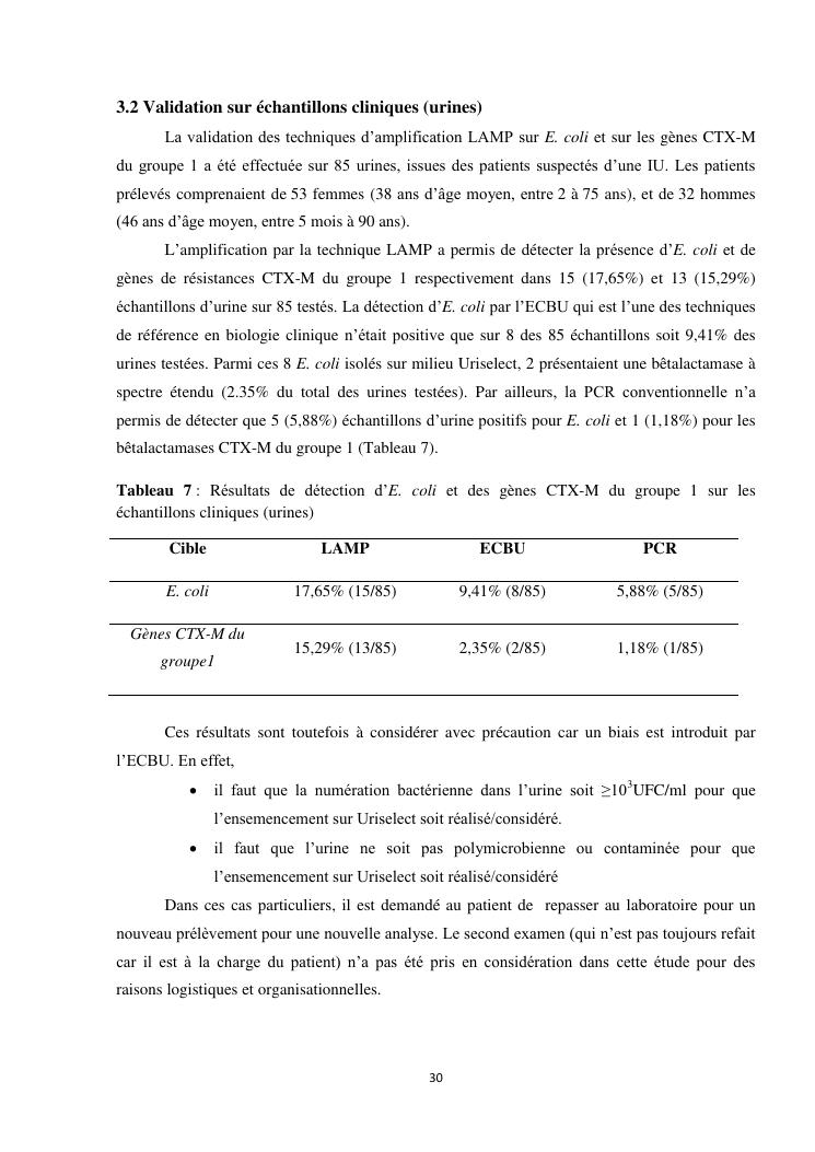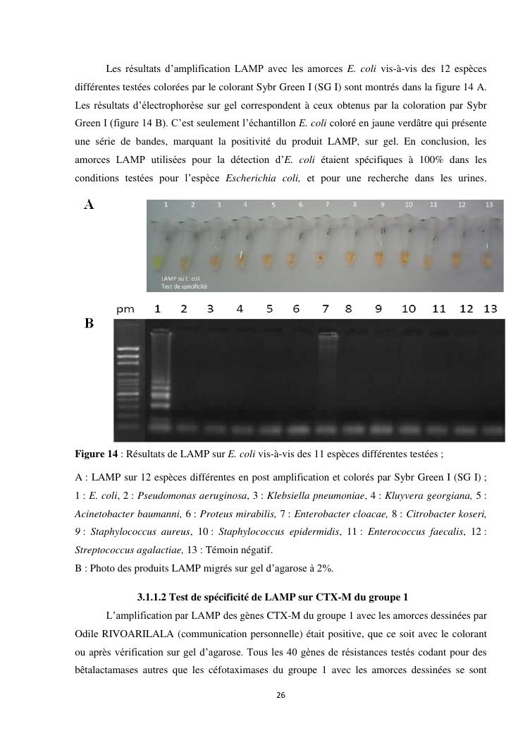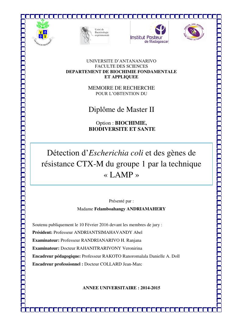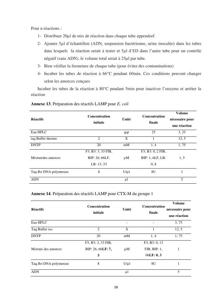 détection d‟escherichia coli et des gènes de résistance ctx-m du groupe 1 par la technique « lamp »