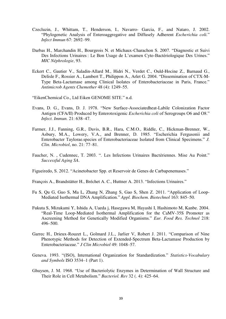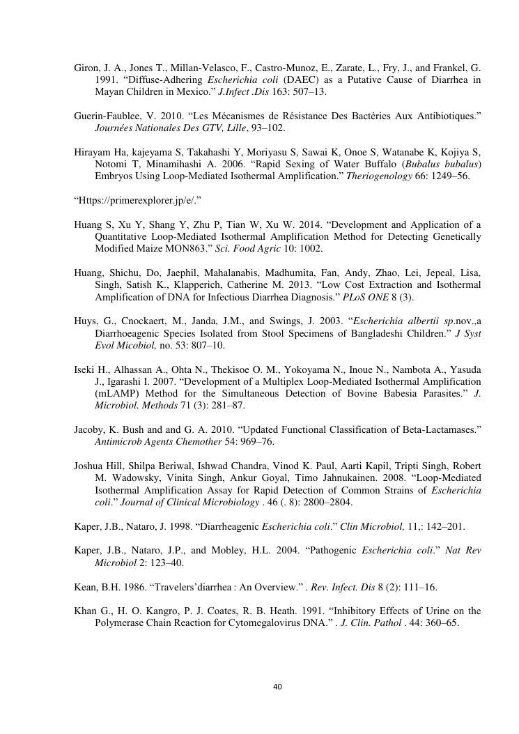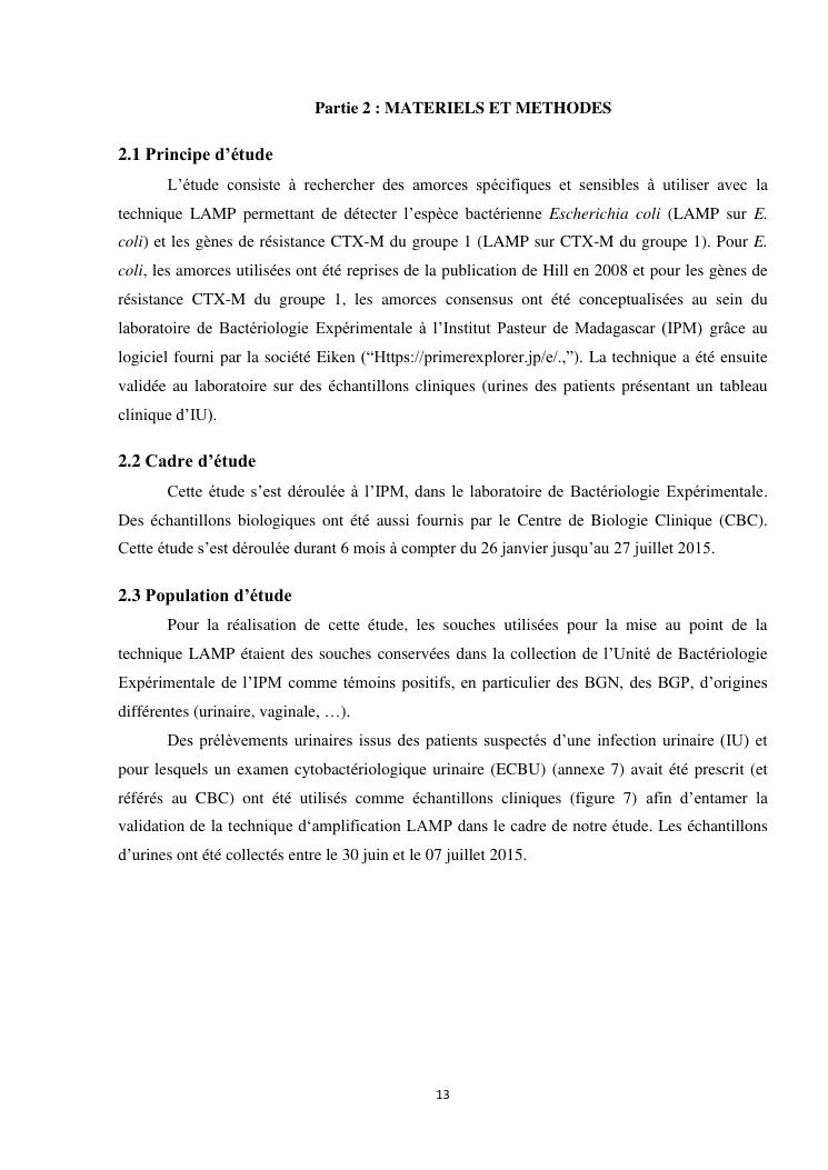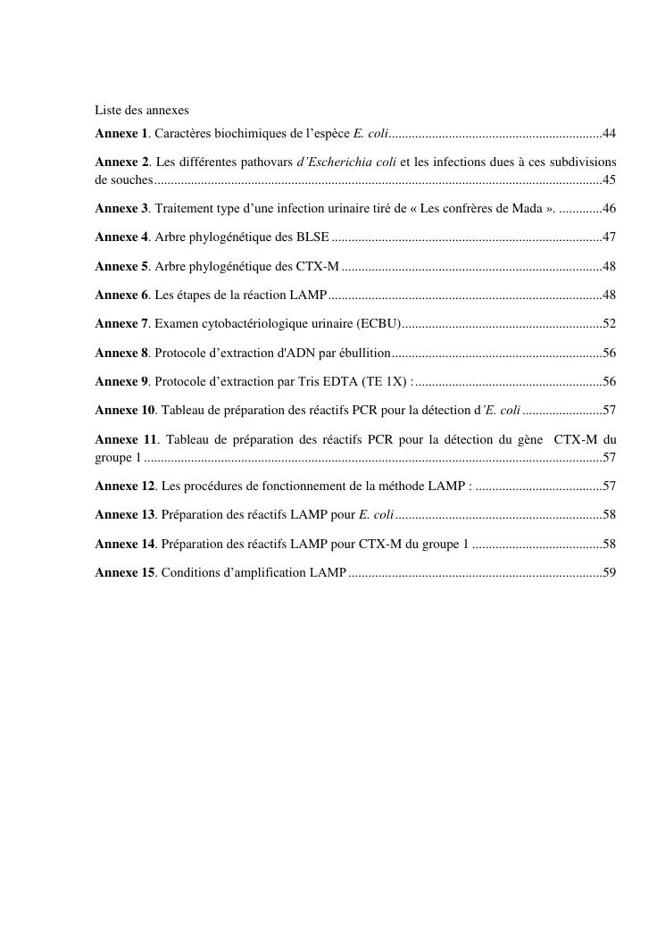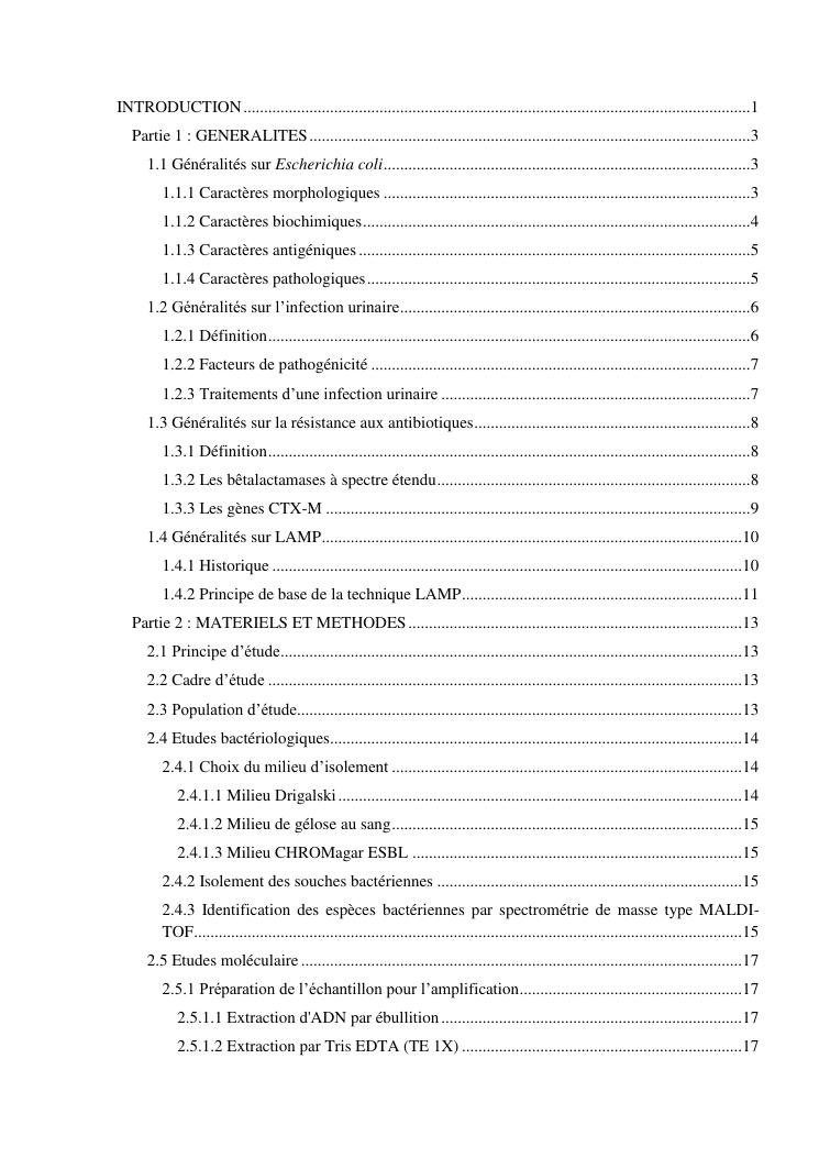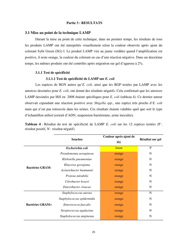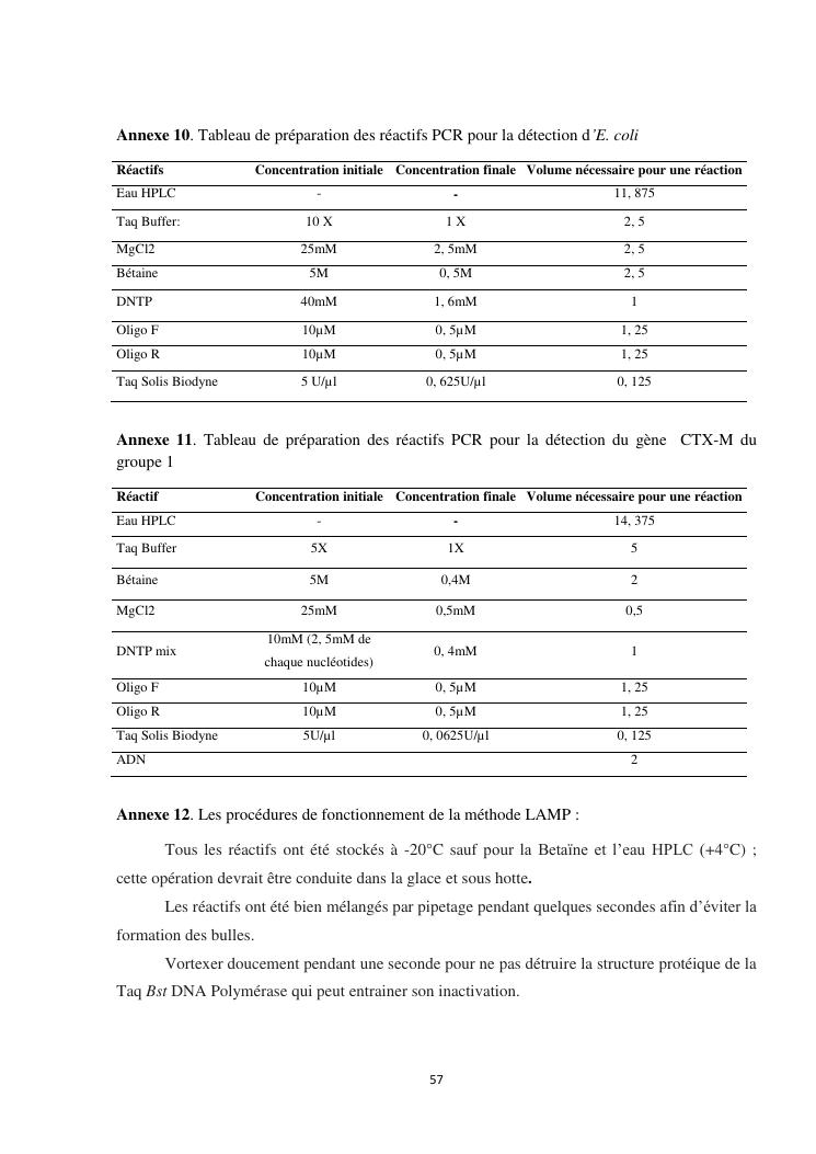 détection d‟escherichia coli et des gènes de résistance ctx-m du groupe 1 par la technique « lamp »