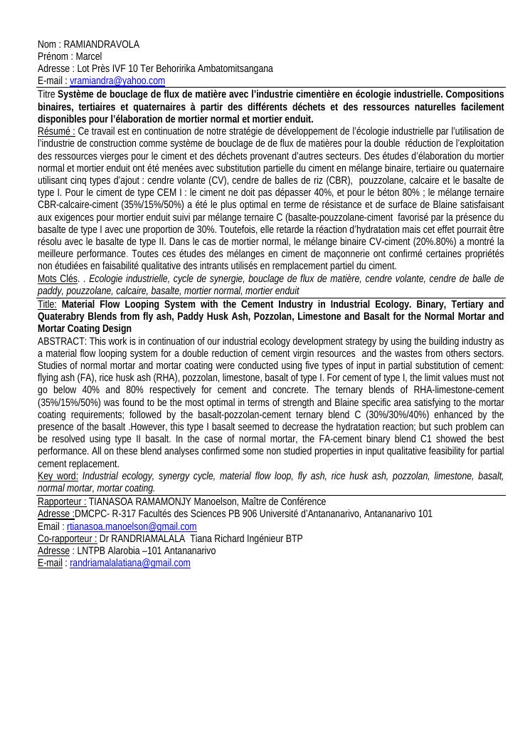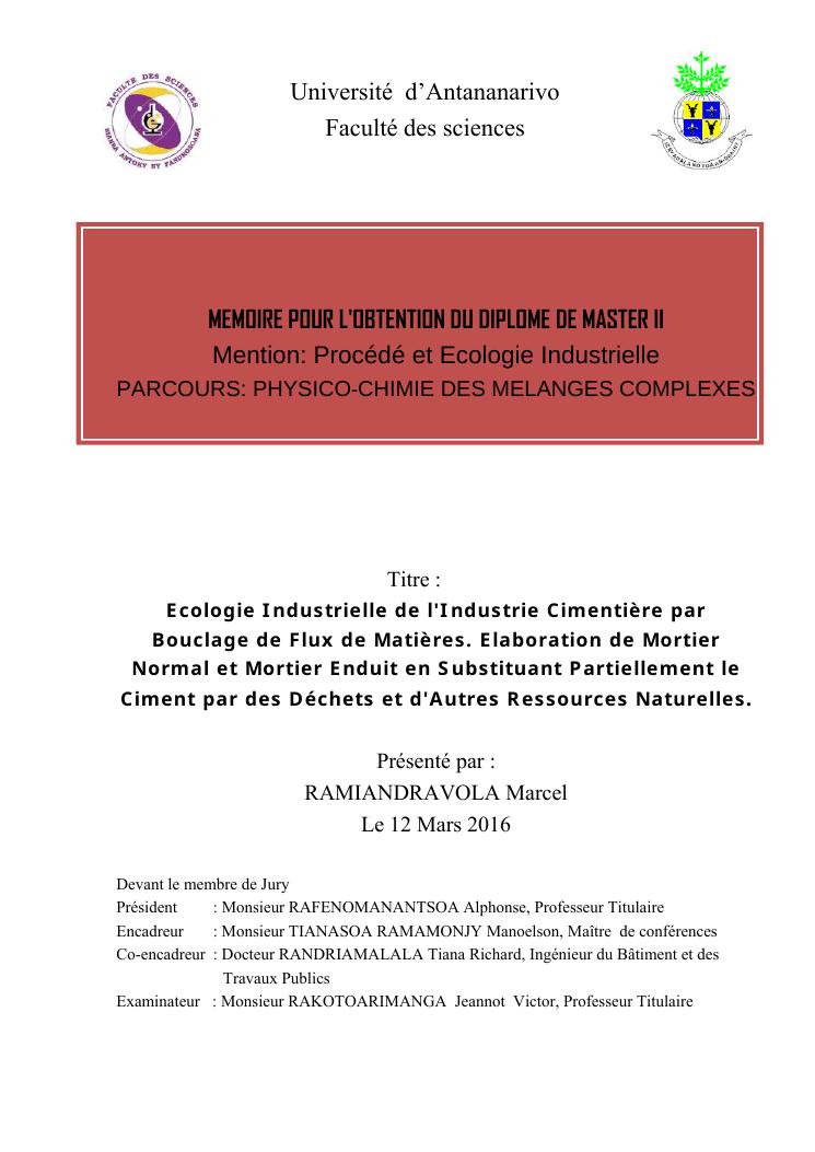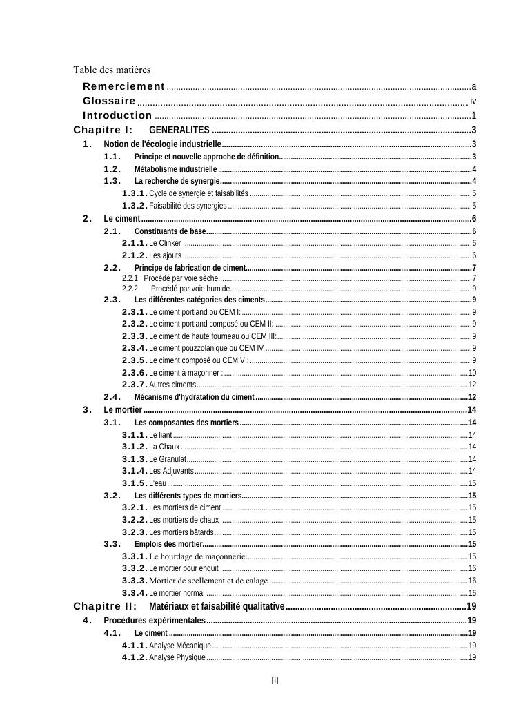 ecologie industrielle de l'industrie cimentière par bouclage de flux de matières. elaboration de mortier normal et mortier enduit en substituant partiellement le ciment par des déchets et d'autres ressources naturelles