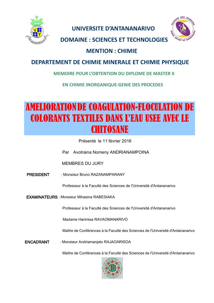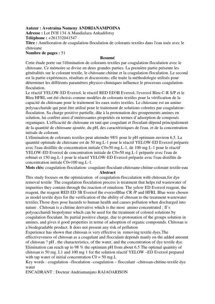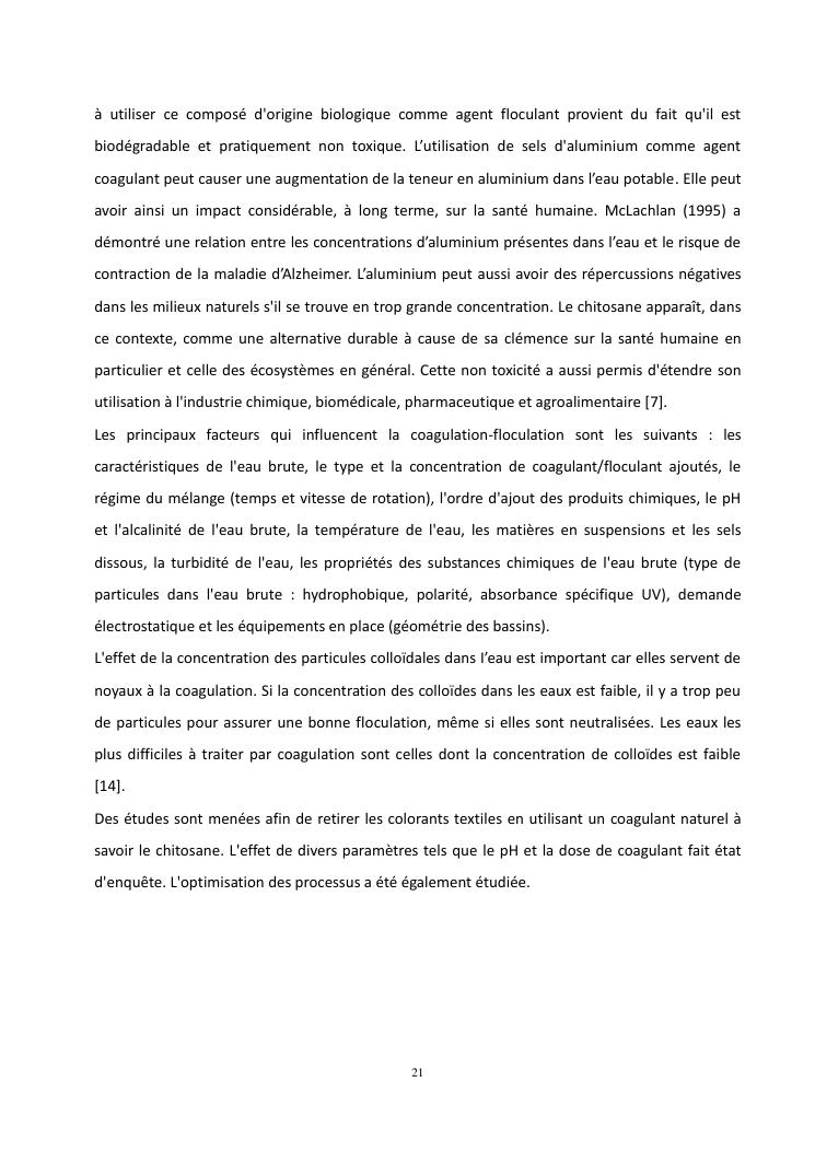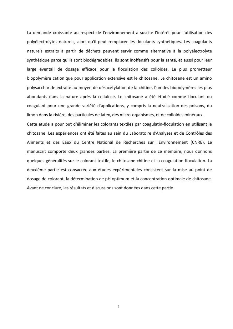 amelioration de coagulation-floculation de colorants textiles dans l'eau usee avec le chitosane