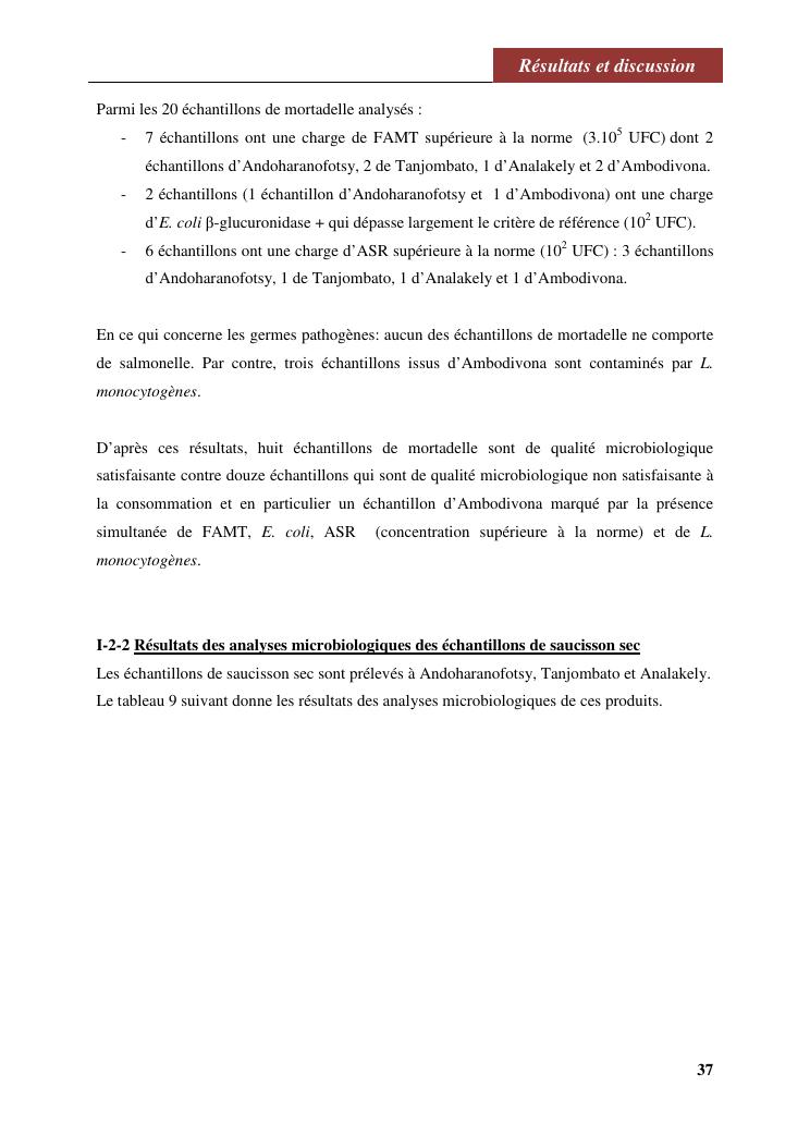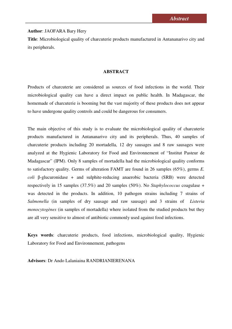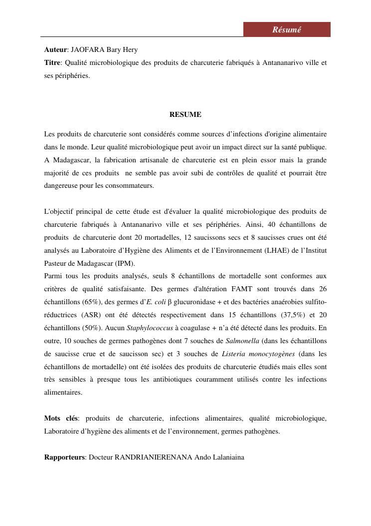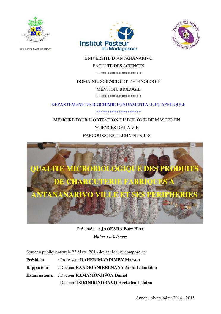 qualite microbiologique des produits de charcuterie fabriques a antananarivo ville et ses peripheries