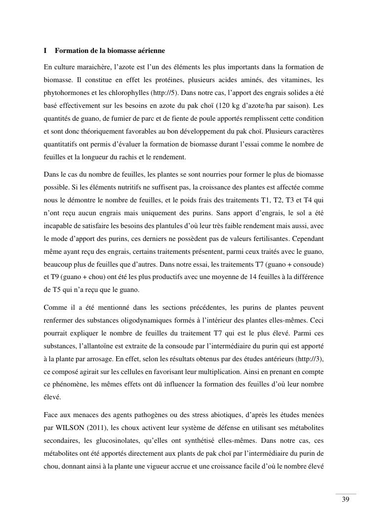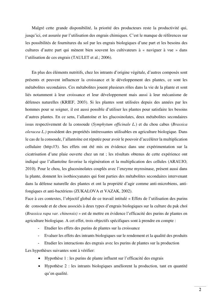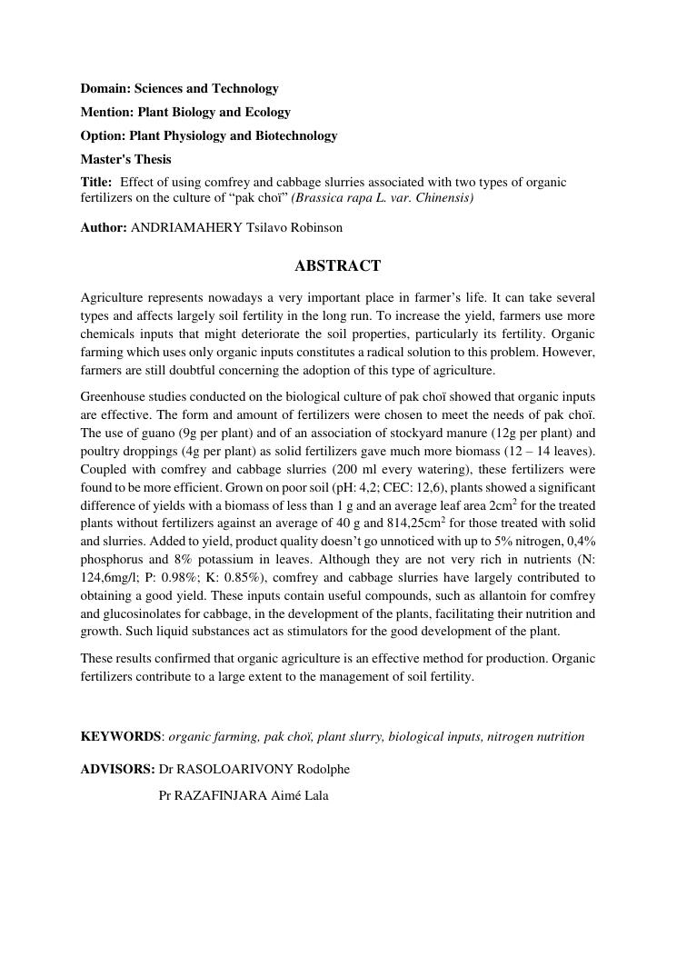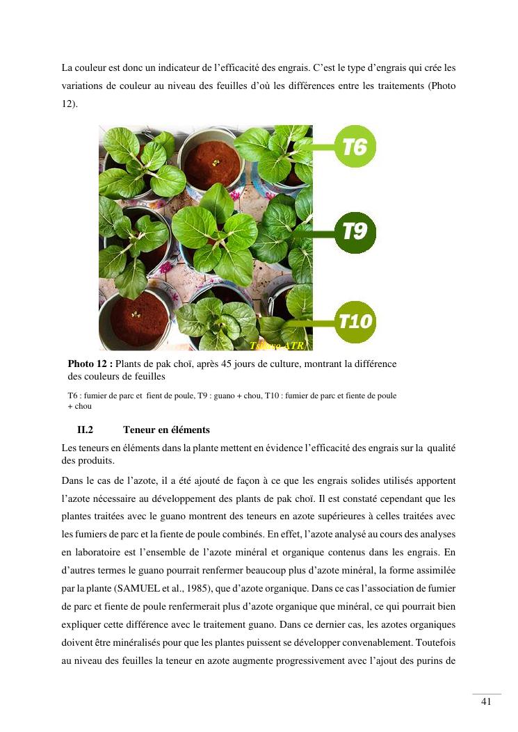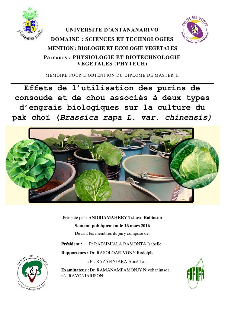 effets de l'utilisation des purins de consoude et de chou associes a deux types d'engrais biologiques sur la culture du pak choï (brassica rapa l. var. chinensis)