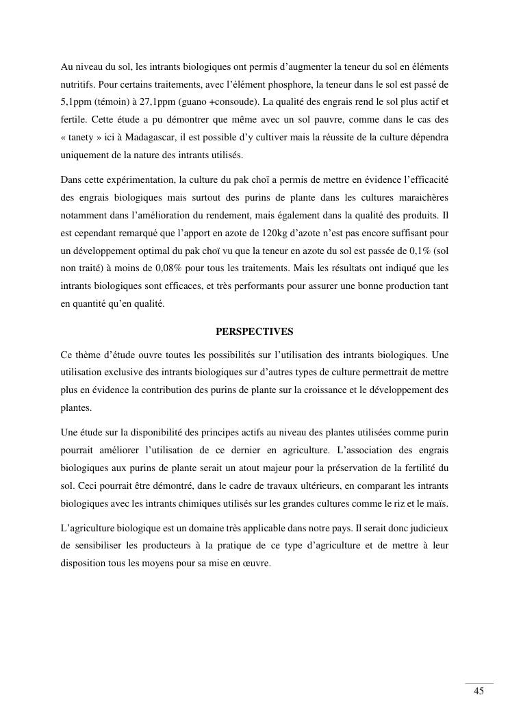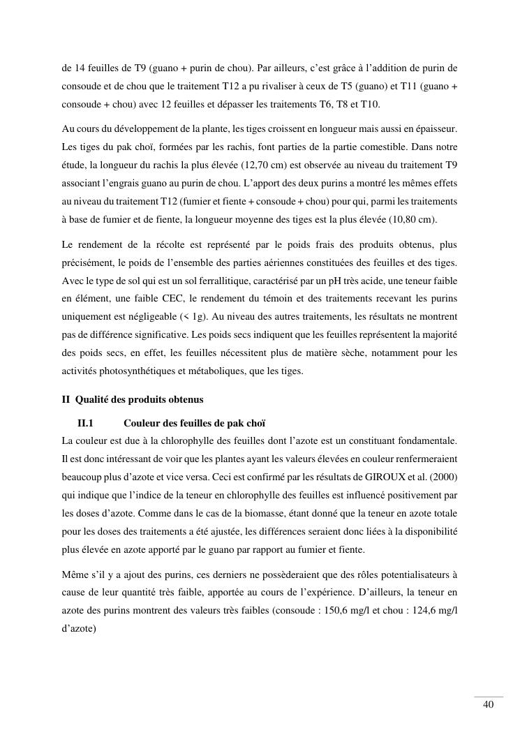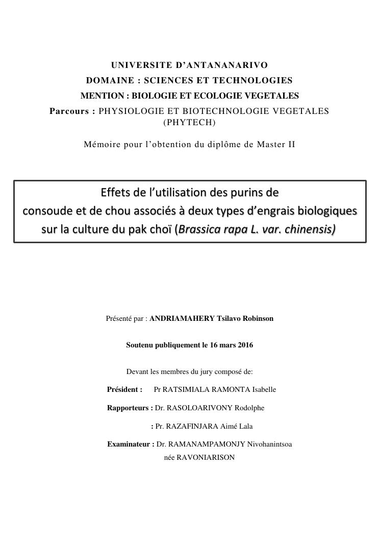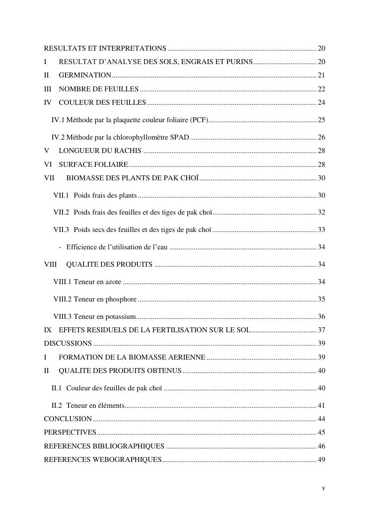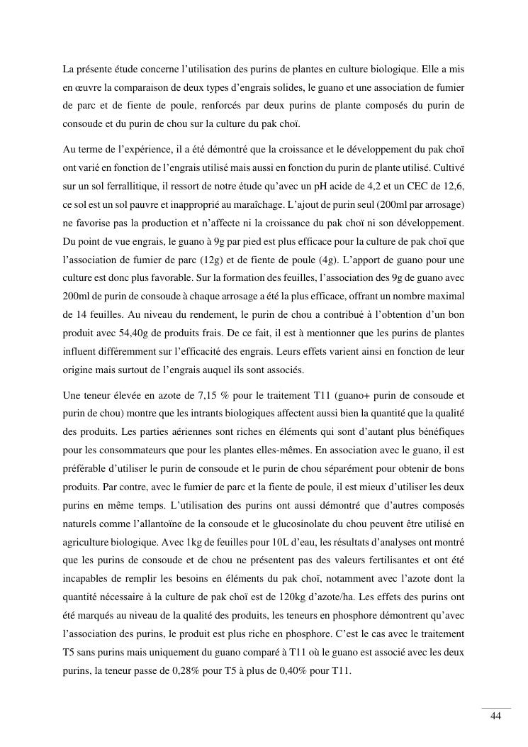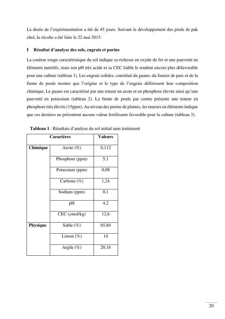 effets de l'utilisation des purins de consoude et de chou associes a deux types d'engrais biologiques sur la culture du pak choï (brassica rapa l. var. chinensis)